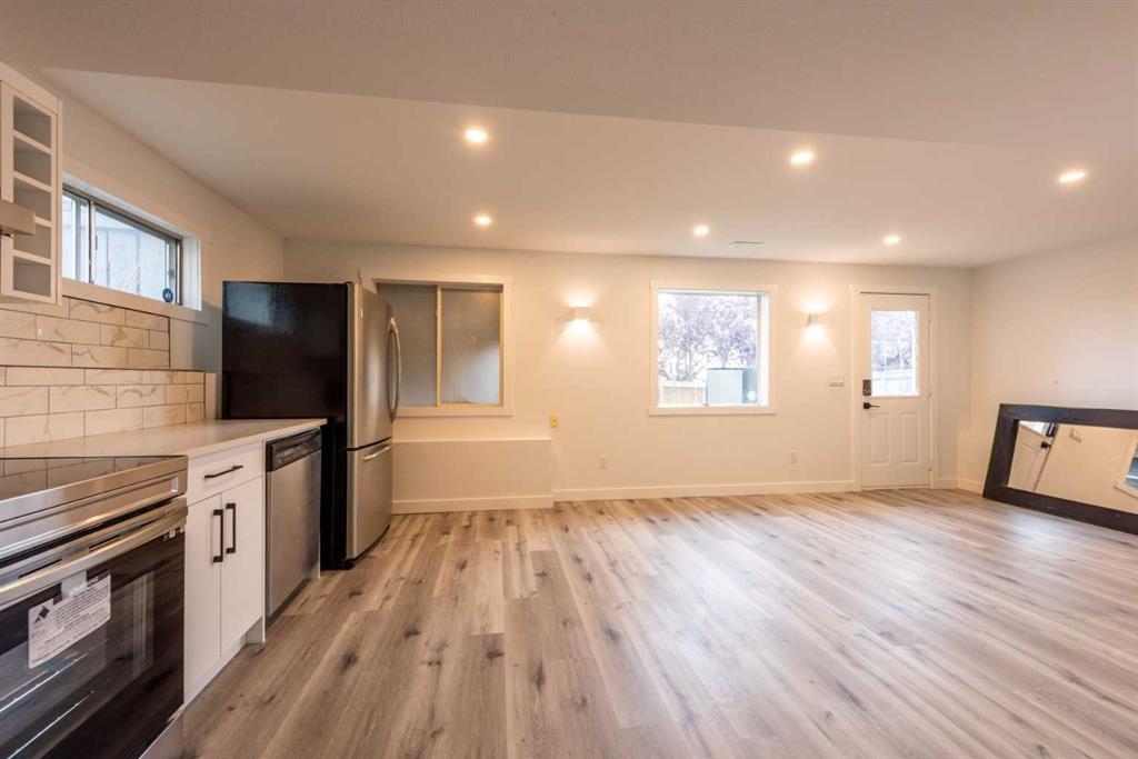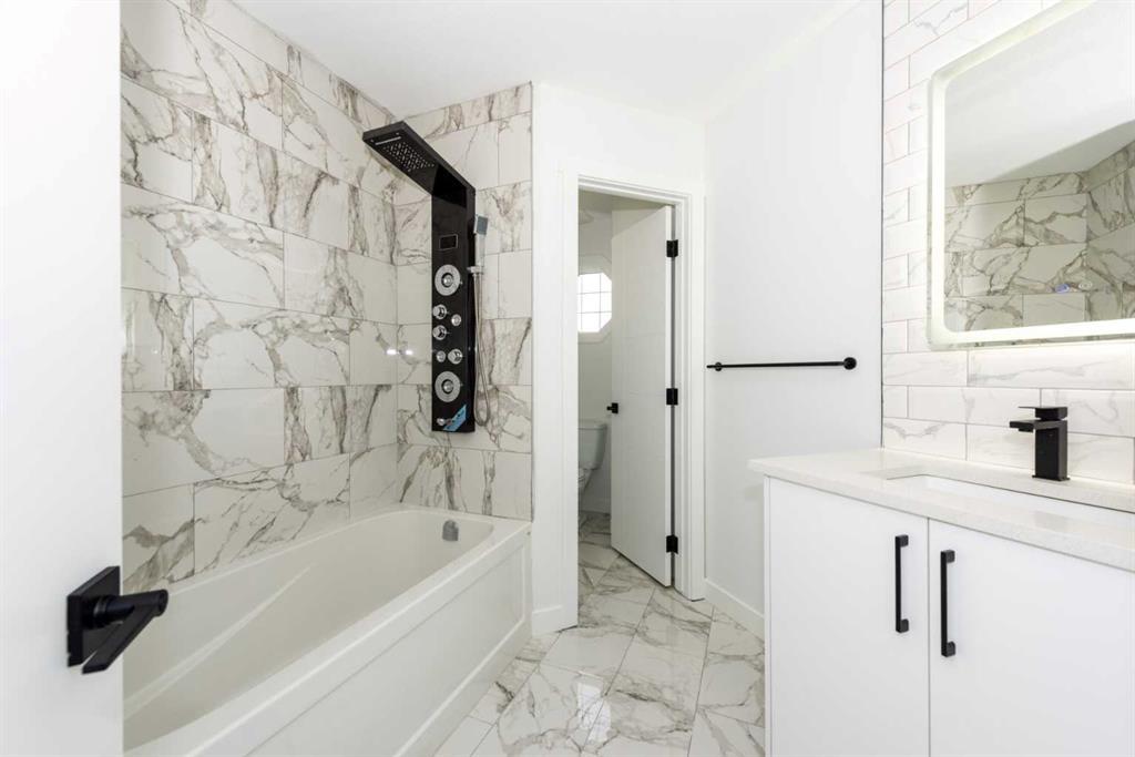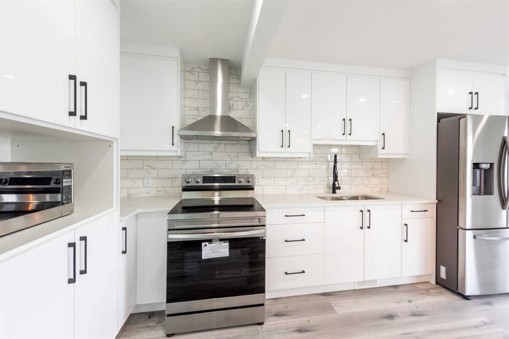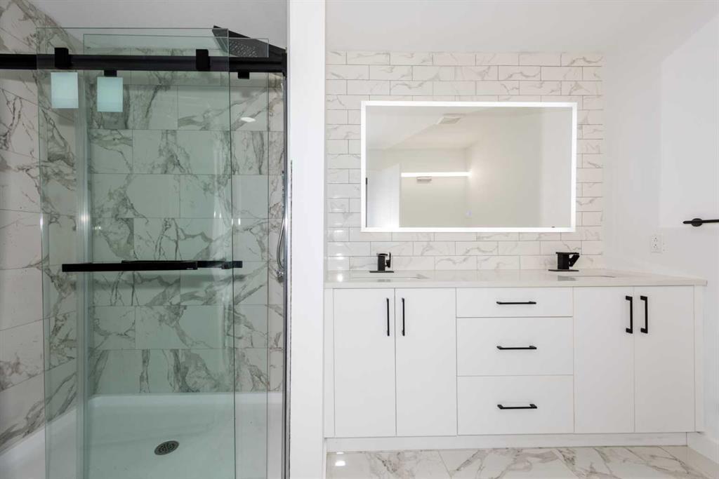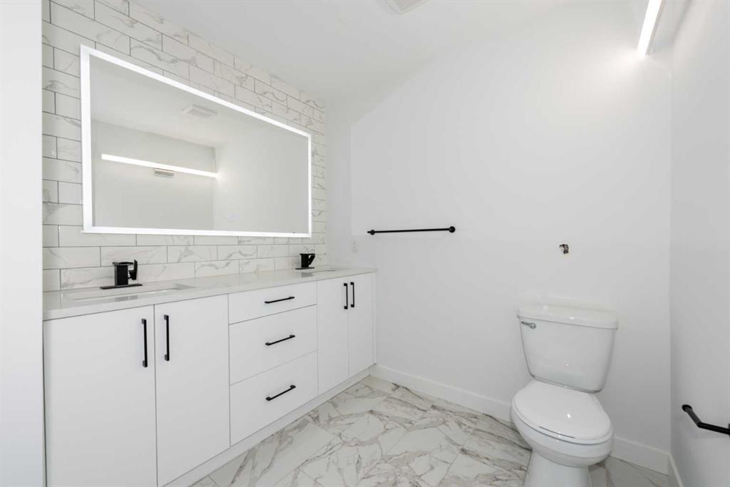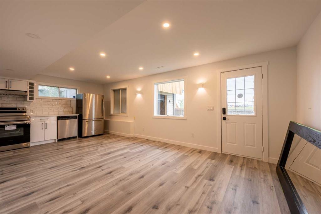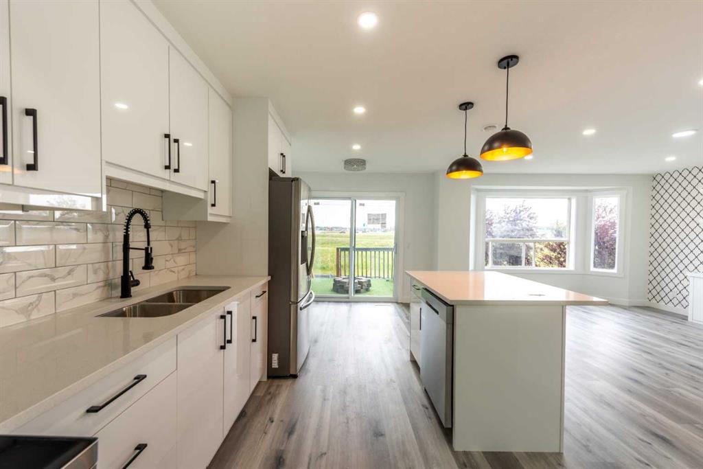 Welcome to this extensively renovated & upgraded walkout house with double front garage attached, backing onto the green space, and fully finished illegal suite basement. This amazing opportunity to own this house with the modern luxury such as high-end glossy cabinets, white quartz countertops, luxury vinyl plank flooring, carpet, electric fireplace, feature wall, stainless steel appliances, led mirrors, shower jets and lots more. While you enter on an open concept living room adjacent to the dining area, kitchen and 2-piece washroom completed the main floor. Don’t stop here step out through the new patio door on to the private deck/yard with the beautiful park view. On upper floor you will a master bedroom with a 4-piece ensuite and laundry. One another full piece washroom with a bedroom completes the upper level. The fully finished walkout illegal suite basement with separate entrance, full kitchen, laundry and a 4-piece washroom and a little private yard space make it perfect for renters. This gem not going to last long on market, call today and book your private viewing for the amazing house!!!!! (id:22211)