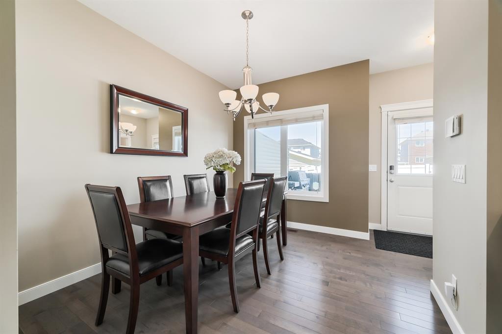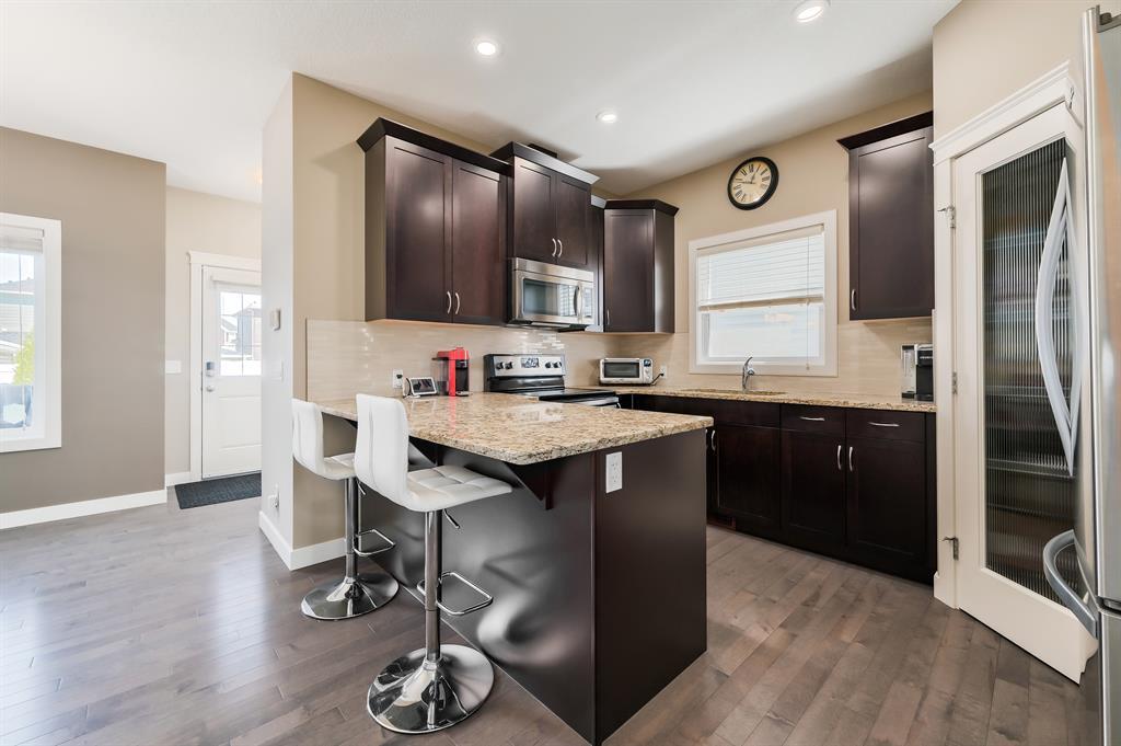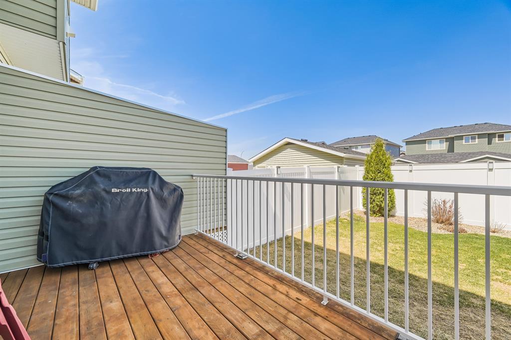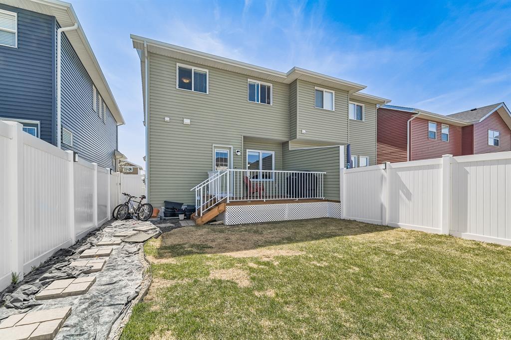 ***OPEN HOUSE DATES: Saturday May 13th and Sunday May 14th 1:00 - 3:00 pm*** This beautiful, extremely well-maintained home is perfect for families! The expansive front porch greets guests and entices peaceful morning coffees. Inside this immaculate home impresses with stylish décor, gleaming hardwood floors and a plethora of natural light. The living room invites relaxation and cozy evenings binging shows and movies (the TV mount is included!). Culinary creativity is inspired in the gorgeous kitchen featuring stone countertops, stainless steel appliances, rich cabinets, a pantry for extra storage and a peninsula island with seating. Clear sightlines into the dining room are perfect for entertaining. A handy powder room and laundry complete this level. Spacious and bright, the primary suite promotes calm and includes a private ensuite with dual sinks and an oversized shower. 2 additional bedrooms and a 4-piece main bathroom are also on this level. The basement awaits your dream development with loads of space for everything else on your wish list. Barbeque, lounge and soak up the sun on the rear deck while kids and pets play in the grassy, fully fenced yard. A large parking pad provides off-street parking and room for a future garage. Friendly neighbours add to the charm of this family-oriented community that offers two new school sites, a brand-new commercial development, multiple parks, pathways and green spaces plus easy access to Stoney Trail and Country Hills. This growing community is mere minutes to Cross Iron Mills and can take advantage of the skating rink in neighbouring Skyview Ranch. Truly an outstanding home in an unsurpassable location! (id:22211)