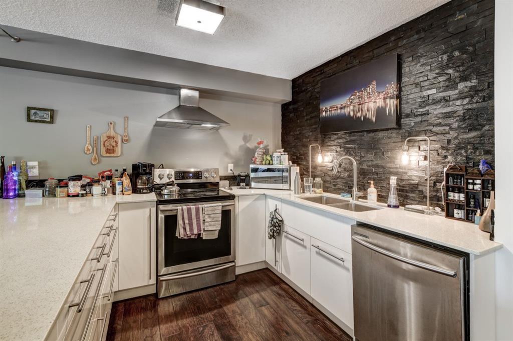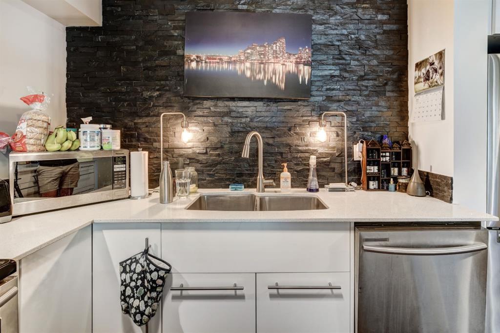 Great location! This 2 Bedroom, 2 Bath unit has it all! Featuring a 966 sqft bright open floor-plan, engineered hardwood & tile flooring thru-out, large in-suite storage room and laundy. The chefs dream kitchen boasts plenty of updated soft close cabinetry, sparkling quartz countertops, a breakfast bar and a stunning stone feature wall above the sink. An abundance of mature tree’s make the south facing patio feel quite secluded and private. The spacious Master bedroom is complete with custom built in’s in the walk in closet and a chic ensuite bathroom. As an added bonus find a second generously sized bedroom and 4pc main bath with custom tile features. This well maintained secure building really shows pride of ownership, inviting lobby, manicured outdoor communal space, entertainment room equipped with a gym and reading room. Plus 1 assigned underground parking stall in included with a deep cubby style storage locker. This stunning condo in the Heart of Mission must be seen, enjoy all the amenities at your fingertips that this vibrant inner city community has to offer! (id:22211)