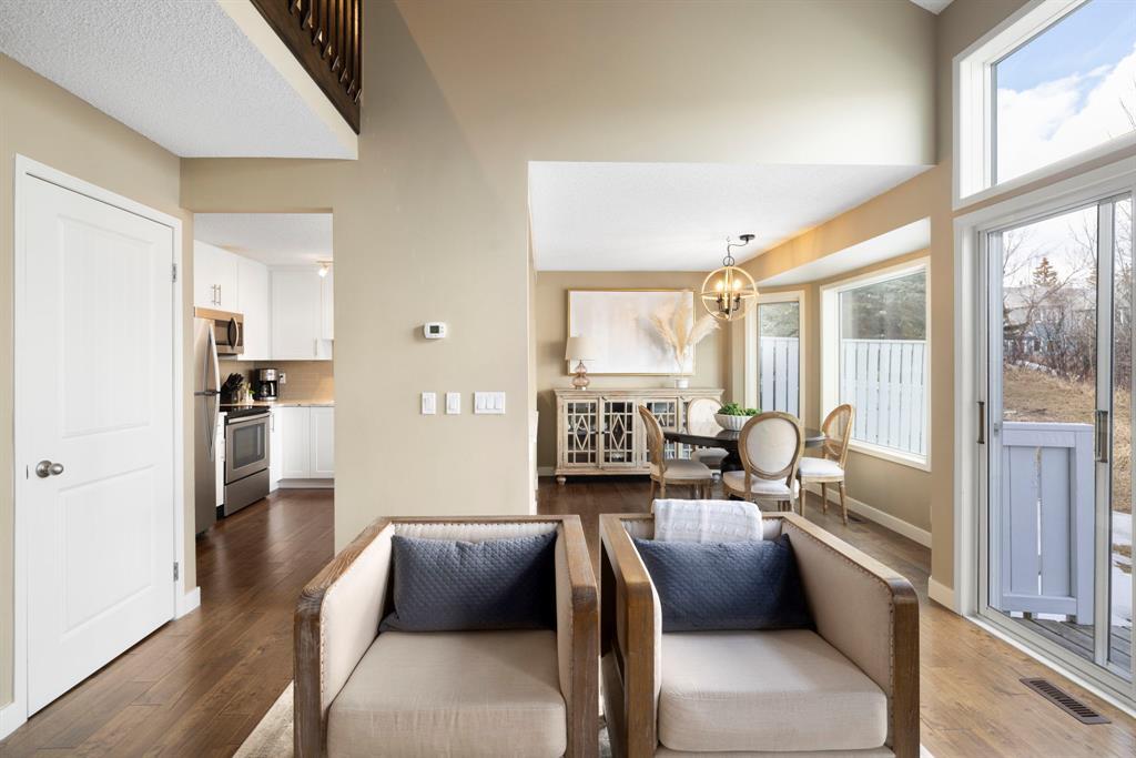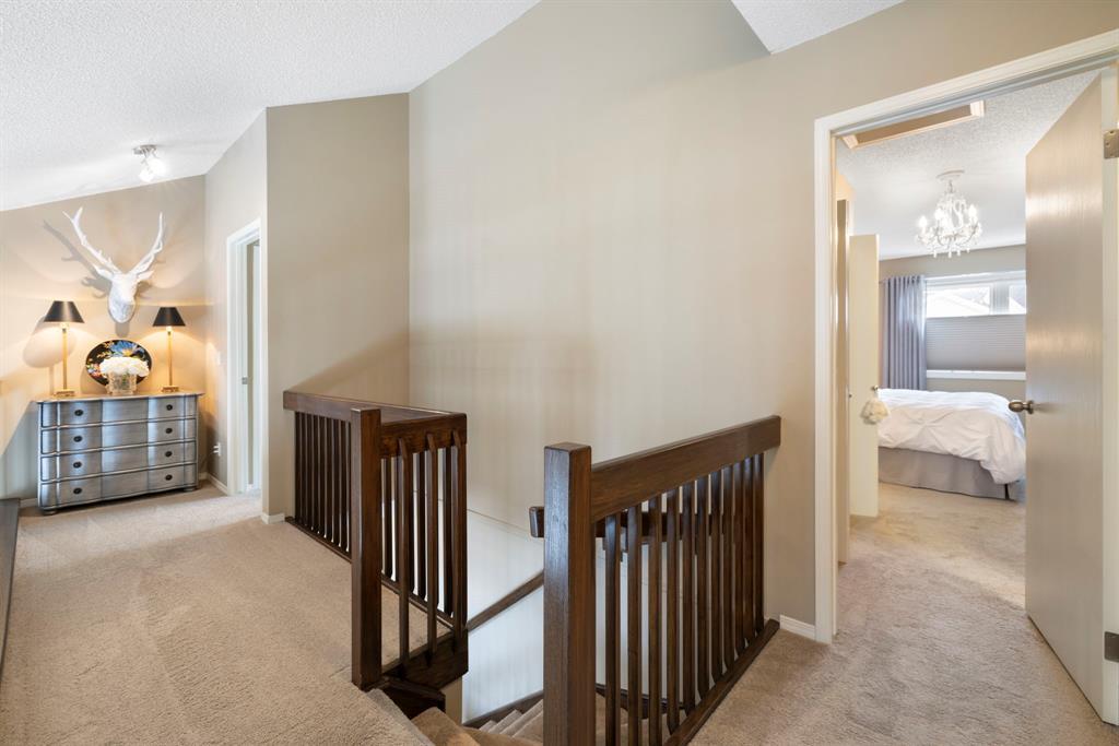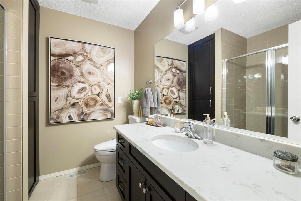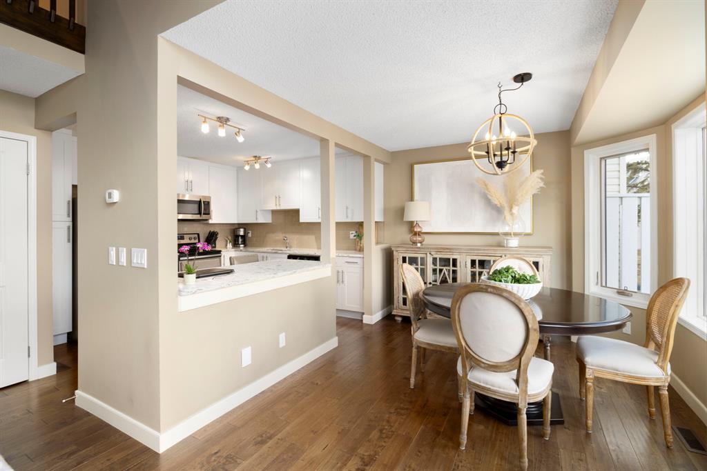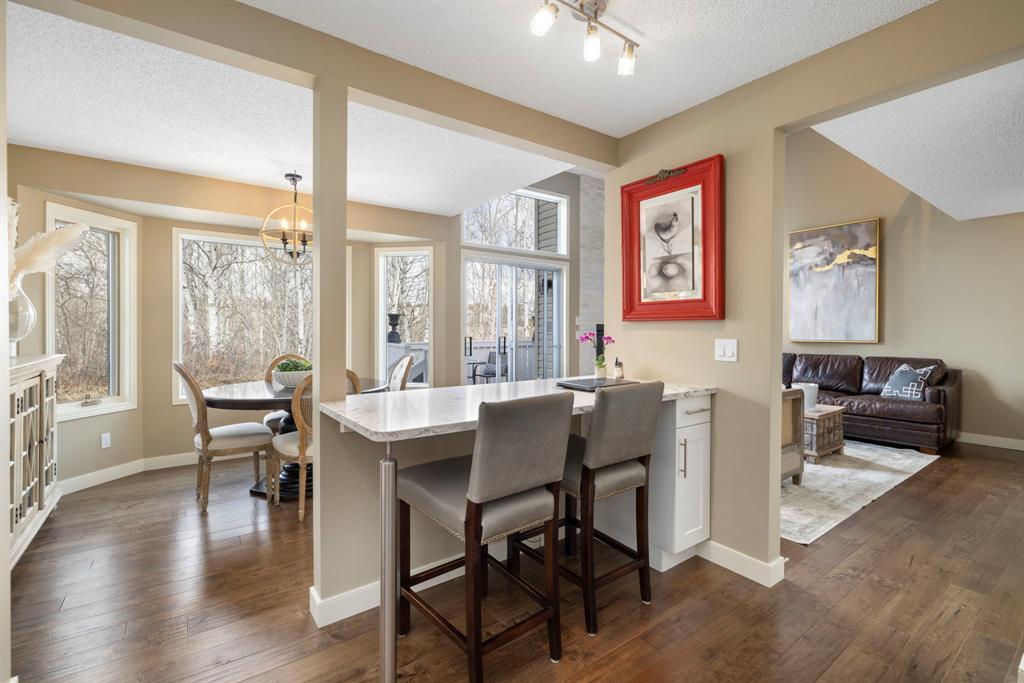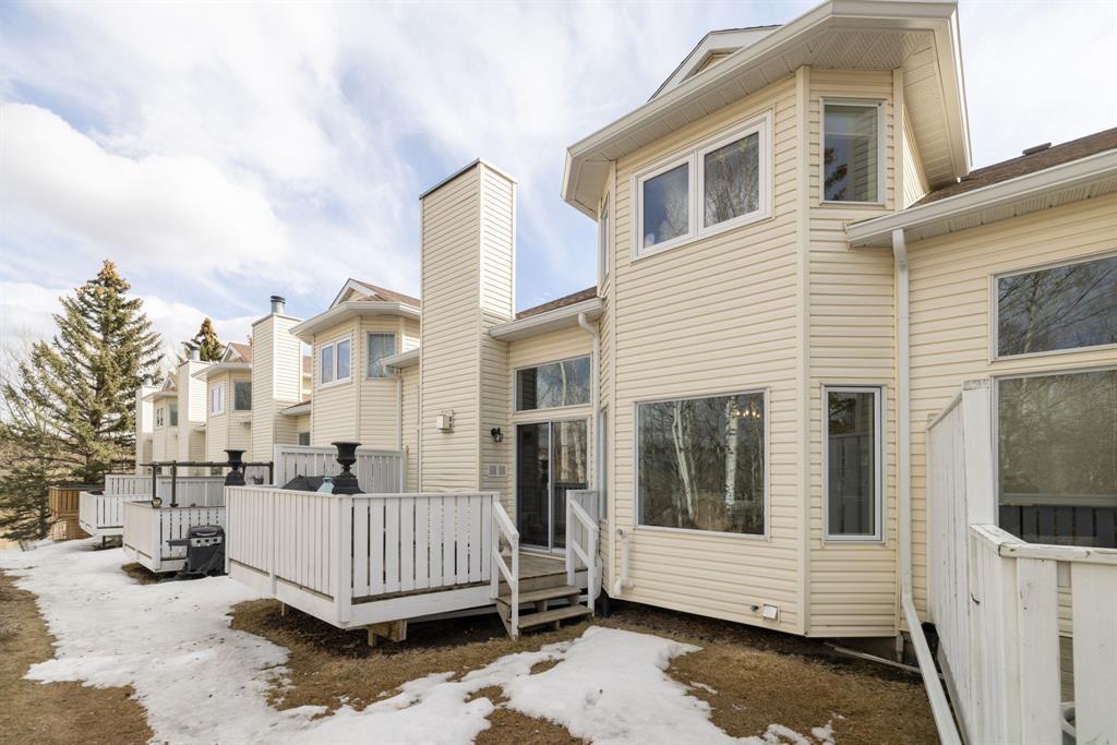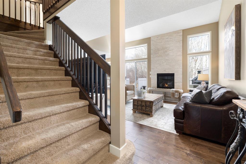 Welcome to this immaculate townhome backing onto a treed greenspace located in this quiet and quaint complex in Edgemont. This home shows true pride of ownership and has been extensively renovated over the years leaving you nothing to do but move in and call it home! You will instantly feel warmth and elegance this home provides when you enter the main floor. The beautiful great room with massive vaulted ceilings and the stunning gas fireplace with custom floor to ceiling stonework, the perfect place for cozy nights in. The fully renovated kitchen featuring white cabinetry, quartz counters, plenty of storage space, stainless steel appliances and the breakfast bar that was added, is sure to be a hit with any home chef. The dining room with it's large bay window overlooking the treed ravine offers a peaceful and serene setting for meals and has doors leading out to the back deck providing easy access to outdoor entertaining. The main floor also has access to the double attached garage and quaint fully renovated powder room. Leading up to the 2nd floor you are welcomed by the classic wood railings and open layout creating a spacious feel. The spacious primary bedroom with lots of closet space and a beautifully updated 3 piece ensuite featuring huge separate fully tiled shower, quartz counters, newer vanity with lots of counter & storage space is your own private oasis. The two additional bedrooms each with ample closet space and 4 piece renovated bathroom with fully tiled shower & tub, quartz counters & newer toilet, provide ample space for family or guests. Other incredible features include newer furnace, hot water tank, humidifier & A/C, hardwood floors & unfinished basement awaiting your finishing touch. Edgedale Gardens is a quiet & inviting complex, conveniently located close to schools, dog parks & walking paths, Nosehill Park, transit and shopping with easy access to Stoney Trail and beyond. Welcome Home! (id:22211)