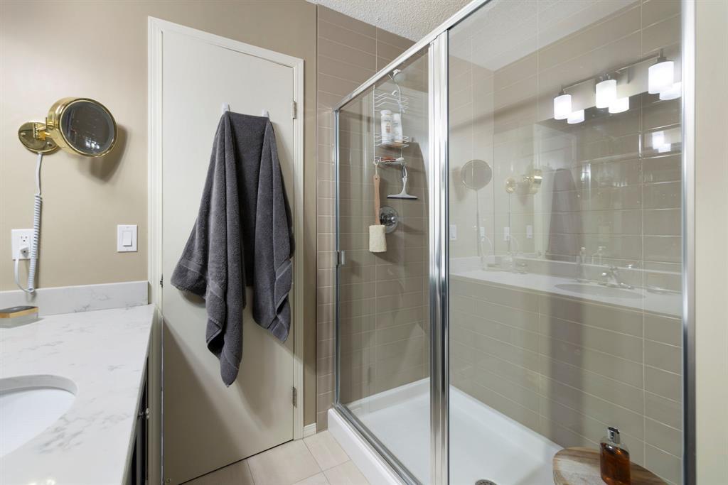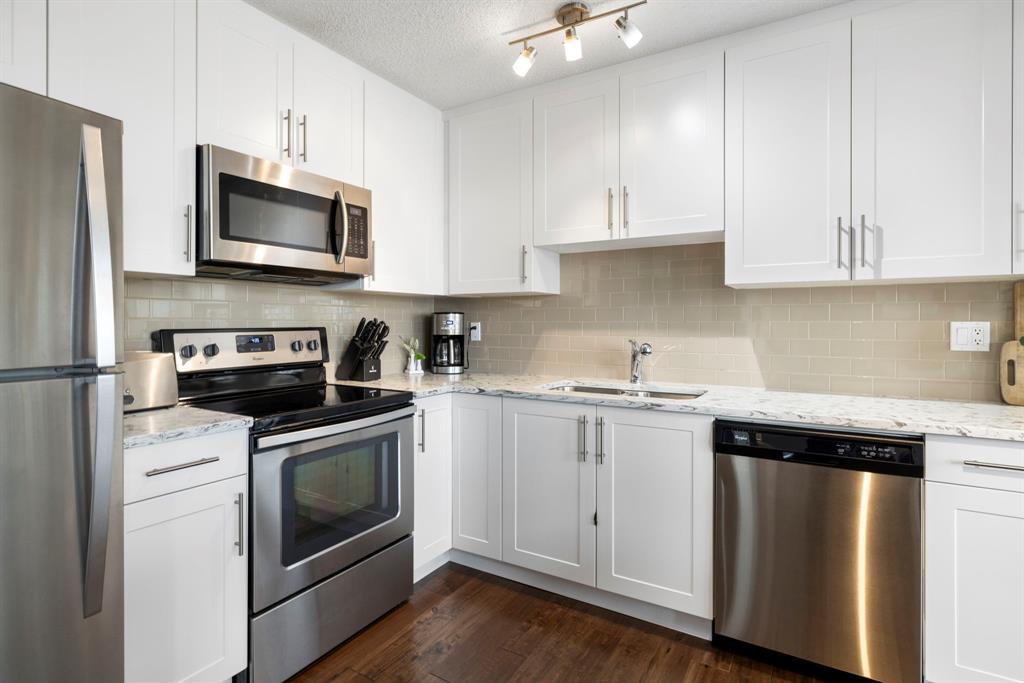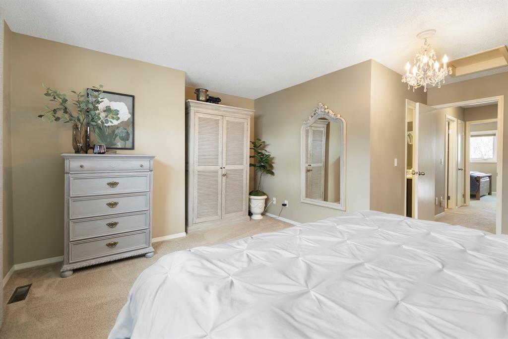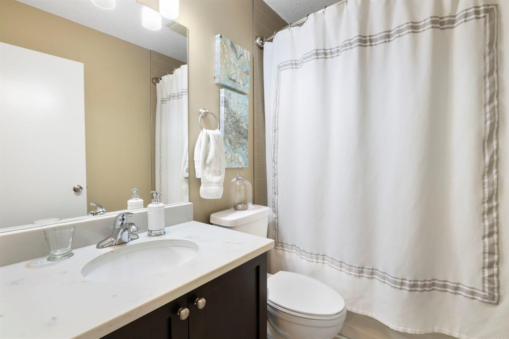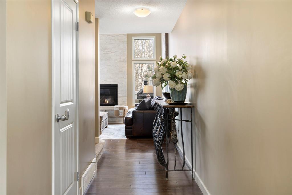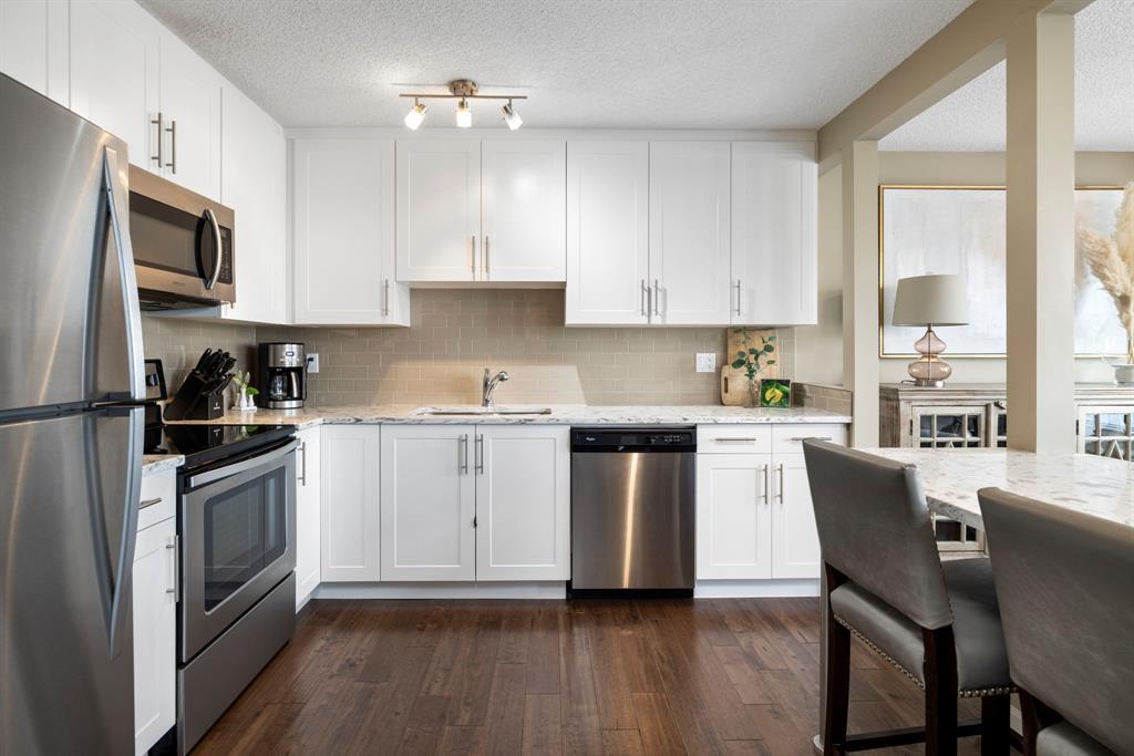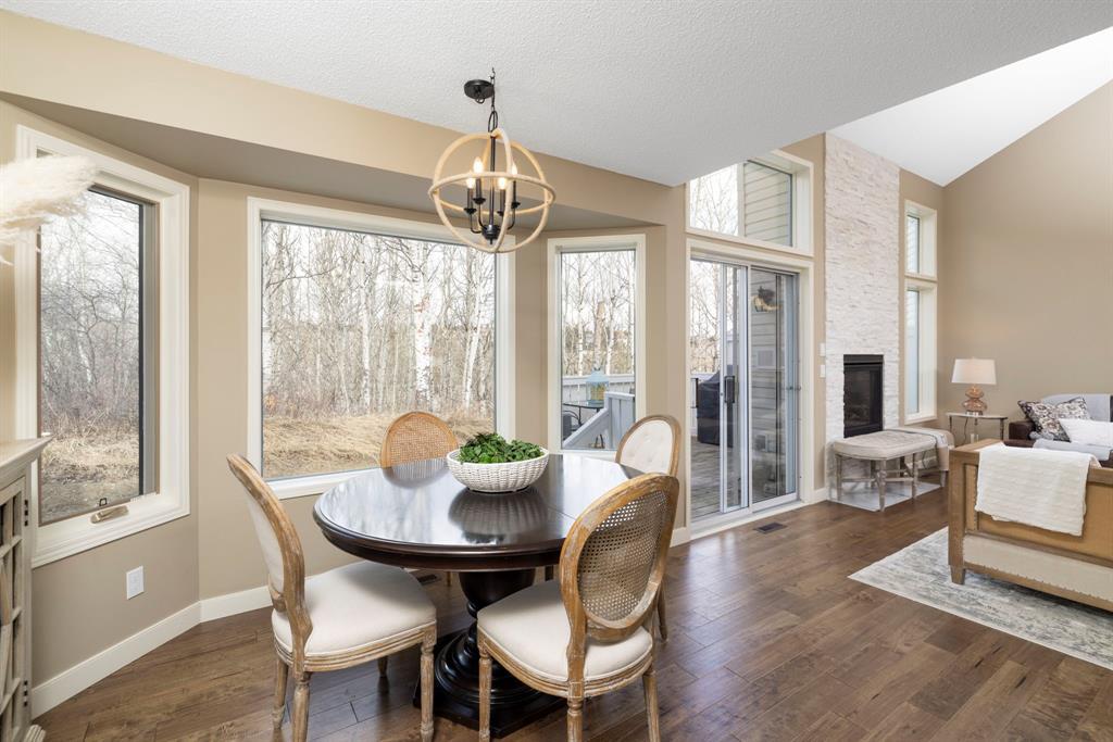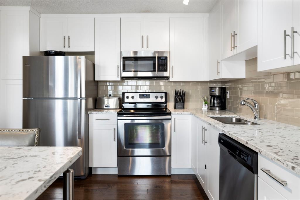 Welcome to this immaculate townhome backing onto a treed greenspace located in this quiet and quaint complex in Edgemont. This home shows true pride of ownership and has been extensively renovated over the years leaving you nothing to do but move in and call it home! You will instantly feel warmth and elegance this home provides when you enter the main floor. The beautiful great room with massive vaulted ceilings and the stunning gas fireplace with custom floor to ceiling stonework, the perfect place for cozy nights in. The fully renovated kitchen featuring white cabinetry, quartz counters, plenty of storage space, stainless steel appliances and the breakfast bar that was added, is sure to be a hit with any home chef. The dining room with it's large bay window overlooking the treed ravine offers a peaceful and serene setting for meals and has doors leading out to the back deck providing easy access to outdoor entertaining. The main floor also has access to the double attached garage and quaint fully renovated powder room. Leading up to the 2nd floor you are welcomed by the classic wood railings and open layout creating a spacious feel. The spacious primary bedroom with lots of closet space and a beautifully updated 3 piece ensuite featuring huge separate fully tiled shower, quartz counters, newer vanity with lots of counter & storage space is your own private oasis. The two additional bedrooms each with ample closet space and 4 piece renovated bathroom with fully tiled shower & tub, quartz counters & newer toilet, provide ample space for family or guests. Other incredible features include newer furnace, hot water tank, humidifier & A/C, hardwood floors & unfinished basement awaiting your finishing touch. Edgedale Gardens is a quiet & inviting complex, conveniently located close to schools, dog parks & walking paths, Nosehill Park, transit and shopping with easy access to Stoney Trail and beyond. Welcome Home! (id:22211)