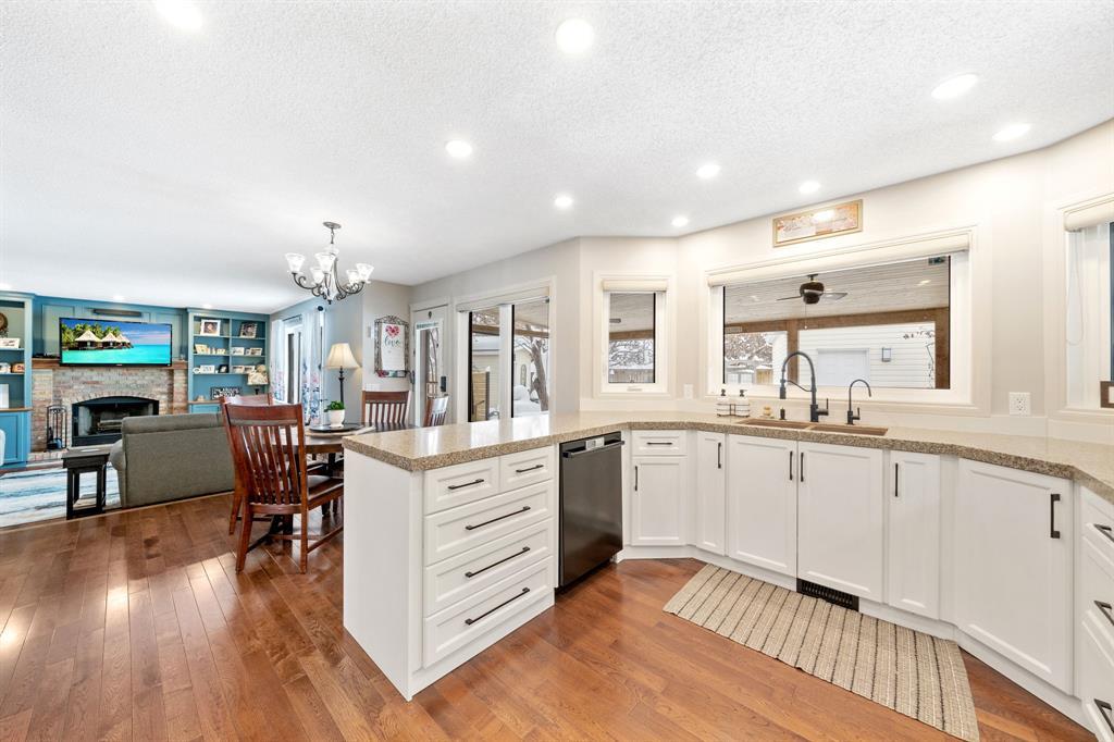 Welcome to 23 Sunlake Way in the highly desirable community of Sundance! You and your family will be welcomed with an abundance of amenities such as schools, parks, walking paths and even the private Lake Sundance to enjoy. This beautiful, two-storey home has incredible features such as an open-concept great room with vaulted ceilings that continue through to the kitchen, complete with stainless steel appliances, eat-up bar, quartz countertops and new faucet and fixtures. To compliment the amazing natural light in the great room enjoy the beautiful wood fireplace with brick mantle and plenty of built-in cabinet space! The main floor is also where you'll find the den, mudroom with storage and the powder room. The second floor has the master bedroom with a balcony to overlook the 0.20 acre corner lot and has a stunning ensuite that has recently been renovated with new soaker tub, double-vanities, and heated tiles. Enjoy the convenience of having your laundry facilities located on the second floor, with two additional bedrooms and another three-piece bathroom! The basement has been finished with entertaining in mind, with two additional bedrooms and a three-piece bathroom for guests. If you enjoy being outdoors this home is perfect for you, with a covered patio, beautiful landscaping and incredible placement for your BBQ with a gas line on the deck. The backyard also leads to an insulated and heated detached garage with loads of shelving! Other upgrades to this home includes a rear detached double, heated and insulated garage, new windows & roof (2014), new gutters (2020), a complete reface of the exterior (2021) and new paint throughout main and upper floor (2022). This home is incredible and you won’t want to miss out - call for your private showing today! (id:22211)