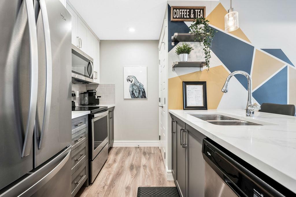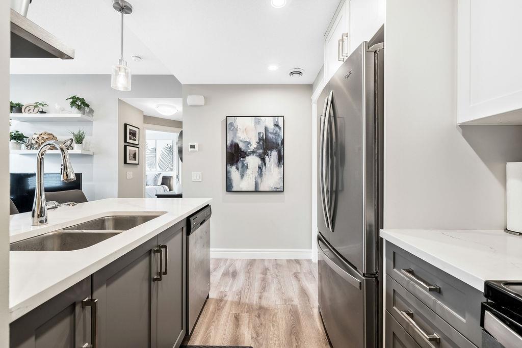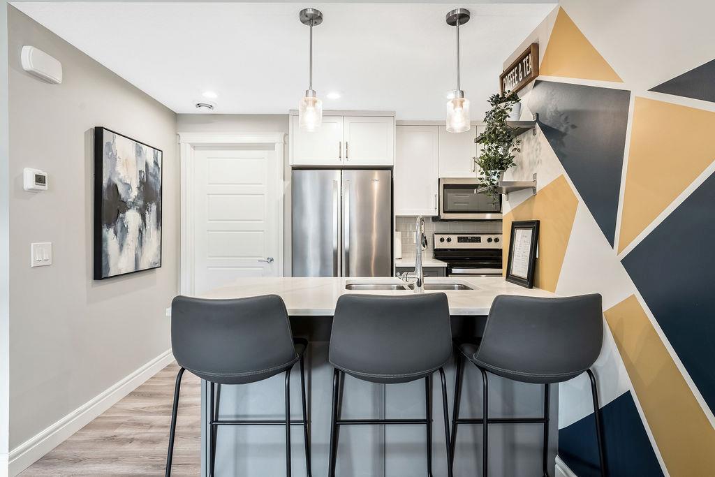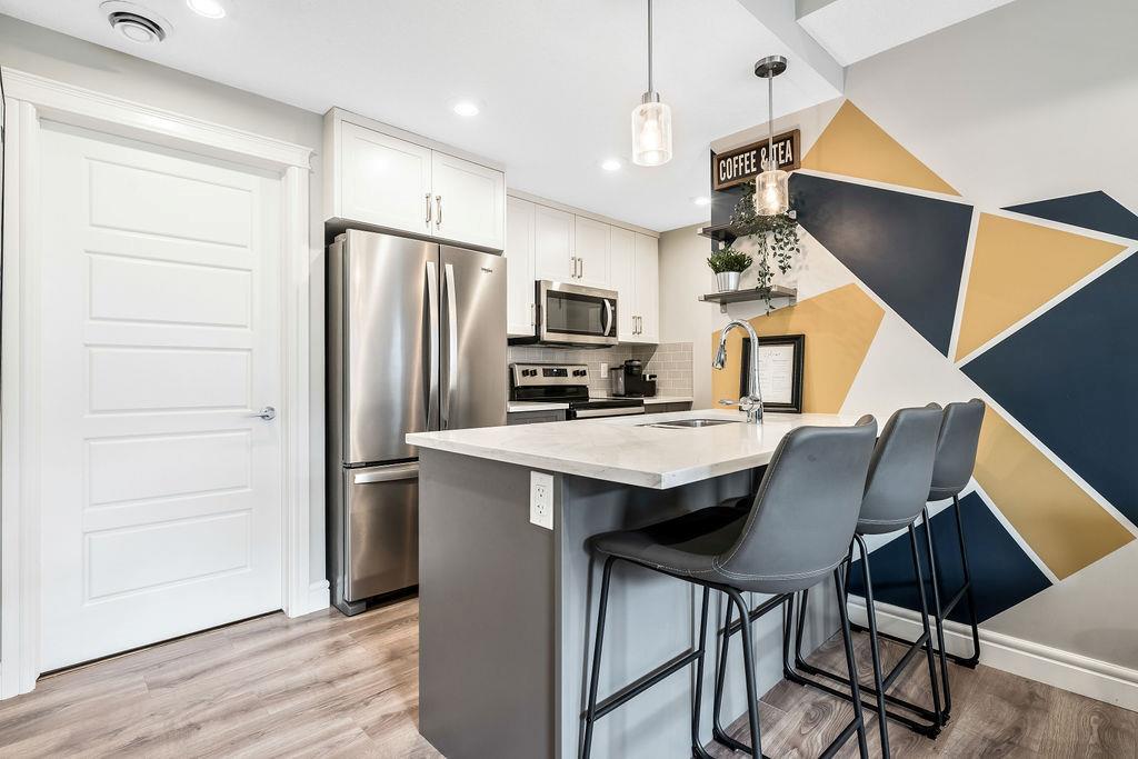 BACK ON THE MARKET DUE TO FINANCING. First Time Home Buyers & Investors!! Welcome to this well-kept, trendy, and cozy condo in the desirable neighbourhood of Seton, Calgary! This newer, stylish condo offers a fantastic opportunity to own a home in one of Calgary's most sought-after areas. With 1 bedroom + a den that can be used as a guest room, home office or flex space, this condo offers versatility to suit your lifestyle. This property also has the added benefit of affordable condo fees, making it a great option for those looking for a low-maintenance home without breaking the bank. The exterior of the building is sure to impress, with great curb appeal that sets the tone for this fantastic property. Located in the heart of a great neighbourhood, you'll enjoy all the benefits of living in one of Calgary's most vibrant communities. Inside, you'll find a beautiful kitchen with a large pantry that provides ample storage space, while the stainless-steel appliances, quartz countertops, breakfast eat-up bar, 2-tone shaker-style cabinetry, and neutral subway-tiled backsplash create a modern and sophisticated look. The floorplan offers an open-concept design that flows seamlessly from the kitchen to the living room. The large south-facing window floods the room with natural light, creating a warm and inviting atmosphere that is perfect for relaxing or entertaining. The primary bedroom is a spacious and comfortable space that is perfect for unwinding after a long day. The big south-facing window draws in lots of natural light, highlighting the neutral finishings, soft carpet and creating a peaceful and calming environment. The bathroom is a sleek and modern space that features a quartz countertop and a modern-style tub/shower combo, perfect for unwinding and relaxing after a busy day. If you're looking for an investment opportunity, this unit is currently set up as a successful Airbnb that sleeps 3. With high occupancy rates and the option to purchase fully furnished, this is an excellent chance to generate added income while enjoying the benefits of owning a beautiful property in a desirable neighbourhood. Whether you are a first-time homebuyer or a seasoned investor, this condo offers great potential as an addition to your real estate portfolio. This condo is truly a must-see and is sure to impress. Don't miss out on the chance to make this condo your own – schedule a viewing today! (id:22211)