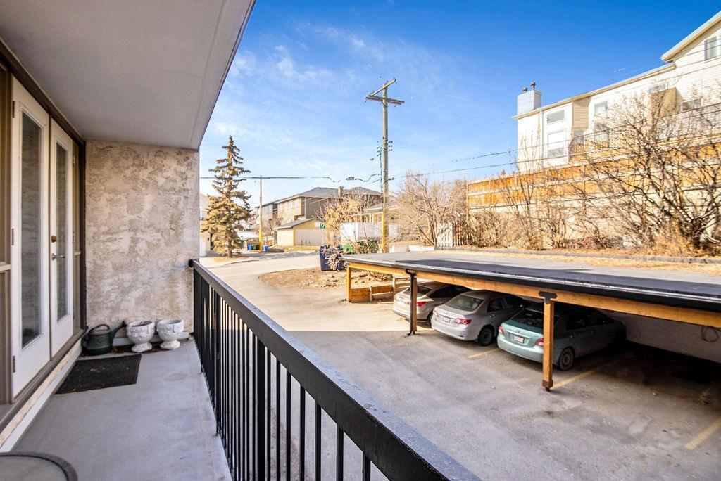 Bankview...where location is everything! Come live the Urban Lifestyle on a quiet tree lined street in this beautiful 1 Bedroom, 1 Bathroom condo apartment close to both downtown and 17th Ave restaurants and shops. Enjoy covered parking (condo board just re-did all of the stall roofing) which keeps your vehicle out of the elements and additional street parking throughout the neighbourhood. This unit offers sleek maple cabinets, modern stainless steel backsplash, ample counter space and a black appliance package. Cozy up to the kitchen breakfast bar and enjoy that morning cup of coffee or take in the evening sun from the large west facing balcony. A bright and airy Master Bedroom, 4 Piece bathroom, Linen Closet and In-suite Washer/Dryer are all part of the package. Separate locked storage unit located conveniently near your parking stall. This concrete building is very quiet to live in and well run with low condo fees. The building is currently undergoing an interior paint facelift, bringing the walls to an airy bright look. Book your Showing Today! (id:22211)