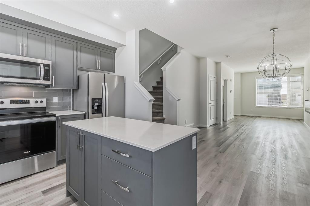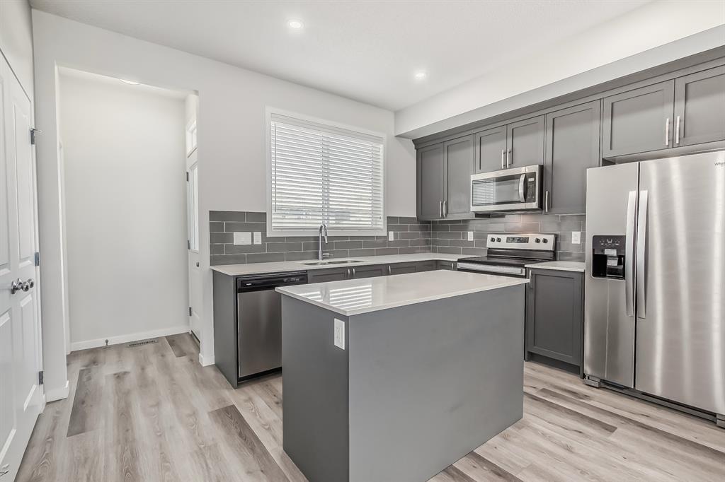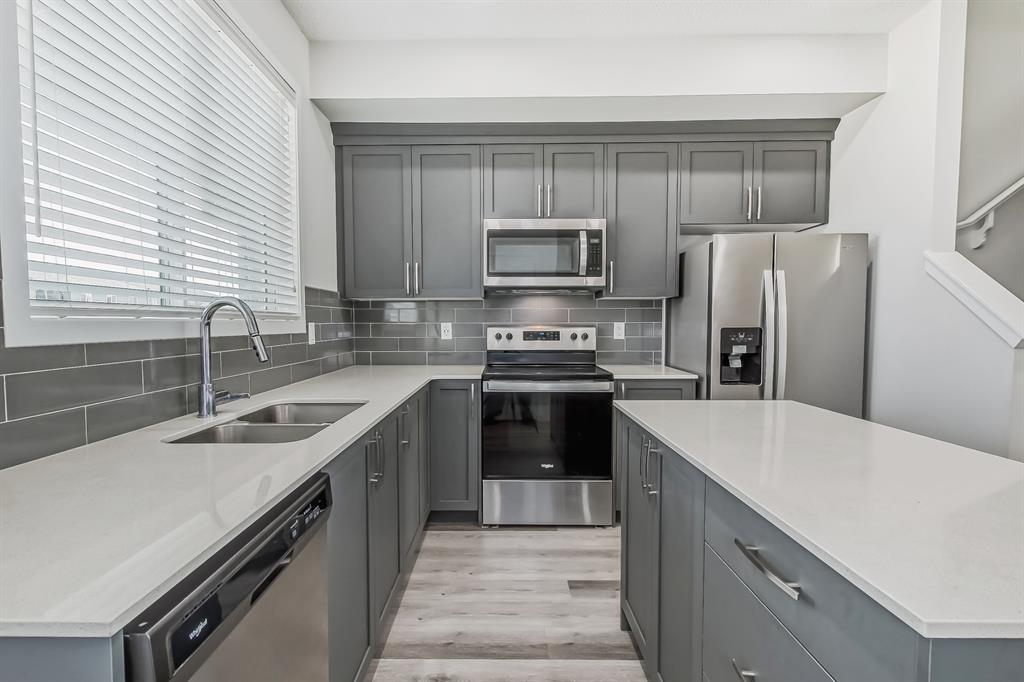 Welcome to this beauty, in this well sought after community of Cornerstone. Close proximity to lots of amenities. Mins walk to parks, schools, shopping, retail, public transportation and min to Stoney trail for easy access to the different areas of the city. This semi has the most sought after legal suite in the basement with one bedroom, living room, kitchen, bathroom and a separate entrance. Main level offers large open concept living area. Both kitchens features all stainless steel appliances with ample cabinet space, island, quartz countertops, custom backsplash. Upstairs features three good sized bedrooms including a huge master with a walk in closet and a four piece ensuite. Main level features upgraded LVP flooring, upstairs has carpet. This one is sure to go fast. Book a showing now. (id:22211)