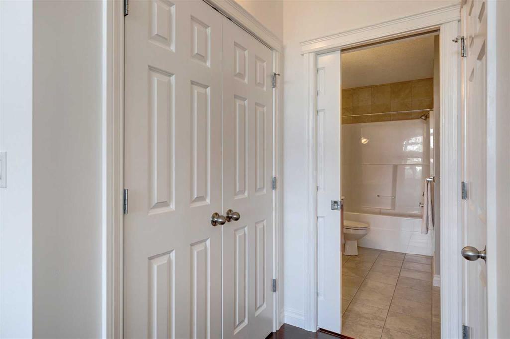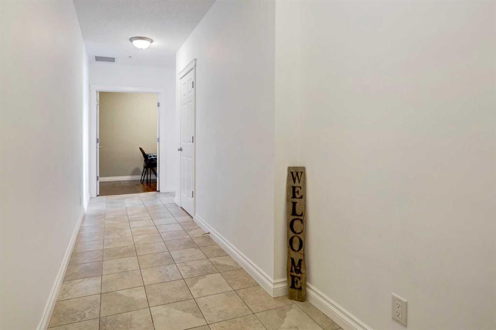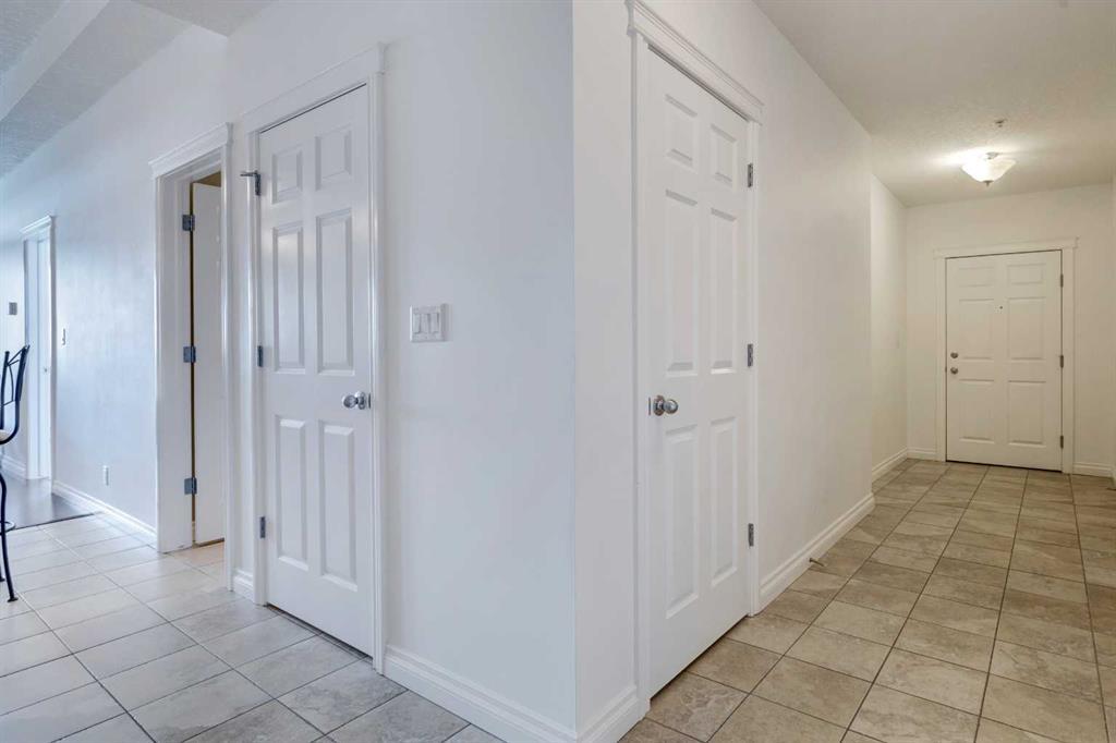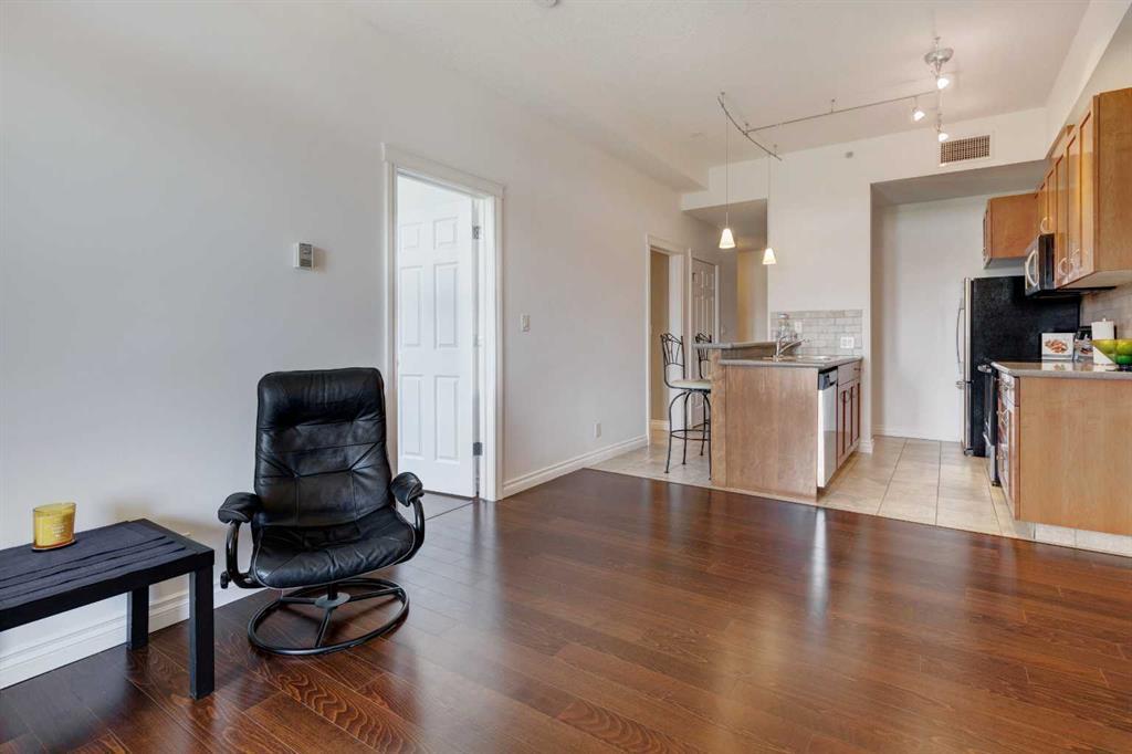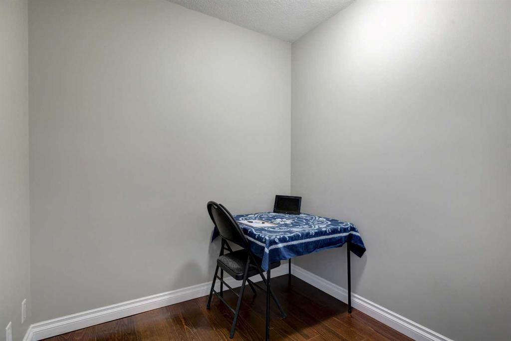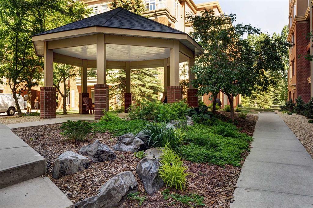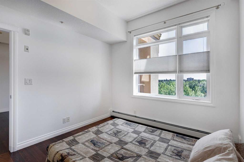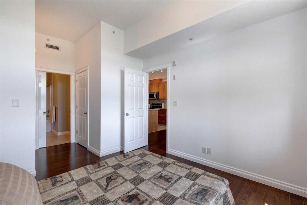 Fabulous Air Conditioned sixth floor unit with magnificent views & sunny south balcony in desirable Copperwood complex! Walk in & find a lengthy, tiled floor designated entryway with closet & room for a bench or table. Double doors encase the den perfect for a home office or flex room. Great layout offering mocha hardwood flooring & white painted walls for a nice contrast. Kitchen is excellent with central island with breakfast bar perfect for entertaining or quick meals. Dual sinks & garburator + stainless steel appliance package including space saving microwave/hood fan. Tile flooring & lots of counters & cupboards complete the kitchen. Living room is spacious & features a cozy corner fireplace. Views from the living room & bedroom are stunning! Large master bedroom with top down blinds allow the light to come in & views yet offer a sense of privacy. Double closets are very desirable. Cheater ensuite door opens to the bathroom with large vanity, soaker tub & shower combo & includes an over toilet shelving unit. Check out the laundry hatch too! Find the stacked washer/dryer enclosed in the hall. Balcony is the perfect place to enjoy summer with space for your patio furniture & a gas line for bbq. Titled parking stall is right beside the storage room which is so handy! Amazing complex includes car wash, workshop, party room & gym!! All this included in reasonable condo fees. Walk to c-train or mall. Fabulous location for this great unit. (id:22211)