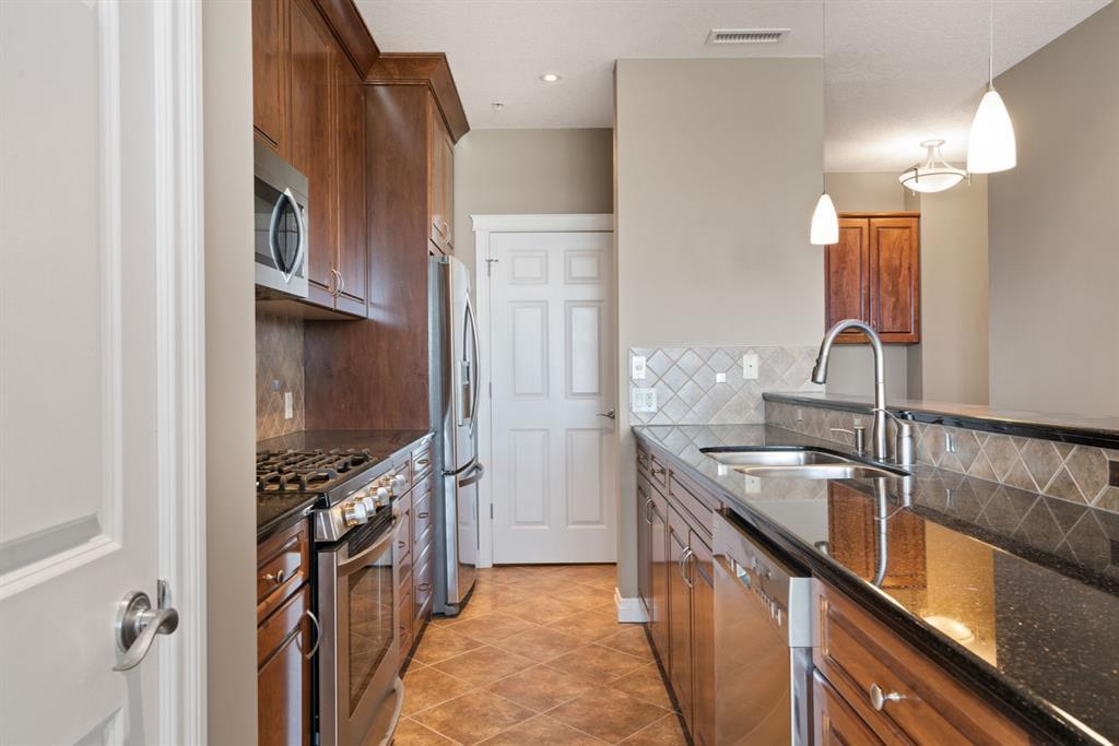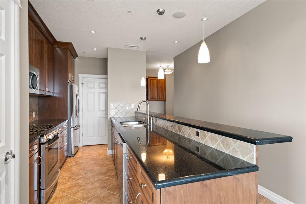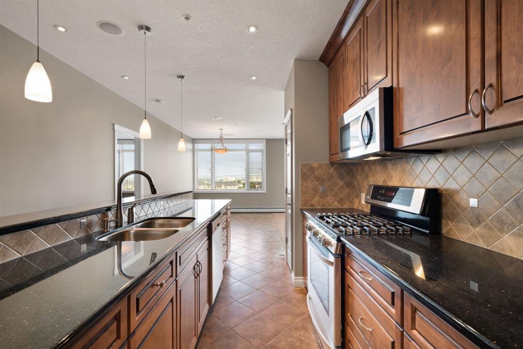 PANORAMIC VIEWS of the city from this stunning NEVER LIVED IN 1462 SQ ft condo in Hemlock Crescent. This condo features a ton of upgrades including 2 large bedrooms, chefs kitchen with granite counters and breakfast bar, stainless steel appliances with gas cook top and much more! The floor plan is open and spacious with large windows that allow tons of natural light. The primary bedroom features a beautfiul 5pc en-suite bath with large shower and granite counters. This home is perfect for entertaining as you step out on to your large balcony and overlook the city. Other features of the home include knockdown ceilings, upgraded lighting, built in speaker system, upgraded underlay and ceramic tile. The unit comes with TWO underground heated parking stalls and storage space. Building amenities include a fitness facility, party room, meeting room, car wash & wood working area in the parkade. This beautiful condo is neighbored by the Shaganappi Point Golf Course & is close to Edworthy Park, schools, shopping, public transit & has easy access to downtown via Bow Trail.This will not last long so book your private showing before its gone. (id:22211)