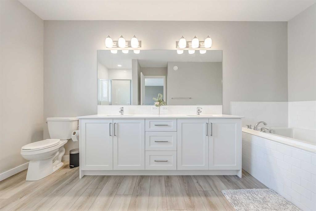 OPEN HOUSES: Friday 28th July 2023 from 2pm to 6pm; Saturday 29th July 2023 from 1pm to 4pm. Welcome to your dream home in the sought-after community of Walden! This 2-storey Excel built home offers a generous living space of over 2500 square feet & offers a front attached epoxied double garage. Featuring the well thought out Stanley floor plan, this home offers a versatile living space with an abundance of opportunity for your growing family. The inviting main floor boasts an open-concept floorplan combining the living room, dining area, and kitchen areas, while offering an abundance of natural light that fills the space. The stylish kitchen boasts high-end finishes, sleek granite countertops, a large island with breakfast bar, and top-of-the-line stainless steel appliances, all finished in a timeless navy and white colour scheme. Just off the kitchen you’ll find the dining room with a trendy feature wall and direct access to the backyard. The living room offers a cozy space where you can relax in front of the fireplace and watch your loved ones with wall to wall windows that look directly into the backyard. On the upper level you’ll find the primary bedroom featuring a large walk-in closet and a private ensuite bathroom with jack & jill sinks and a large soaker tub. You’ll also find two more generous bedrooms on the upper level along with a large bonus room, a 4 pc bathroom & an oh-so-convenient upper level laundry room! The expansive unfinished basement offers a blank slate with upgraded 9 ft. ceilings to create your dream space. Step outside into your private backyard haven – a professionally landscaped space sure to please with a large deck, pergola & patio areas. Don't miss the chance to make this house your forever home! (id:22211)