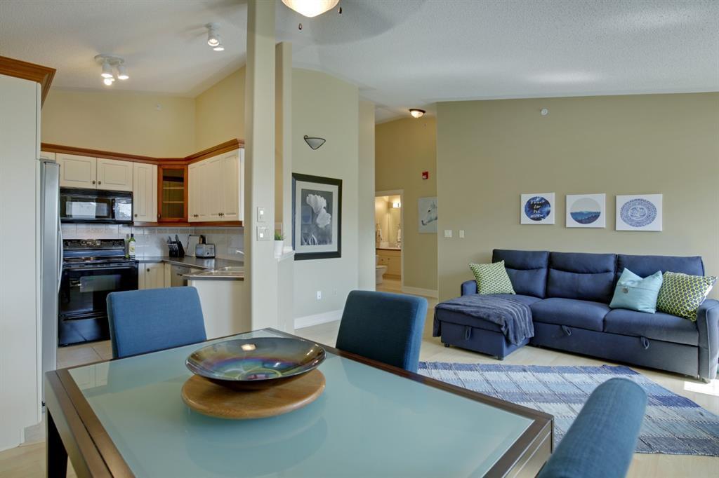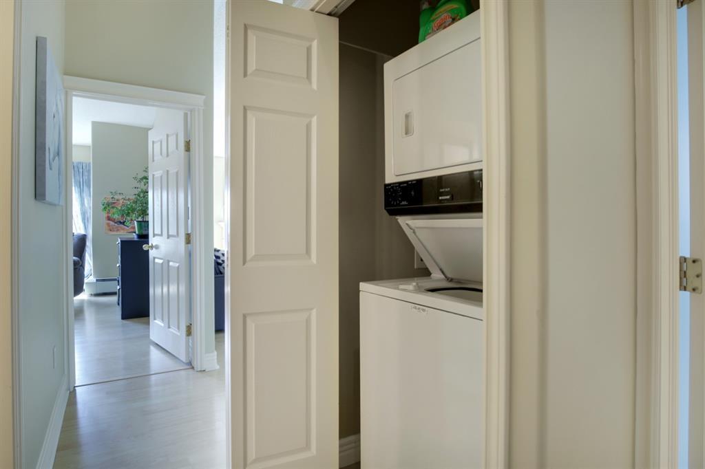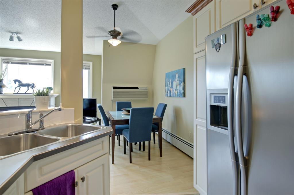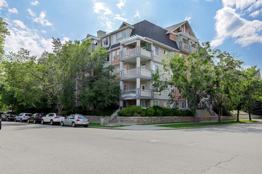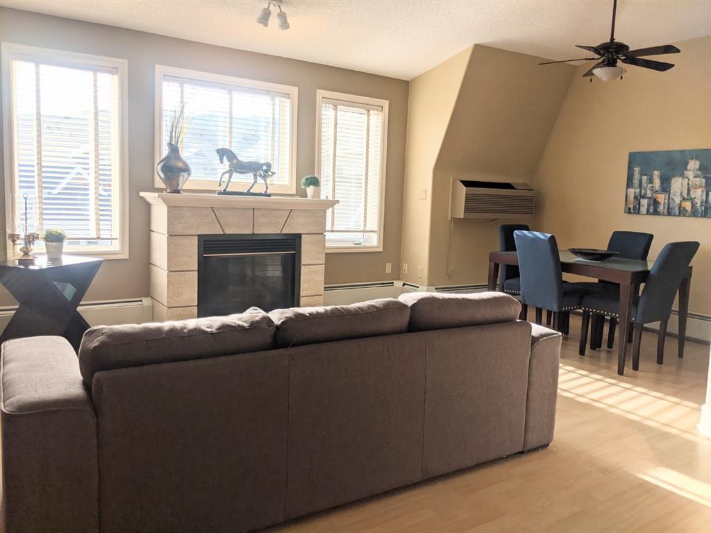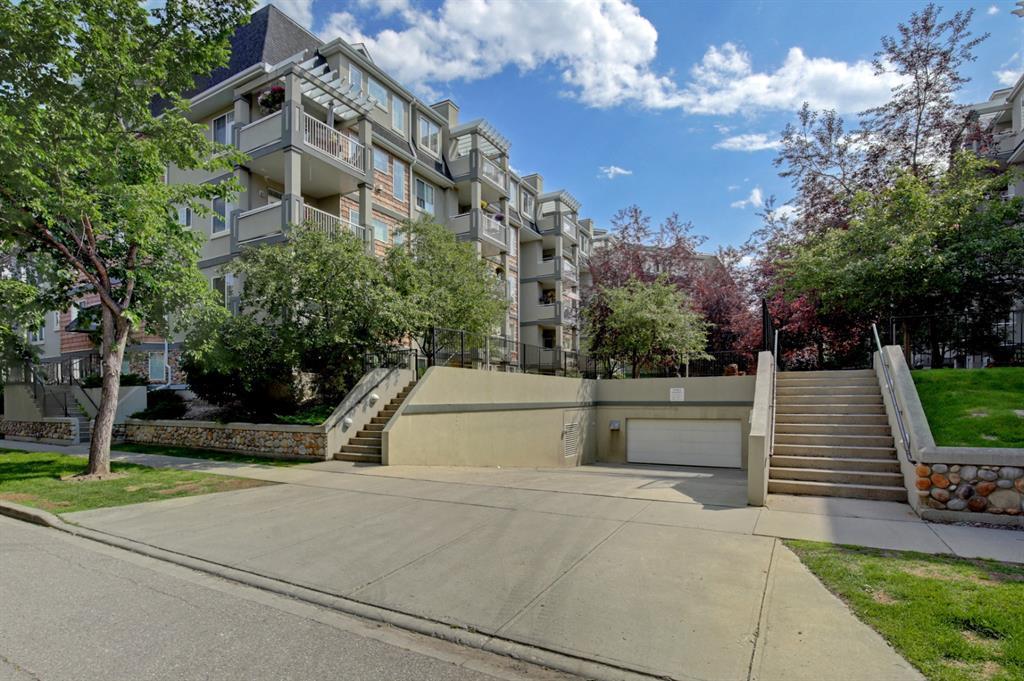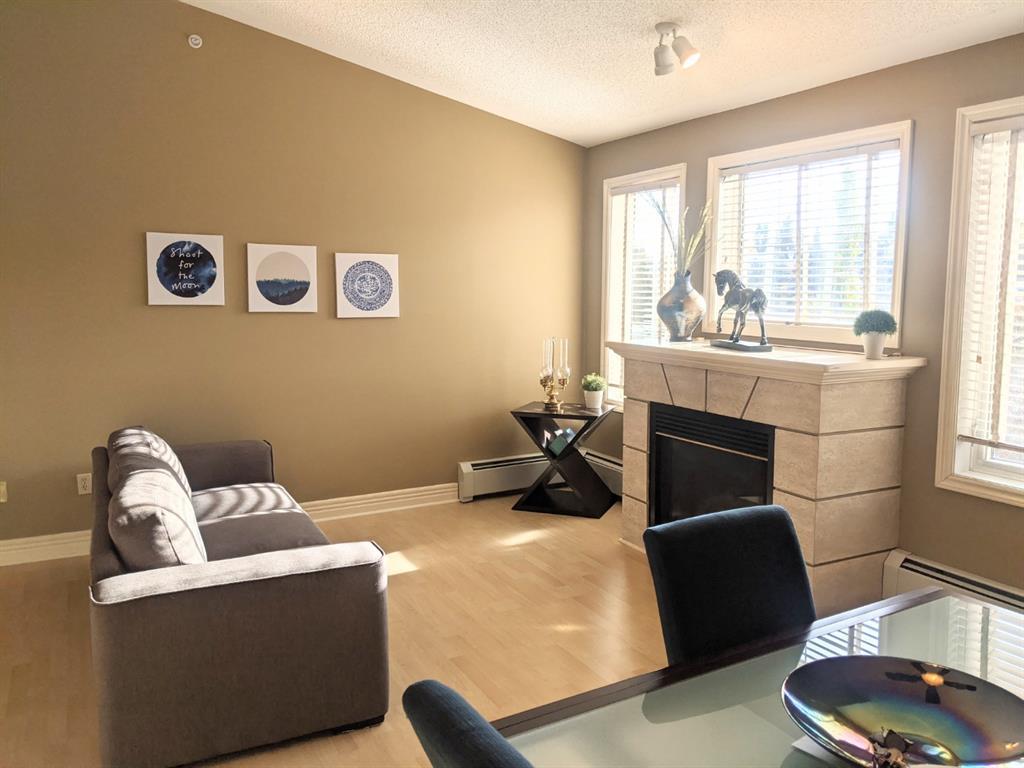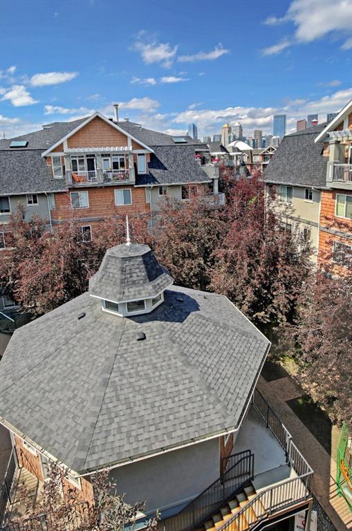 $10,000 drop!!! Want the Penthouse level? An apartment with 12 ft. vaulted ceilings with a fireplace? Downtown view from a private balcony? Waterford of Erlton is on a beautiful tree-lined street and features stunning views from all windows. The building is very quiet and the unit itself is sound buffered by the utility room and emergency stairwell on either side. Youre just minutes from the Elbow River walking paths, the Repsol Sports Centre, Stampede Park, restaurants, and shopping on 4th Street. There is a generous entry into the apartment itself that leads double master bedrooms with bathrooms with ensuites great for roommates, kids or guests, on opposite sides of the hallway. The first master has a large ensuite, walk-in closet, lots of room for a reading nook, and a balcony with Downtown city views facing the tree-filled courtyard. The second bedroom is a great size, lots of natural light, walk-in closet and has the pocket ensuite attached. The living and dining are open concept, great for entertaining or chatting while cooking dinner. Both areas are light-filled with windows flanking and above a stylish gas fireplace with a broad mantle and stone surround. The kitchen is partly open to the living room so the whole feel is very open and welcoming. Other features are air conditioning, in-suite laundry, heated parkade titled spot, storage locker, bike storage, car wash, and rentable party gazebo. The grounds are beautifully landscaped and cared for including a central courtyard complete with fountains! This complex is for all ages and is pet friendly. (id:22211)