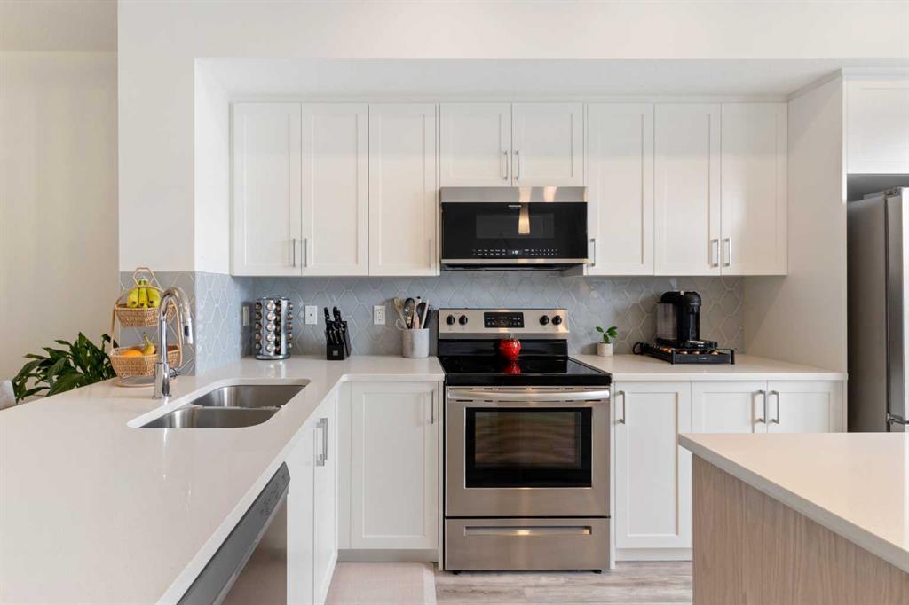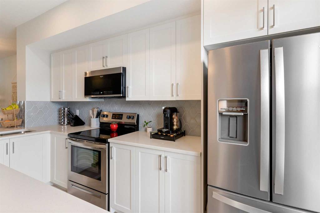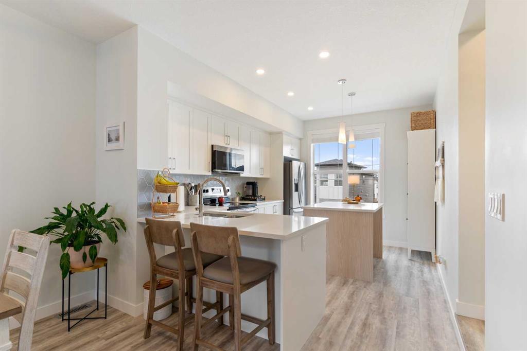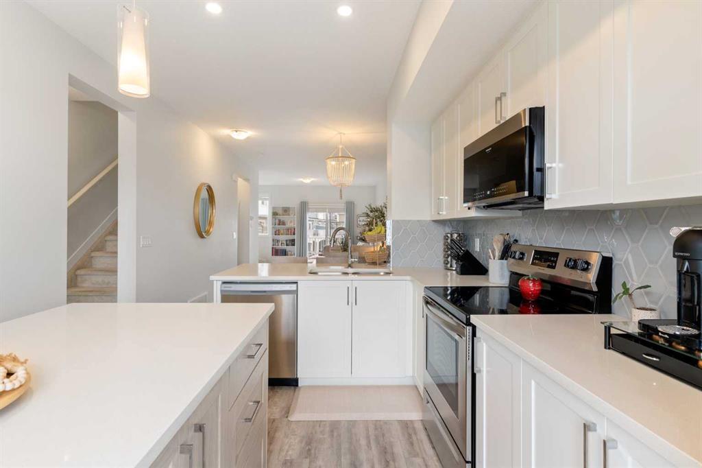 Welcome to this almost new, beautifully upgraded & impeccably maintained 3-BEDROOM, 3-BATHROOM with an OVERSIZE DOUBLE GARAGE. Bright, modern open concept, this home features the upgrades you expect in single family homes with the convenience & affordability of a townhome. This home boasts luxury vinyl plank floors, quartz countertops & stainless-steel appliances & an great size rear deck. The upper floor features a spacious primary master suite with a lovely ensuite bath, complete with dual sinks & a walk-in closet. Enjoy the convenience of having laundry on the upper floor, outside the bedrooms. Stay cool during the hot Calgary summers with central air. The double-attached garage is longer than others in the complex – 40 FEET LONG! Plus, extra parking on the longer than standard driveway. This home is also situated facing the single detached homes so you also have plenty of street parking.Better than New! Unlike buying new - you get the bonus of AIR CONDITIONING, WINDOW COVERINGS, WASHER & DRYER plus you don’t have to wait for it to be built! Just move in and enjoy!Steps from the K-5 school, playground, huge park, a block to the outdoor rink, community association, the beautiful 1.1 km path around wild-flower pond – one of three ponds within the area. A quick drive to all amenities on 130th, Seton & South Health Hospital & easy access to major routes such as 22x, Stoney Ring Road & Deerfoot Trail. Ideal for the FIRST TIME BUYER, DOWN/RIGHT SIZER, COUPLE or PROFESSIONAL SINGLE or the GROWING FAMILY. This spacious & comfortable townhouse in a great neighborhood, low condo fees has exactly what you're looking for. QUICK POSSESSION can be accommodated. Plus, with the upcoming Green Line LRT, property values are expected to soar. Don't miss out on this opportunity. (id:22211)