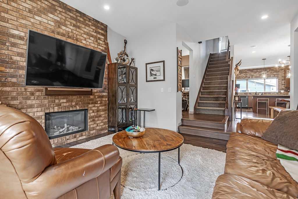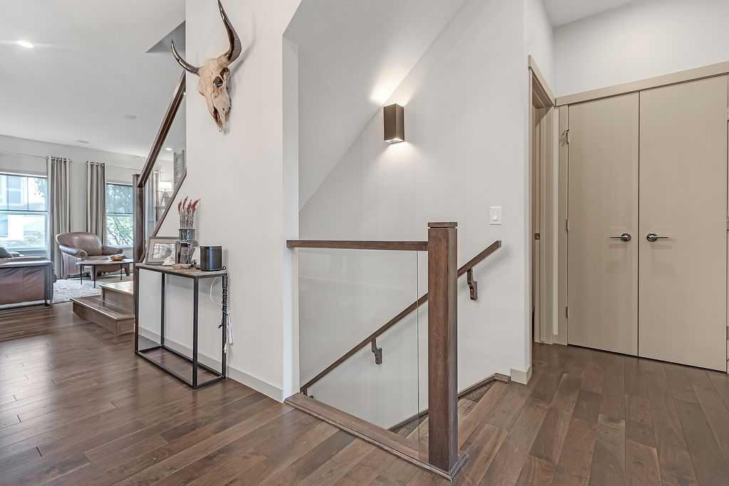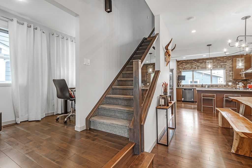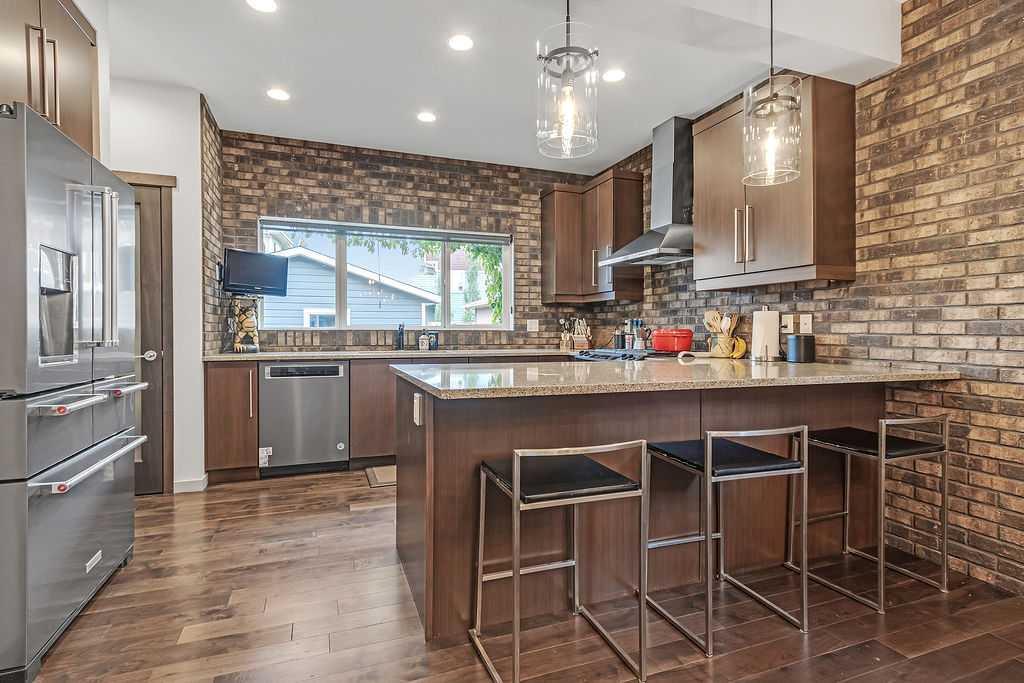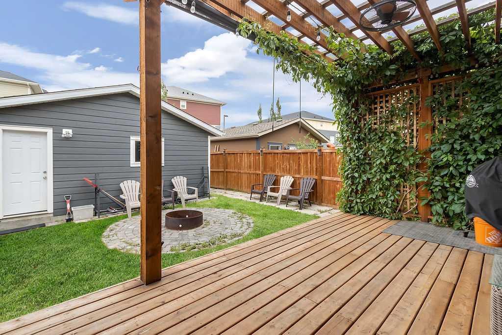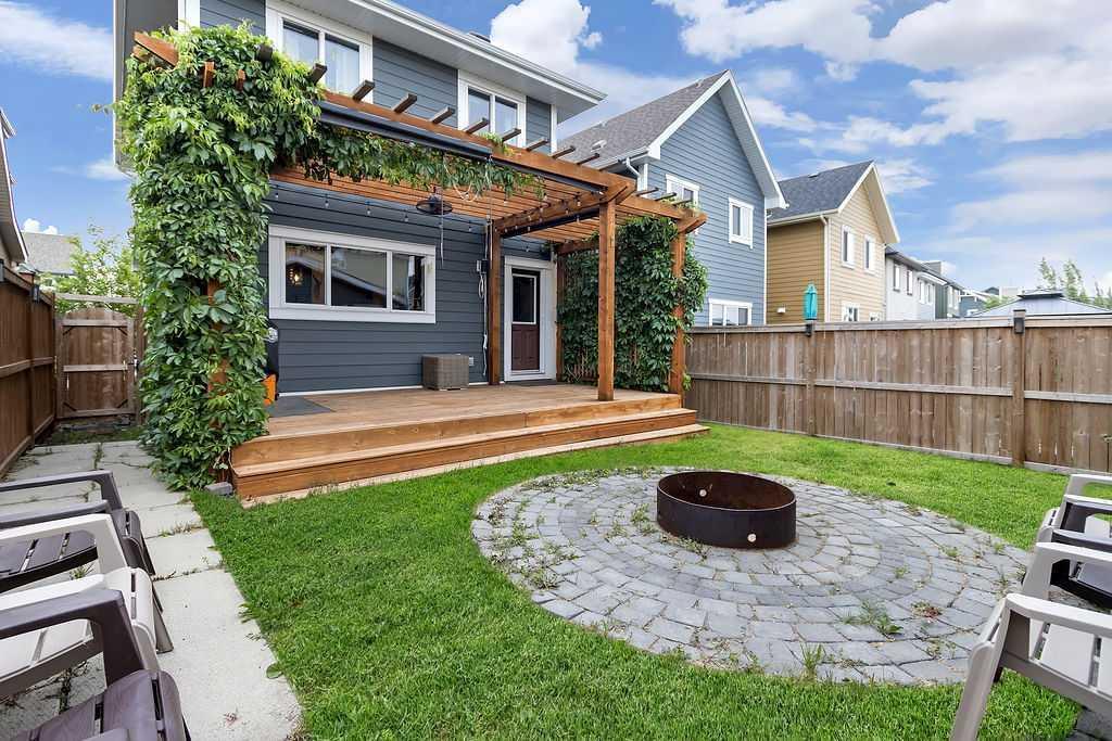 Who doesn't want to live in a former showhome!?? Welcome to your new home in fabulous Mahogany!! This beautiful four bedroom, four bathroom with double detached garage home will not disappoint. Upon entry, you are greeted with a warm open concept main floor featuring an impressive exposed brick wall, hardwoord floor, and stunning upgraded light fixtures. The kitchen/dining area is perfect for the seasoned chef and entertaining guests. This level has a guest powder room. IN ADDITION to the four bedrooms, on your way upstairs is a cleverly placed perfect office nook, tucked away from the living space AND the upper level. The upper level features two bedrooms, a full four-piece bathroom, a very convenient laundry room, and your primary oasis bedroom with vaulted ceiling, a walk-in closet, and a glorious primary en-suite with double vanity, soaker tub, and separate standing shower. The basement in the home is fully finished, has a great living room with built-in speakers, perfect for a theatre style area, a large fourth bedroom, and another full four-piece bathroom. An exquisite pergola full of lush greenery over the deck in the backyard and a lowered fire pit area gives you a private haven to relax in on those beautiful summer nights. The attention to detail the builder displayed in this home is apparent, and it has so many added features like air conditioning, built-in speaker system throughout the home, upgraded lighting, flooring, and the list goes on. The home is STEPS away from the schools, the lake, shopping, and all the wonderful amenities the highly sought-after community of Mahogany has. This home will not last long!! Book a showing with your favourite realtor today!!! (id:22211)