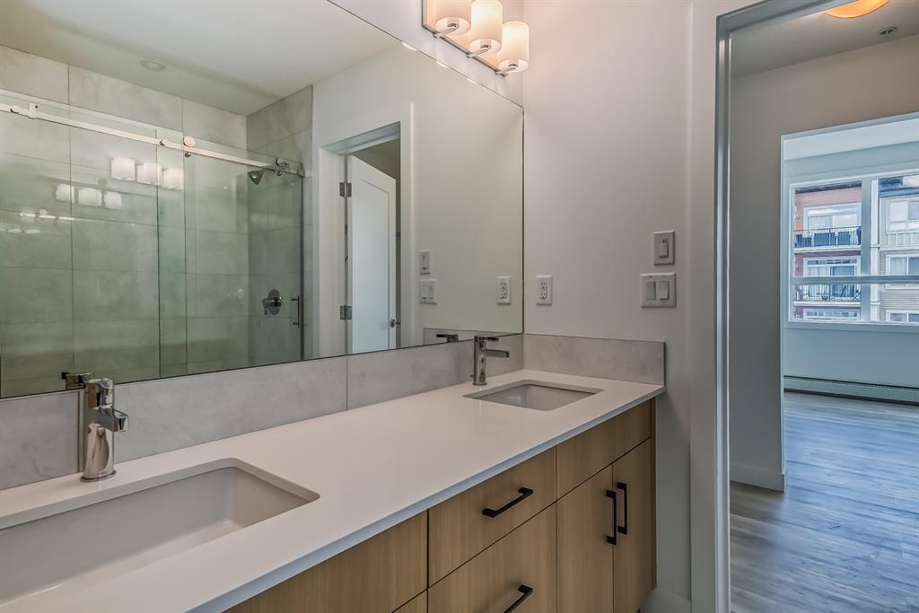 We are down to the final three units available at the highly acclaimed Cardel Lifestyles Walgrove Walk development. This unit is a corner gem, boasting a generous 1041 square feet (builder size) of luxurious living space. Positioned on the third floor with a desirable northwest-facing orientation, this unit offers an abundance of natural light. Adding to its appeal is a spacious 148-square-foot patio, perfect for enjoying the outdoors.Featuring two bedrooms and two bathrooms, this unit has been thoughtfully designed with your comfort and convenience in mind. The fully upgraded appliance package, which includes stainless steel appliances and a built-in microwave and wall oven, exemplifies the high-quality finishes throughout. You will also find 41" higher upper cabinets with under-cabinet lighting, an island extension, an upgraded backsplash, and quartz countertops, all enhancing the over feel of the suite.No detail has been overlooked in this unit, with luxury vinyl plank and tile flooring. The ensuite bathroom showcases a fully tiled shower complete with a frameless glass door, while the main bathroom includes a tub/shower combination. Tiled floors in both bathrooms further elevate the overall design. Additionally, the master bedroom features a walk-in closet, ensuring ample storage space.Noteworthy features abound, including large windows that flood the unit with natural light, a convenient washer and dryer, designer sinks and fixtures, upgraded lighting, and even air conditioning for your comfort. A storage locker and a patio with a BBQ gas line provide added practicality and convenience.Ensuring your peace of mind, the development boasts security features such as fob key entry, entry security cameras, and secure patio entrances/windows. The underground storage locker further enhances the functionality of this exceptional unit.Situated in the sought-after Walgrove Walk community, this development offers proximity to shopping, parks, and public transit, enhancing your lifestyle with convenience and accessibility.This spacious corner unit presents an opportunity to experience refined living. Don't miss the chance to make this remarkable residence your own. (id:22211)