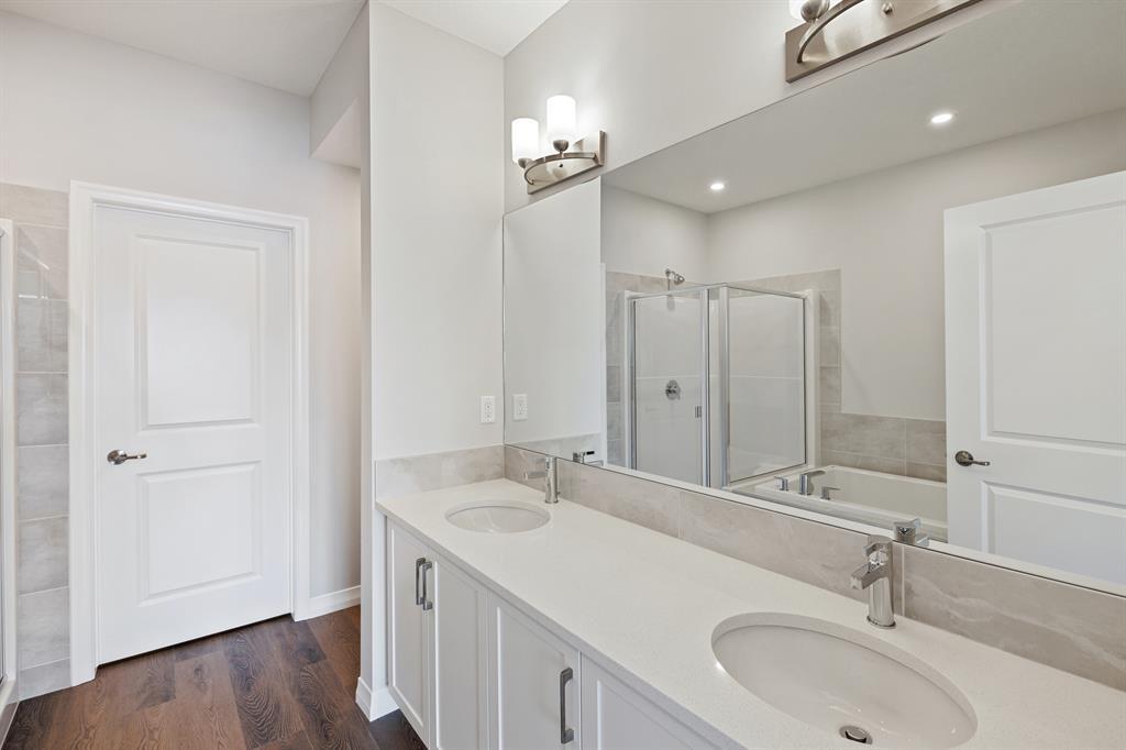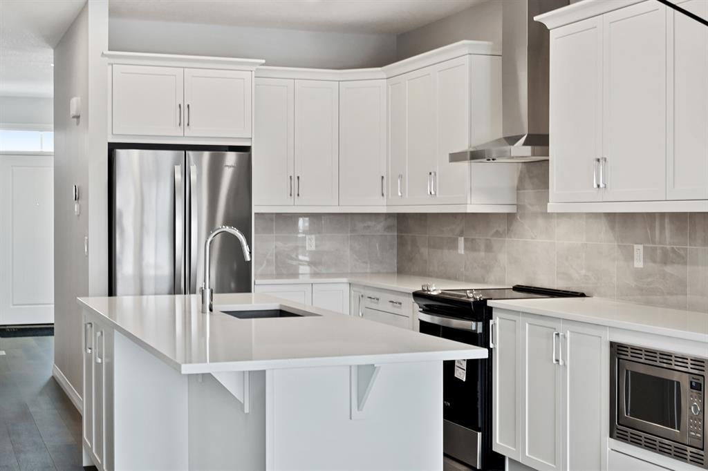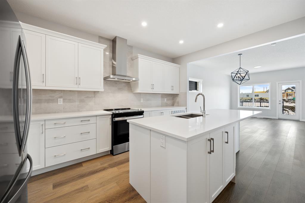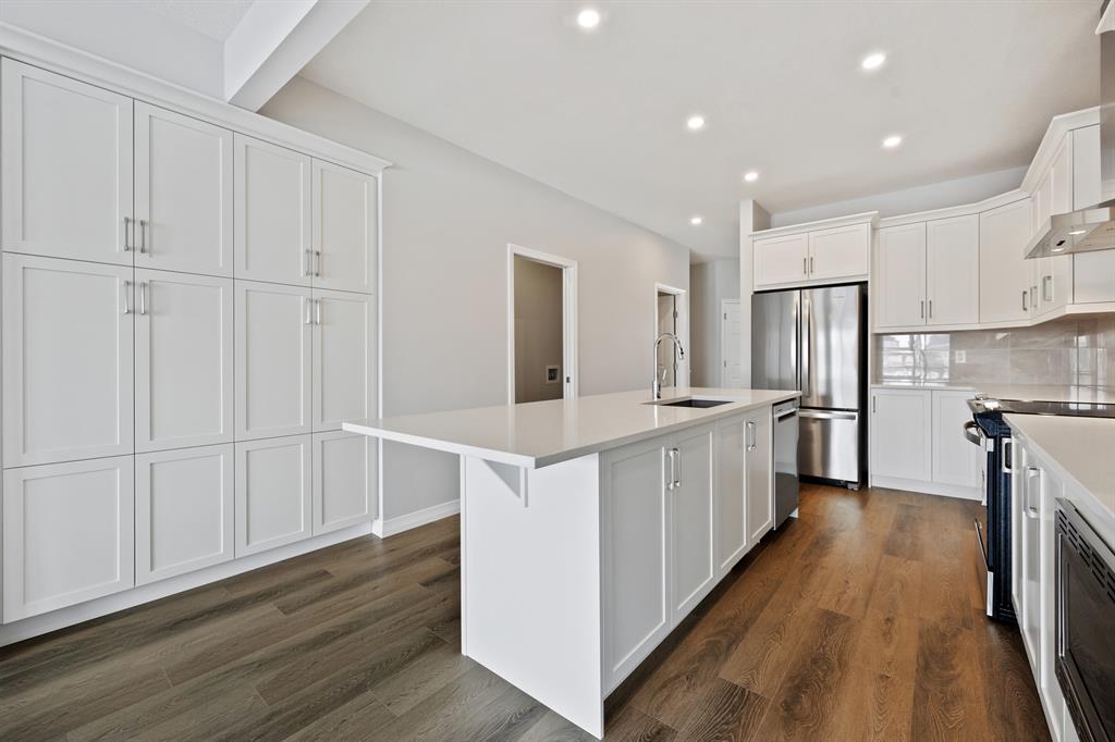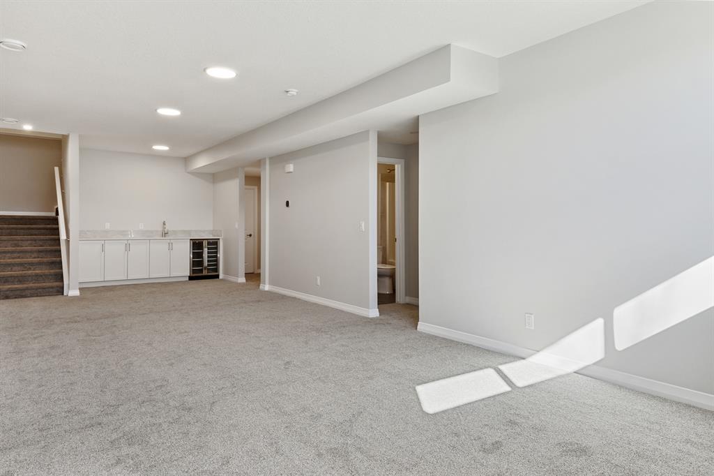 **Welcome to THE STREAMS of Lake Mahogany** A new level in luxury living by Jayman. This picturesque enclave nestled within the community of Lake Mahogany boast the tranquility of lake living while having an abundance of amenities at your fingertips. All of which are surrounded by parks & pathways with stunning architectural guidelines to elevate your lifestyle. Featuring West Coast & Urban Contemporary Design you will discover the beautiful FULLY FINISHED Sawyer floor plan featuring a beautiful exterior design. This gorgeous Bungalow will have you at Hello. As you enter, you seamlessly pass the DEN & are welcomed into a stunning open kitchen area with a soaring 9ft main accented with QUARTZ countertops, sleek stainless-steel appliances & lovely large centre island. Both the Great Room & Owner's Suite boast amazing site lines, with the Master including a "spa like" en suite showcasing dual vanities, large soaker tub, stand-alone shower & walk-in closet with laundry for ease of convenience. The FULLY FINISHED lower level features an expansive Rec Room, ONE ADDITIONAL BEDROOM, full bath, wet bar and laundry room. Enjoy your SINGLE ATTACHED GARAGE with extended parking pad along with a front and rear porch, which is perfect for all of Alberta's weather! The Streams takes its inspiration from the surrounding natural environment. It is that natural environment which has shaped and influenced the architectural style and landscape features within the community reflecting the beauty of the Lake and its surroundings. All while incorporating the leading technology in smart home necessities, BuiltGreen Canada Standard requirements and cutting-edge home efficiencies such as solar panels, UV-C ultraviolet light air purification system, High efficiency furnace with Merv 13 filters, Active Heat Recovery Ventilator, Navien-brand tankless hot water heater, triple pane windows, dual zone furnace and an electric vehicle charging rough in.Save $$$ Thousands: This home is eligible for the CMHC Pro Echo insurance rebate. Help your clients save money. CMHC Eco Plus offers a premium refund of 25% to borrowers who buy a climate-friendly housing using CMHC-insured financing. Click on the icon below to find out how much you can save! Discover an elevated experience where you can enjoy an attached garage while still appreciating a maintenance free, lock and leave lifestyle. (id:22211)