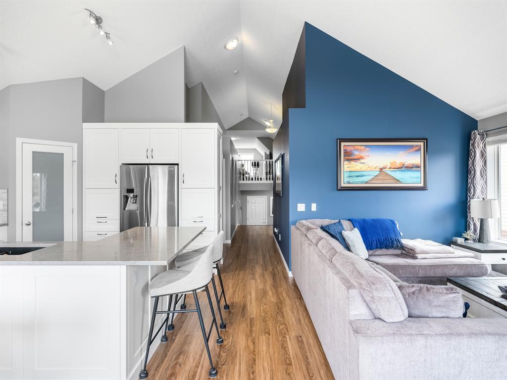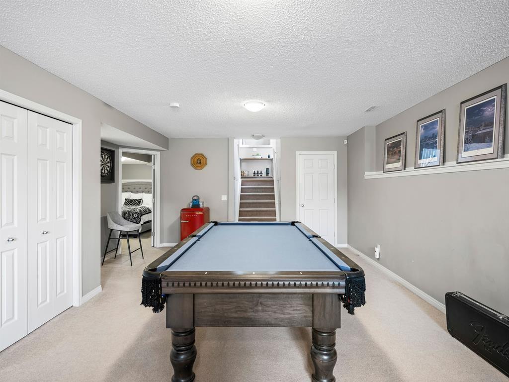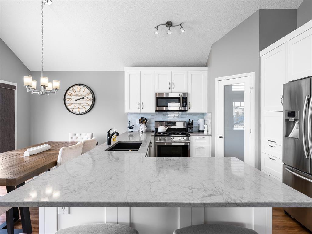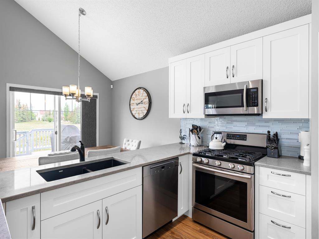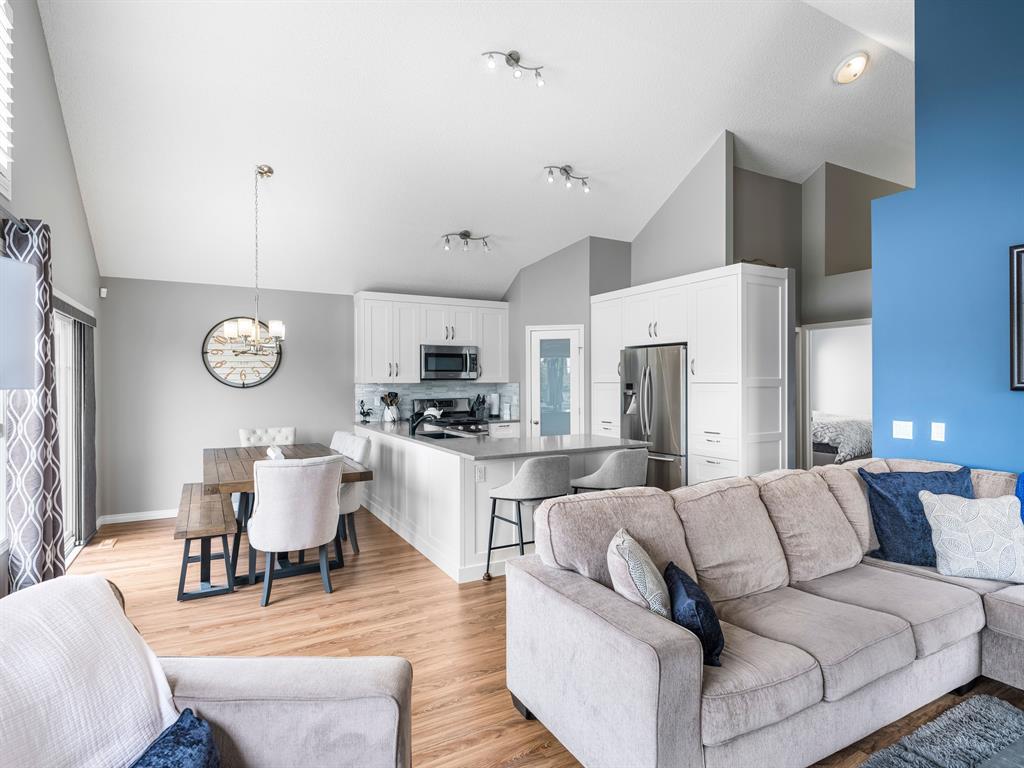 Nestled on a quiet street with greenspace and a park as your backyard, this beautiful bi-level home boasts over 2400sqft of living space. Within walking distance to schools, and a few minutes from shopping this home is a must see. The vaulted ceilings, and open concept floor plan, makes this home spacious and bright. The main floor features vinyl plank flooring, kitchen with quartz countertops, stainless steal appliances, gas stove and a corner pantry. The large living room with gas fireplace and dining room complete this space making it perfect for entertaining. The large primary bedroom is complete with a 4pc ensuite including quartz counter tops, soaker tub, stand up shower and a walk-in closet. A second bedroom and another full bathroom complete the main floor. The fully finished basement has 2 more bedrooms, and another full bathroom and a large rec room with pool table. This home is complete with an attached double garage and new furnace and water heater which were installed in March 2023. (id:22211)