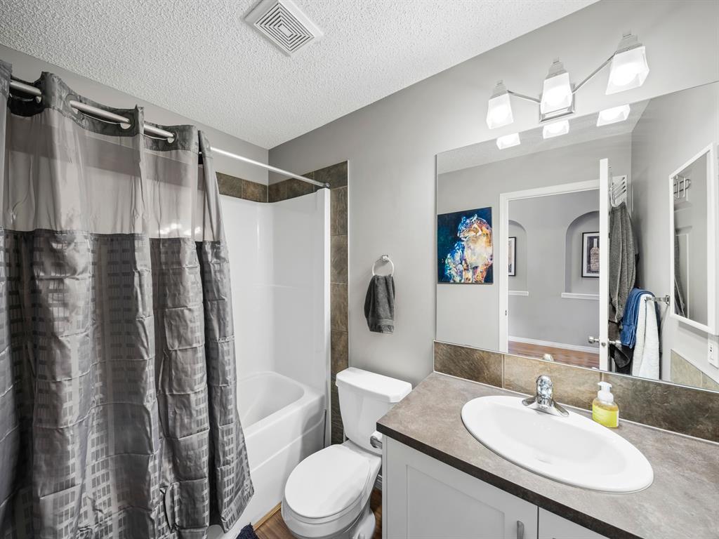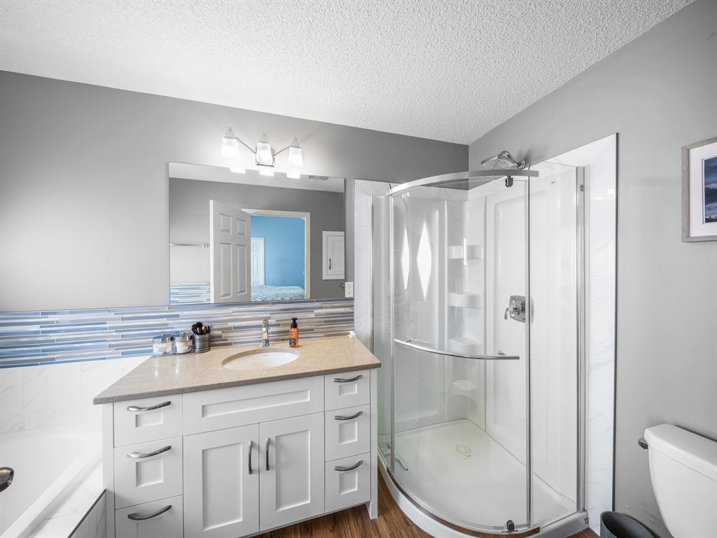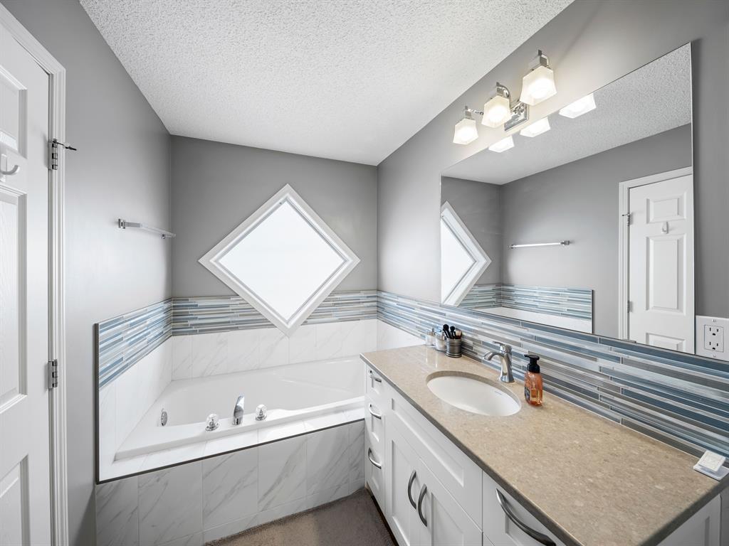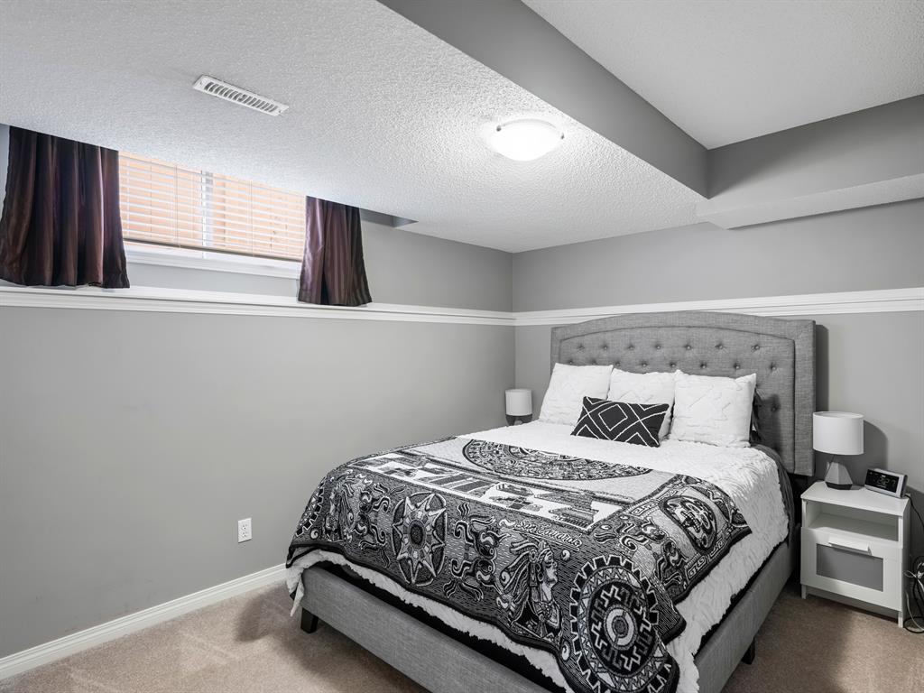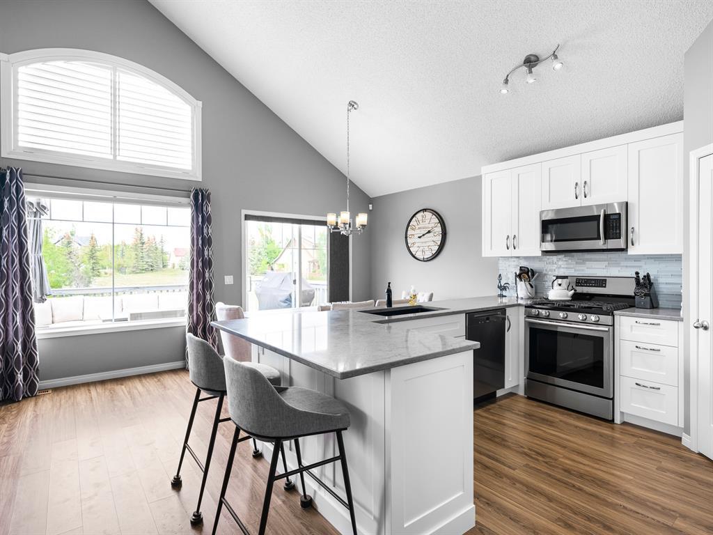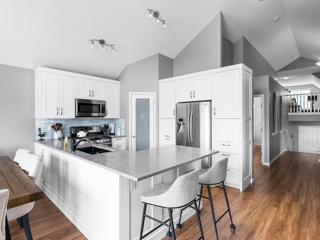 Nestled on a quiet street with greenspace and a park as your backyard, this beautiful bi-level home boasts over 2400sqft of living space. Within walking distance to schools, and a few minutes from shopping this home is a must see. The vaulted ceilings, and open concept floor plan, makes this home spacious and bright. The main floor features vinyl plank flooring, kitchen with quartz countertops, stainless steal appliances, gas stove and a corner pantry. The large living room with gas fireplace and dining room complete this space making it perfect for entertaining. The large primary bedroom is complete with a 4pc ensuite including quartz counter tops, soaker tub, stand up shower and a walk-in closet. A second bedroom and another full bathroom complete the main floor. The fully finished basement has 2 more bedrooms, and another full bathroom and a large rec room with pool table. This home is complete with an attached double garage and new furnace and water heater which were installed in March 2023. (id:22211)