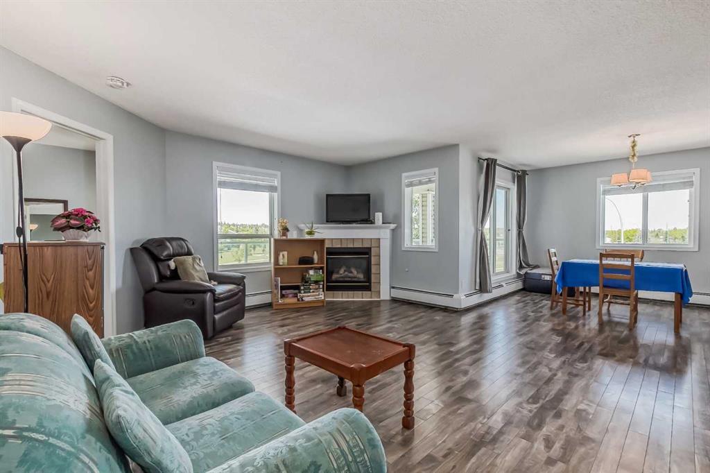 Welcome to Gateway Shawnessy! Are you in the market for arguably the best unit in the whole complex?! This Penthouse two bedroom, three bathroom, two underground parking stalls and one storage unit is ready for the next owner. This condominium breaks all the rules when it comes to space and functionality. But first, notice when you arrive at the condominium the large, mature trees surrounding the building that give you a peaceful, back-to-nature, away-from-the-city vibe. Upon entering the condo you are immediately impressed with the beautiful, laminate flooring and the brightly lit, open-concept living area. The kitchen has all stainless-steel appliances, including an over-the-range microwave, a built-in pantry, and one of three washrooms. That’s where it first breaks all the rules when it comes to space; it has two bedrooms and three washrooms. The washroom off the kitchen is a two-piece and is perfect for guests. The galley-style kitchen has ample storage, and is brightly lit with track lighting. The main living area boasts four large windows allowing the light to flood into the home; including custom patio doors leading out to an extremely large, wrap-around deck with glass baluster railing, lighting, and a view that goes on forever. Back inside you have a modern, corner, gas fireplace to knock off the chill on a cold evening, or to create a beautiful and comfortable feel anytime. The dining room is large enough for all your needs and is bathed in warm, natural light. Both Primary bedrooms are a good size to fit your bed and furniture, and are well lit. But this is where the condo again breaks all the rules for space; both bedrooms have their own walk-through closet, and ensuites. One ensuite is a four-piece, while the second ensuite is a three-piece. They are on opposite sides of the unit great for separation and privacy. The condo is on the fourth floor and accessible by elevator, which means this penthouse suite has no neighbors living above; a luxury that is hard to put a price on! There is also a storage/laundry room with custom shelving. “Where do I park?” you ask. Once again, rule breaker… you have two titled parking stalls in the underground secure parkade with one adjacent to the elevator, as well as heated stalls for visitors, plus one additional titled cage storage unit as well. This corner unit condo is walking distance to various amenities, shopping, LRT, YMCA, library, theatre, and restaurants. This is where luxury meets convenience. If you are an investor looking to add to your portfolio the current tenants would love to stay. They have been there for 3.5 years. Book your showing and come on buy! (id:22211)