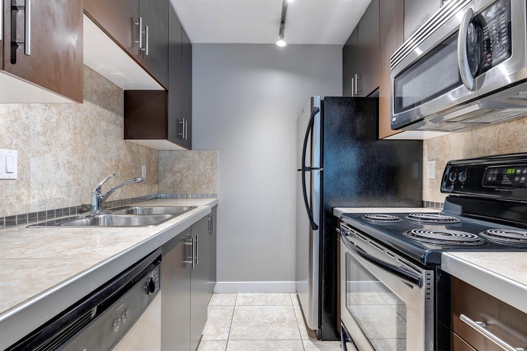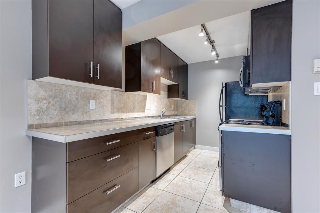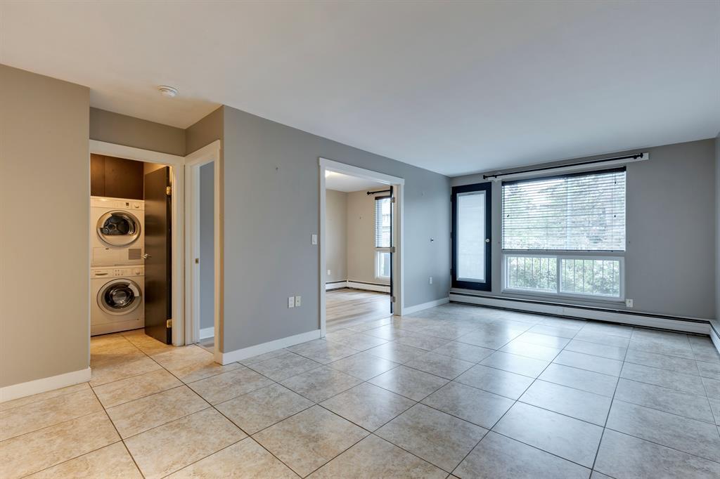 Have it all with inner city living at its finest. Walking distance to downtown and many amenities. LOW CONDO FEE'S. This trendy end-unit condo features a quiet concrete building with sleek and elegant finishing's throughout. Walk into the open front foyer with a large front hall closet. The galley-style kitchen features full-height shaker-style cabinets, stainless steel appliances and gorgeous tile counters complete with a full-height tile backsplash. The good-sized dining area leads to your living room with bright, airy windows and a patio door leading to your serene balcony. The bedroom features double french doors, a massive window and a large closet space. 4 piece bath includes full height tile surround, a deep tub, and stacked laundry. There is also a common secured storage room for all building occupants and an assigned parking stall. Book you're showing today. (id:22211)