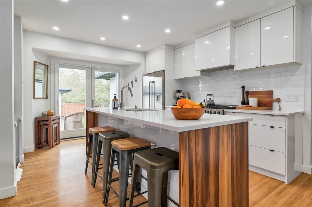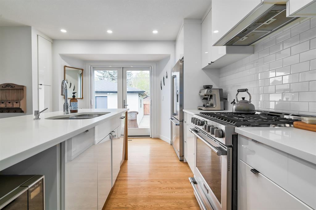 Be swept away in this expansive 1550 sq ft bungalow that has been completely renovated. Clean lines, ultra contemporary with a Scandinavian flair you won't want to miss out on this one of a kind property in Wildwood. Hardwood floors throughout main area are beautifully complimented by white cabinetry, backsplash and tiles. 3 + 2 bedrooms make this home an easy fit for family life and guests. The open concept main floor is perfect for family gathering that can effortlessly flow out to the west facing backyard. The basement is fully finished complete with a 4 piece bath, family room, 2 bedrooms and a flex room. Park your cars and your toys in the oversized double detached garage. At a moments notice you can easily take advantage of the pathways, Wedgewood Athletic park, Douglas fir Trail and Edworthy park for a family bike ride or to walk the fur babies. Schools are within walking distance and so is the clubhouse with Tennis courts. You'll feel like you're living away from the hub-bub but really you'll be moments to downtown, shopping and amenities (West Hills is less than 5 minutes away by car). Other features and details that are included smart lighting in living room, kitchen and back door, smart irrigation system, garden lighting in back, outdoor fire pit with 200,000 BTU natural gas burner, hot water tank 2019, washing machine 2022, central vacuum 2022, gas stove 2022, cedar shed 2019. (id:22211)