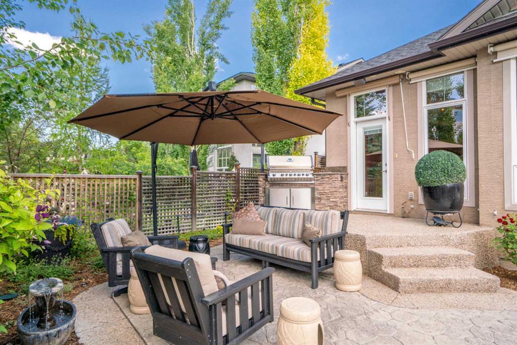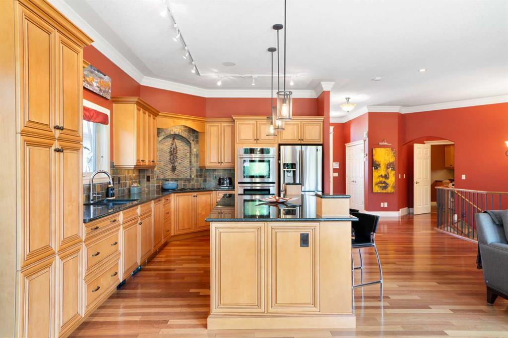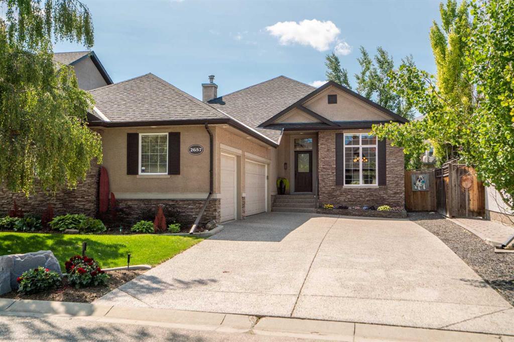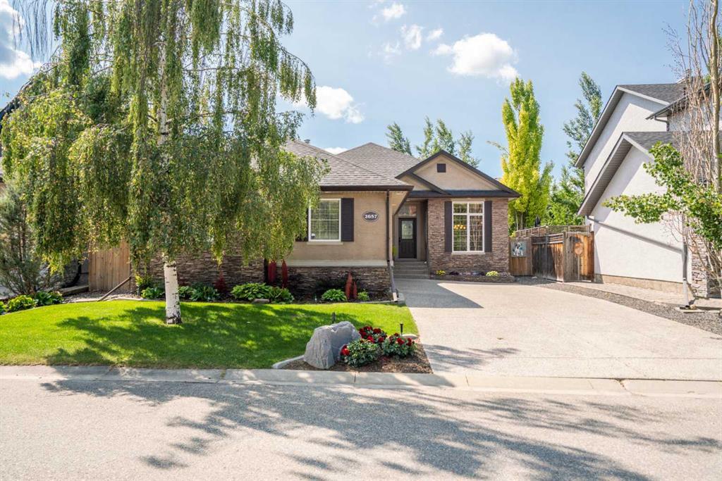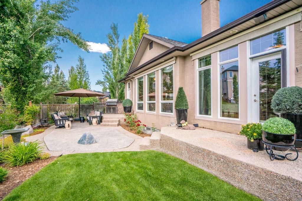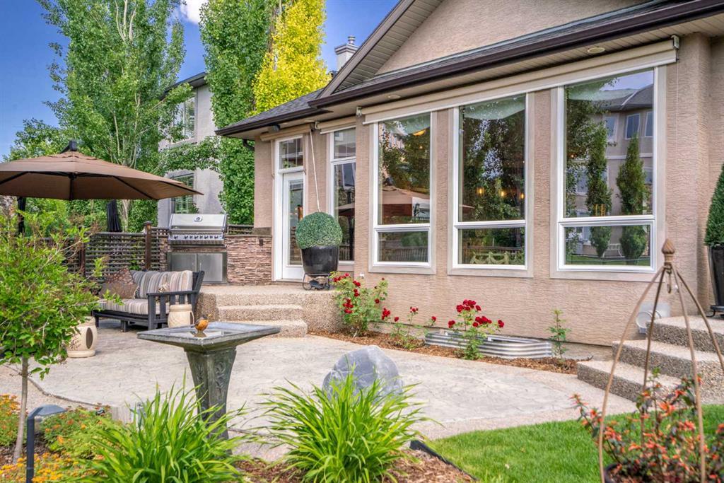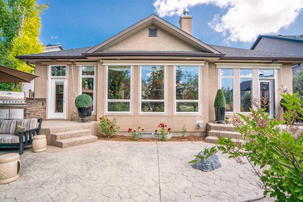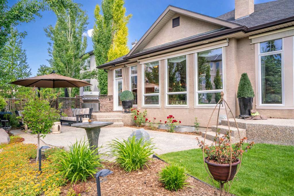 Welcome to this spectacular bungalow nestled in the desirable Evercreek Bluffs. As you step inside, prepare to be captivated by the meticulously maintained property that exudes elegance and charm. The open concept floor plan seamlessly combines spaciousness and functionality, creating the perfect setting for entertaining family and friends. Rich hardwood floors greet you, extending throughout , while the impressive 10' ceilings adorned with detailed crown mouldings add a touch of grandeur. The heart of this home lies in its thoughtfully designed kitchen, a true haven for culinary enthusiasts. Immerse yourself in the beauty of the exquisite granite countertops, perfectly complemented by stainless steel appliances, including newer refrigerator. The expansive kitchen island provides ample space for meal preparation, and the abundance of storage ensures easy access to all your cooking essentials. Relax and unwind in the impressive family room, where a stunning gas fireplace creates a warm and inviting atmosphere. Oversized south-facing windows flood the room with natural sunlight, seamlessly connecting the indoor and outdoor living spaces. The primary bedroom offers a sanctuary of luxury, boasting a spacious walk-in closet and a spa-like 5-piece ensuite. Indulge in ultimate relaxation and rejuvenation in this private retreat. Completing the main level is a versatile dining room that can easily be transformed into a home office or den, catering to your specific needs. Conveniently located off the large heated triple garage, you'll find a well-designed laundry/mud room equipped with Miele machines, adding functionality and practicality to your everyday living. The lower level of this home showcases two generous bedrooms, providing ample space for family or guests. Create your own first-class movie experience in this wired movie/theatre room, delivering top-notch entertainment. The impressively large recreation room with a wet bar offers endless possibilities for relaxatio n and entertainment. Additionally, a pristine storage room ensures organization and tidiness. Step outside into the backyard oasis, where you can host gatherings and create lasting memories. This exceptional property goes above and beyond with an outdoor kitchen, complete with a built-in BBQ, allowing you to fully enjoy outdoor culinary delights. The expansive patio sets the stage for leisurely moments, enveloped by the tranquil ambiance of the surrounding walking paths. Additional gas hook ups are set up ready for your gas fire table. This home is conveniently located just steps away from the breathtaking Fish Creek Park, boasting an extensive network of walking paths. Immerse yourself in nature's beauty as you embark on leisurely strolls, invigorating jogs, or bike rides amidst the picturesque scenery. This home has been cherished by its owners and presents a rare find in today's market. Don't miss the opportunity to make it yours! (id:22211)