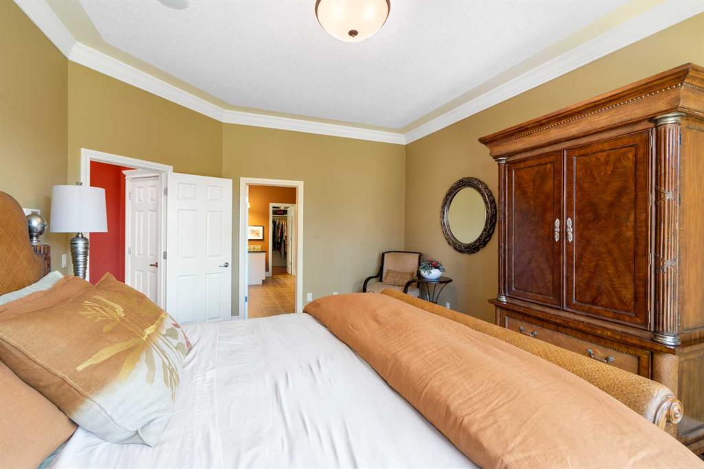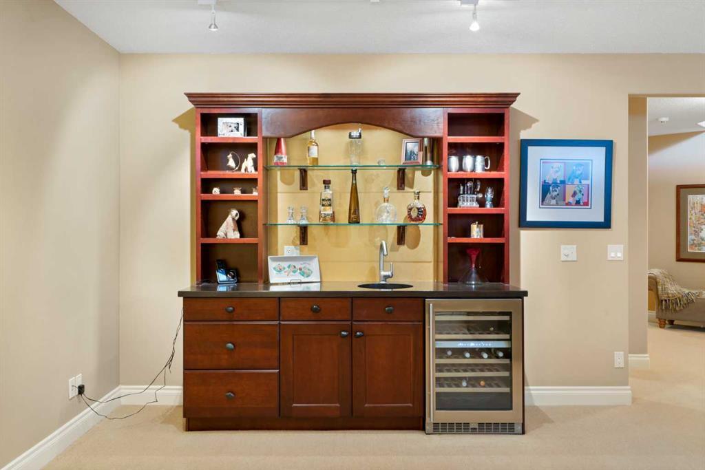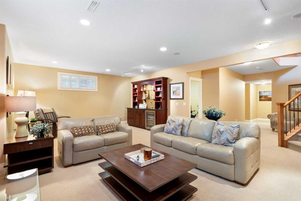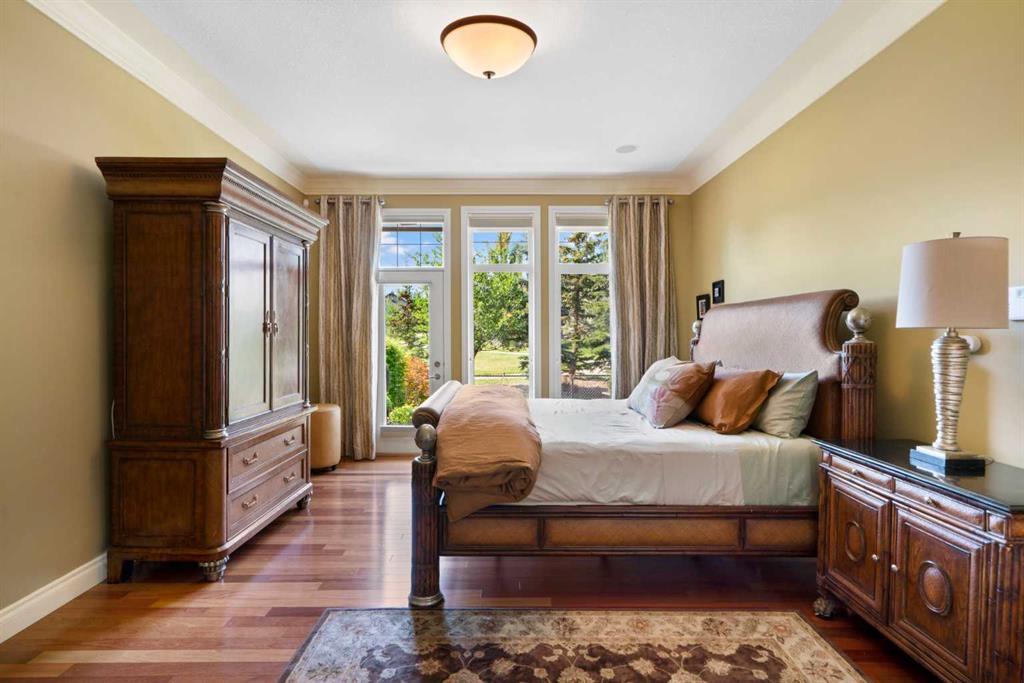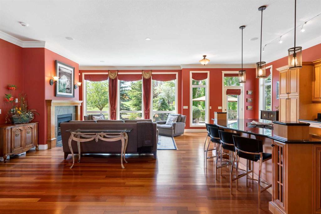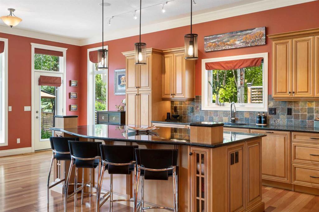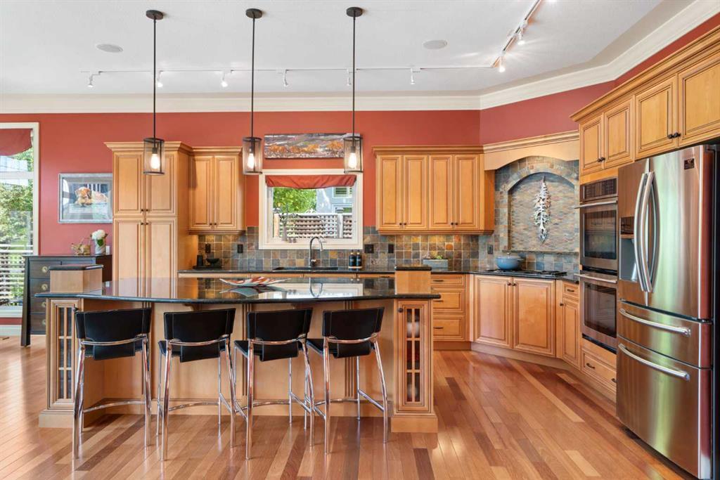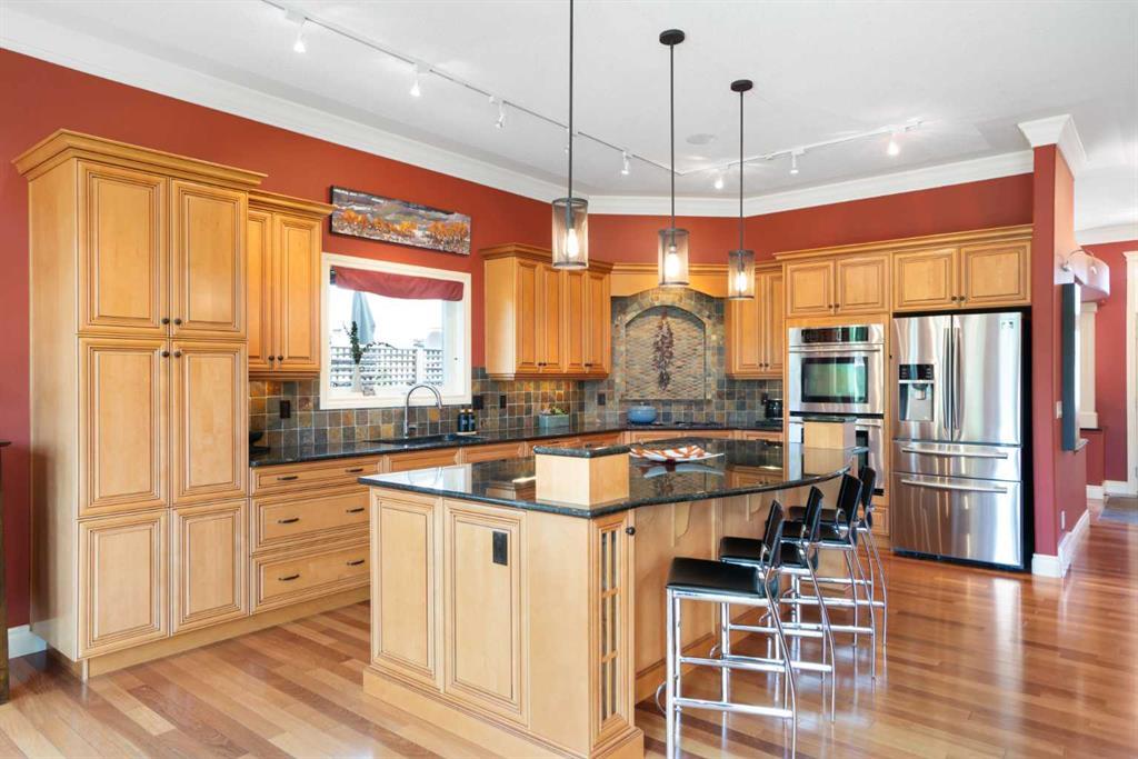 Welcome to this spectacular bungalow nestled in the desirable Evercreek Bluffs. As you step inside, prepare to be captivated by the meticulously maintained property that exudes elegance and charm. The open concept floor plan seamlessly combines spaciousness and functionality, creating the perfect setting for entertaining family and friends. Rich hardwood floors greet you, extending throughout , while the impressive 10' ceilings adorned with detailed crown mouldings add a touch of grandeur. The heart of this home lies in its thoughtfully designed kitchen, a true haven for culinary enthusiasts. Immerse yourself in the beauty of the exquisite granite countertops, perfectly complemented by stainless steel appliances, including newer refrigerator. The expansive kitchen island provides ample space for meal preparation, and the abundance of storage ensures easy access to all your cooking essentials. Relax and unwind in the impressive family room, where a stunning gas fireplace creates a warm and inviting atmosphere. Oversized south-facing windows flood the room with natural sunlight, seamlessly connecting the indoor and outdoor living spaces. The primary bedroom offers a sanctuary of luxury, boasting a spacious walk-in closet and a spa-like 5-piece ensuite. Indulge in ultimate relaxation and rejuvenation in this private retreat. Completing the main level is a versatile dining room that can easily be transformed into a home office or den, catering to your specific needs. Conveniently located off the large heated triple garage, you'll find a well-designed laundry/mud room equipped with Miele machines, adding functionality and practicality to your everyday living. The lower level of this home showcases two generous bedrooms, providing ample space for family or guests. Create your own first-class movie experience in this wired movie/theatre room, delivering top-notch entertainment. The impressively large recreation room with a wet bar offers endless possibilities for relaxatio n and entertainment. Additionally, a pristine storage room ensures organization and tidiness. Step outside into the backyard oasis, where you can host gatherings and create lasting memories. This exceptional property goes above and beyond with an outdoor kitchen, complete with a built-in BBQ, allowing you to fully enjoy outdoor culinary delights. The expansive patio sets the stage for leisurely moments, enveloped by the tranquil ambiance of the surrounding walking paths. Additional gas hook ups are set up ready for your gas fire table. This home is conveniently located just steps away from the breathtaking Fish Creek Park, boasting an extensive network of walking paths. Immerse yourself in nature's beauty as you embark on leisurely strolls, invigorating jogs, or bike rides amidst the picturesque scenery. This home has been cherished by its owners and presents a rare find in today's market. Don't miss the opportunity to make it yours! (id:22211)