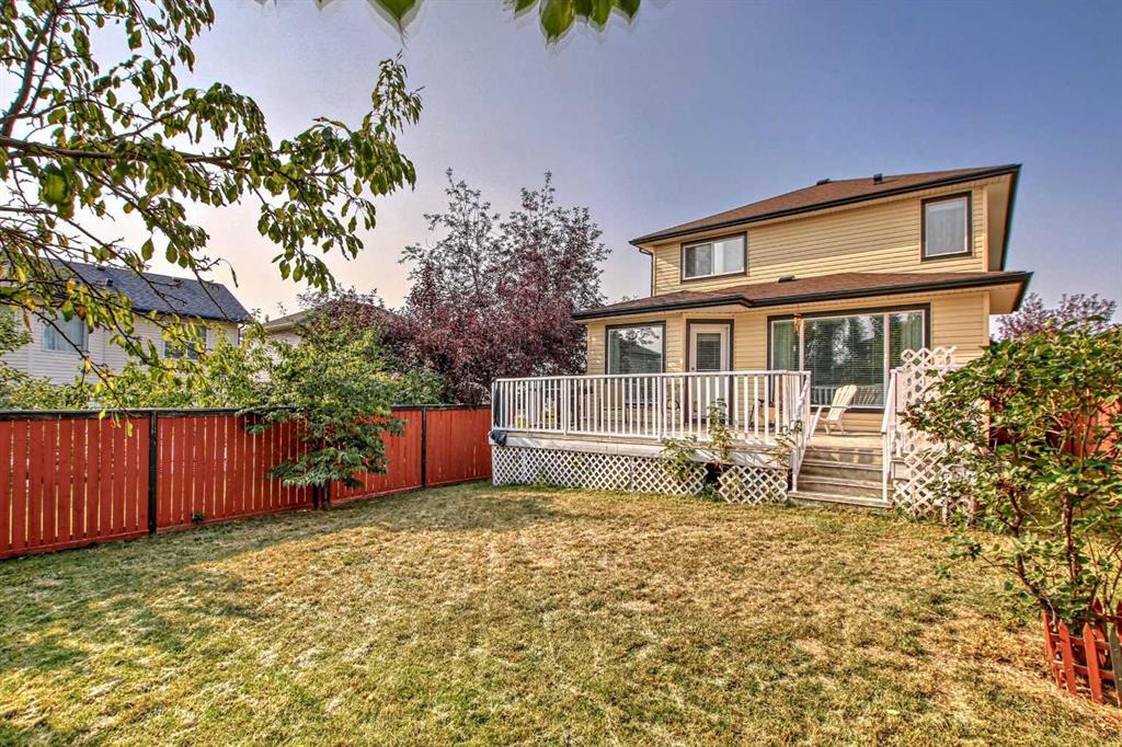 BEAUTIFUL family home located in a quiet cut-de-sac, close to schools, shopping, pathways, playgrounds and restaurants. Minutes to Fish Creek Park and easy access to Stoney Trail. Featuring 3 bedrooms and 2.5 bathrooms, this home comes with air-conditioning, new roof & siding (fall 2020), and double attached, insulated garage. Large entryway welcomes you into the open plan living room-dining-kitchen area, with an abundance of natural light. Beautiful corner fireplace and gorgeous laminate flooring in the living room. Enjoy these summer days in your South backyard, surrounded by mature trees, or entertain on your large vinyl deck. Laundry room and 2-piece bathroom complete the main level. A great size primary bedroom upstairs, with a well appointed ensuite, separate tub and shower, and a good size walk in closet. Two more bedrooms and another 4-piece bathroom make this home the ideal choice for families. Unspoiled basement with 3 windows and a cold room. This is a true gem, in a perfect location. Book your viewing today and make this beautiful home your own. (id:22211)
