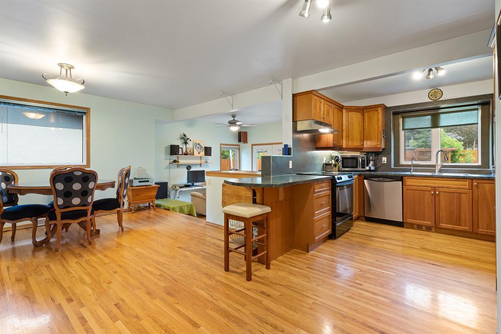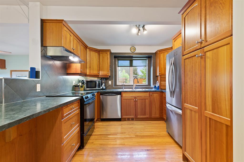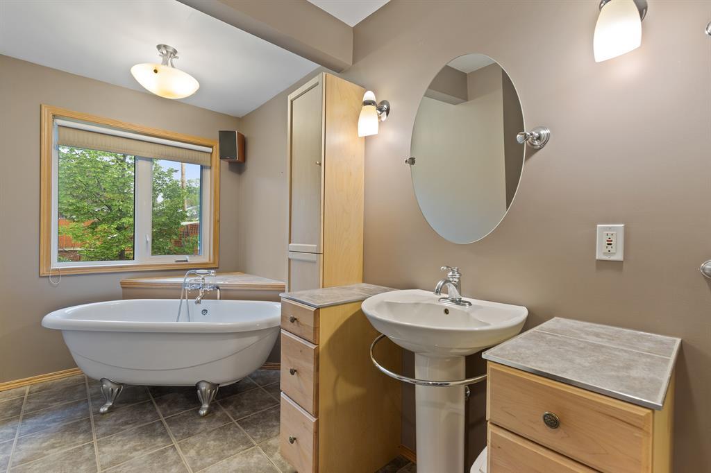 Welcome to this lovely bungalow home with + 2,156 total SQFT, 2 bedrooms on main level, 2 full bathrooms, huge rec room in basement, various UPGRADES including NEW ROOF (2022) & located in the great community of Glendale - close to parks, amenities, grocery stores and schools! This home offers a great curb appeal with a nice stone patio and mature trees, welcoming you in! As you enter, the living room is inviting and finished with light hardwood flooring and a large window overlooking the front yard to brighten the space - the perfect spot for lounging with family & friends! The living room leads into the dining room with enough space for a formal table and the kitchen which is elegantly finished with rich wooden shaker style cabinetry w/silver hardware, a dual basin sink, tile backsplash, plenty of storage space, breakfast bar & a stainless steel appliance package including a french door fridge with bottom freezer, electric cooktop with over the range hood fan, built-in dishwasher, and microwave! Just off the kitchen, you have a step-down private nook with doors leading onto the rear patio - customizable to your liking and great as a home office or extra family space! The main level also offers a good-sized primary master with great windows and closet, plus an additional bedroom and 4 pc bathroom with stone surround glass shower, free-standing soaking tub and built-in cabinetry! The basement of this home is exceptional in that it features a huge rec/bonus room, home office (could be used as a bedroom), 3pc bathroom with stand-alone glass shower, plenty of storage space and & side-by-side washer and dryer in the utility room! The backyard is nicely landscaped with a firepit, additional storage shed, stonework paths with stone patio, gardens and leads into the back alley for easy access to parking! Located in the vibrant community of Glendale & just minutes from various parks, and amenities, this home is a MUST SEE! Don't miss out and book your private showing today! ! (id:22211)