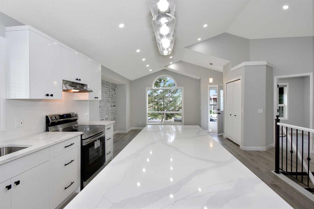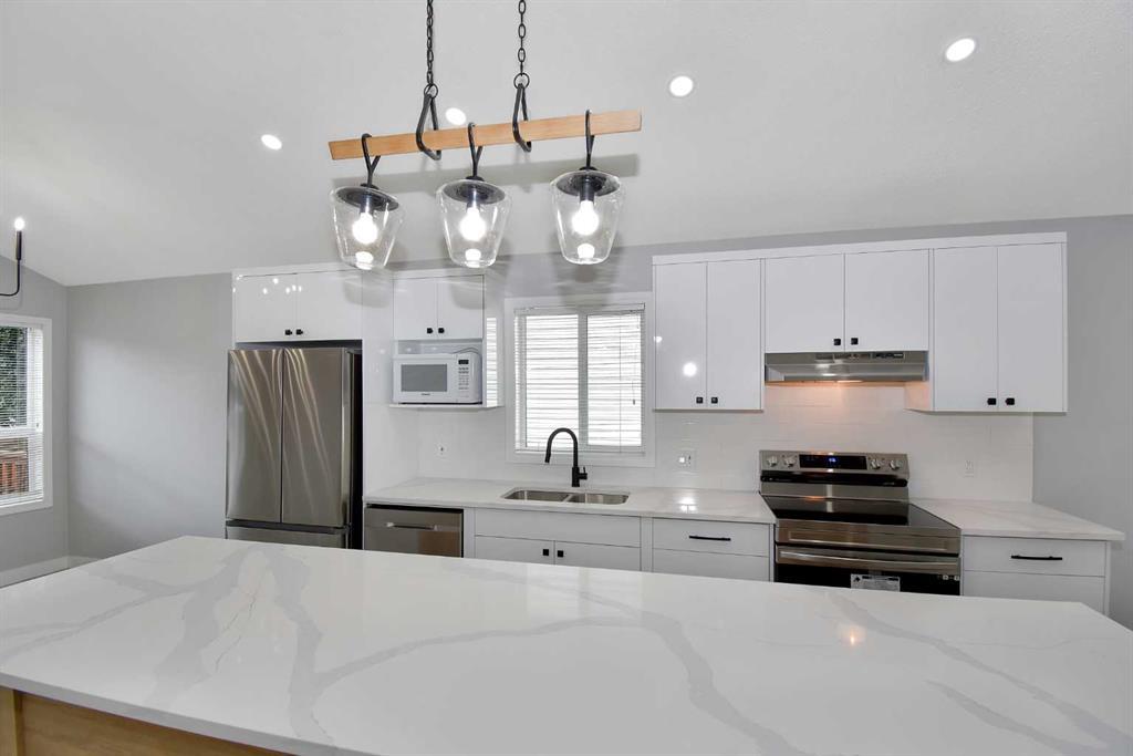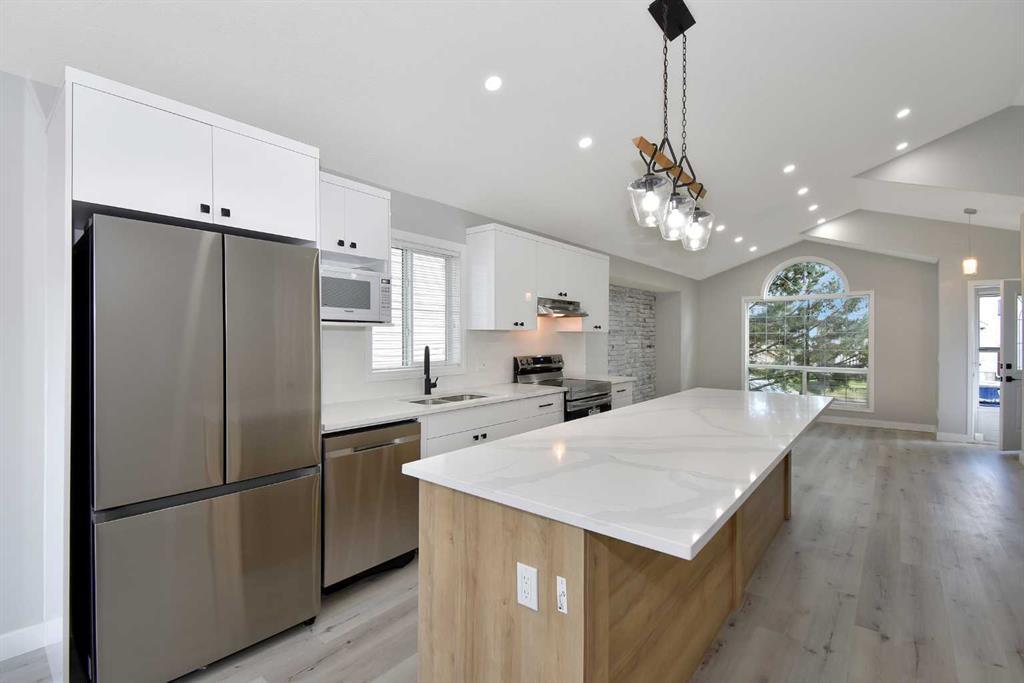 This is your chance to own a stunning, fully finished, open concept bungalow in the sought-after Somerset community. This modern home has been renovated with high-quality materials and finishes, such as luxury waterproof vinyl plank flooring, superior cabinetry, quartz countertops, elegant light fixtures, brand new stainless steel appliances, designer paint, and extravagant backsplash. The main floor features vaulted ceilings and offers two spacious bedrooms, a full bathroom, and a bright living room that flows into the kitchen and dining area. The lower level has two more bedrooms, a full bathroom, and a large rec room that can accommodate your family’s needs. The backyard is a private oasis, with a deck, and a double wide oversized garage that can fit two cars and provide extra storage. This home is conveniently located within walking distance to the water park, the C-train, schools, shopping, and the YMCA. Don’t miss this opportunity to move into this turn-key home! (id:22211)