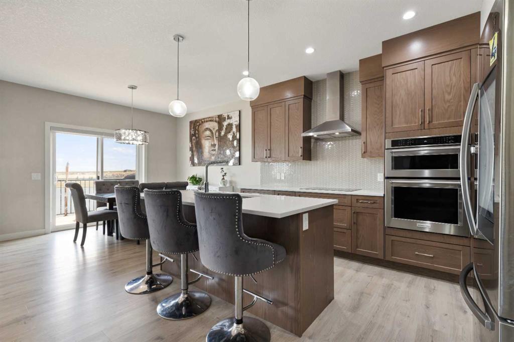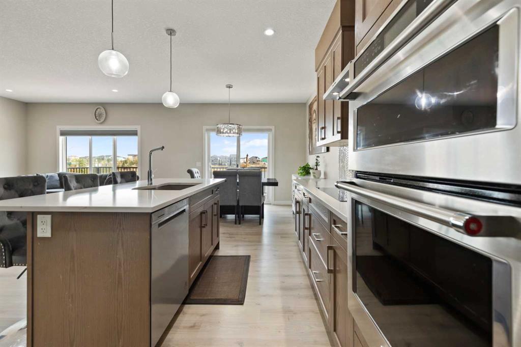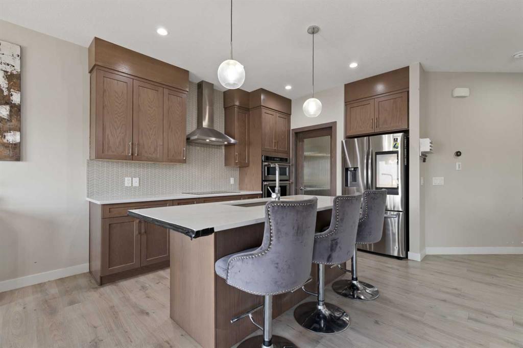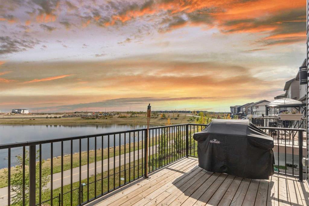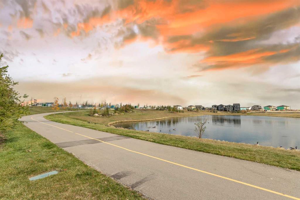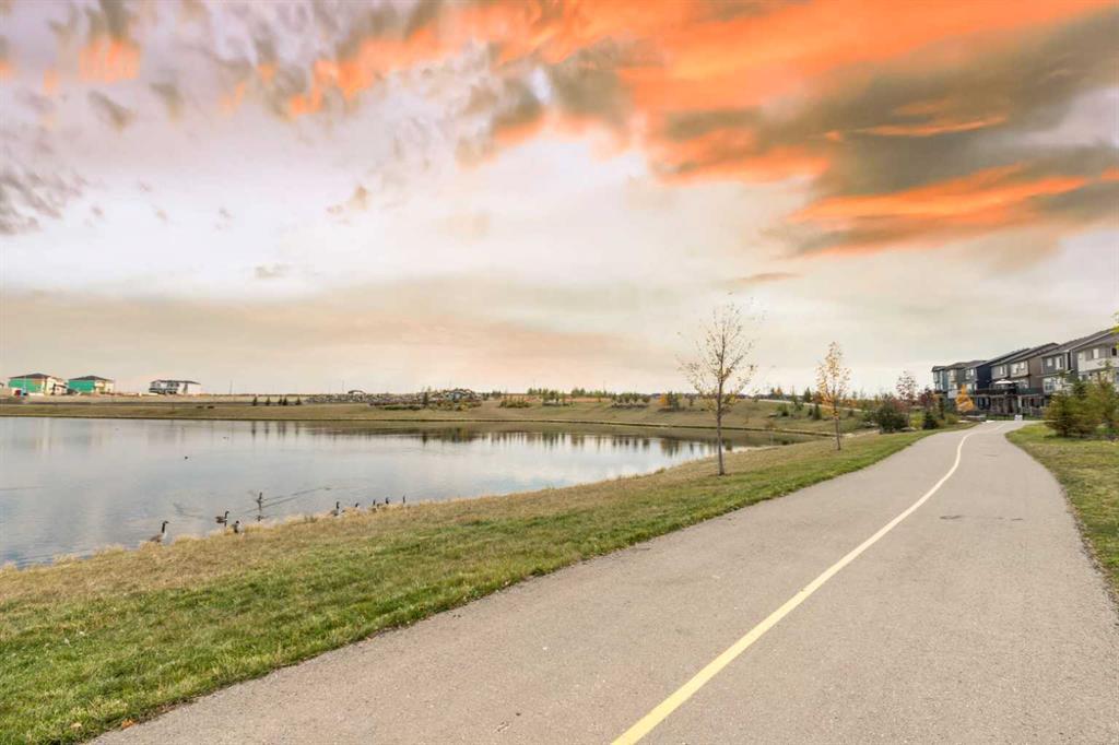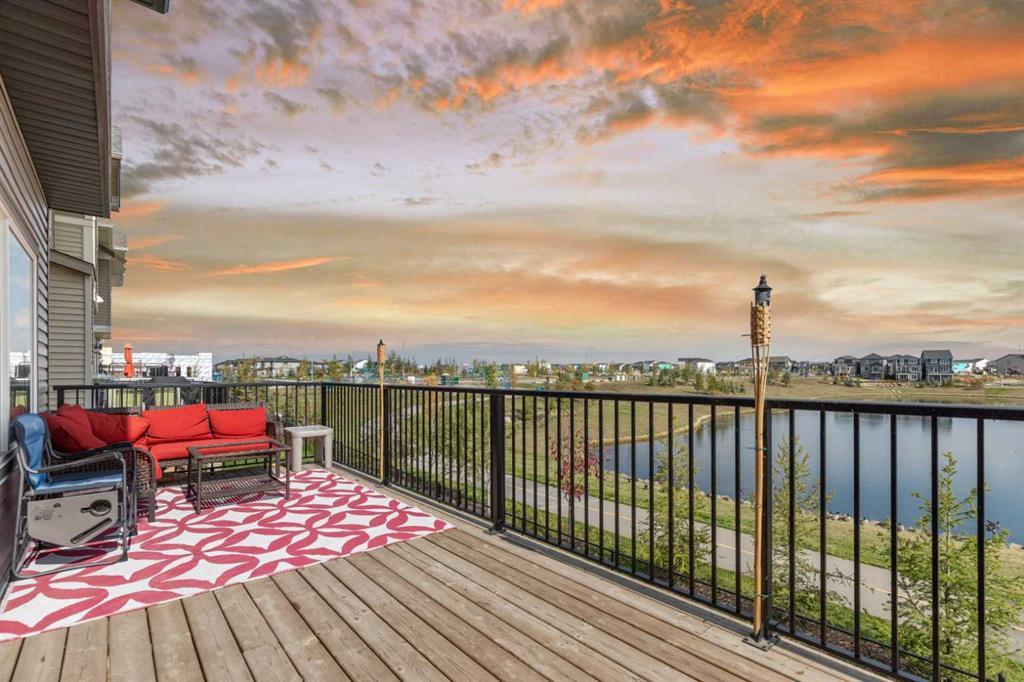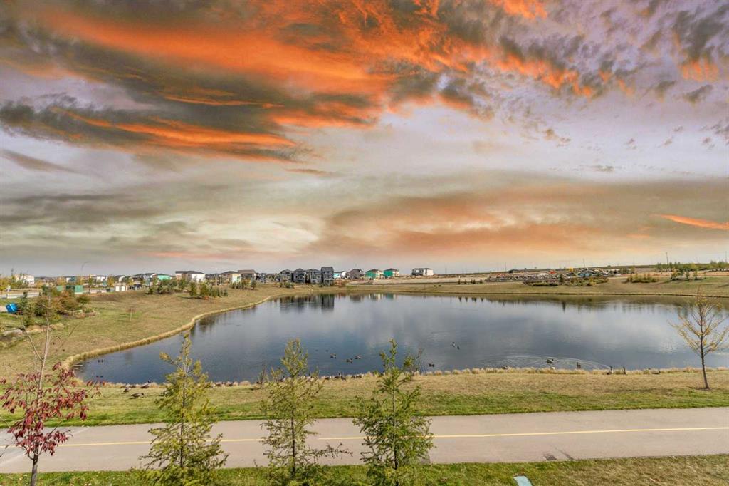 Welcome to this stunning LIKE-NEW WALK-OUT CARDEL BUILT Home with over 2,600+ sqft of living space backing onto beautiful POND views and PAVED BIKE TRAIL. Upon entrance the Open Concept main floor with 9ft ceilings throughout welcomes you with a modern fresh Living area, main floor bedroom with a Large walk-in-closet and a full bathroom, later hallway takes you to Big Bright family room with a centered fireplace with elegant tiles ready for cozying up during the cold winter, and flows into a captivating Open Plan luxurious Kitchen with all top of the line built-in stainless steel appliances including electric cooktop, large island with quartz countertops, ceilings high cabinetry, spice kitchen which also comes with a gas cooktop, large designated dining area with an adjacent door leading to a large deck for year-round entertainment with breath-taking unobstructed views. The upper level offers 4 LARGE BEDROOMS boasting an incredible master suite with a luxurious spa, secondary master suite, 2 more good sized bedrooms with a full bathroom, open and bright bonus room and laundry room completes the upper level. The Lower level has a convenient WALKOUT entrance in unfinished basement and is awaiting your personal & creative touches (future bathroom rough-in has been done). Large Double attached garage and is in close proximity to all the amenities you will ever need. You do not want to miss this opportunity. Kindly arrange your private viewing today with best realtors in Calgary. You will be glad you did! (id:22211)