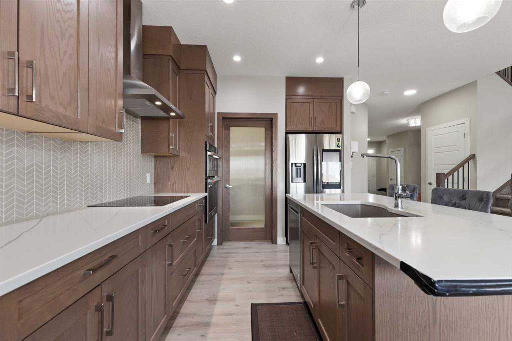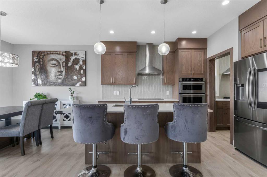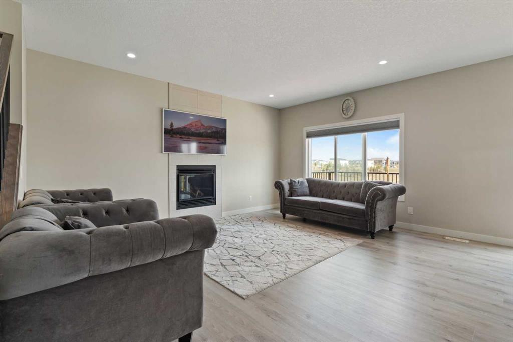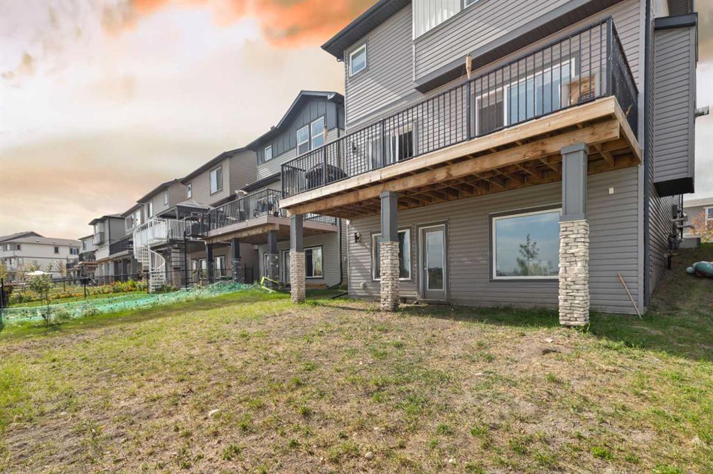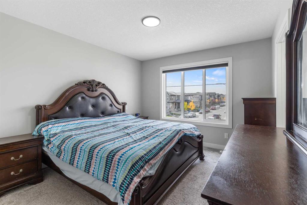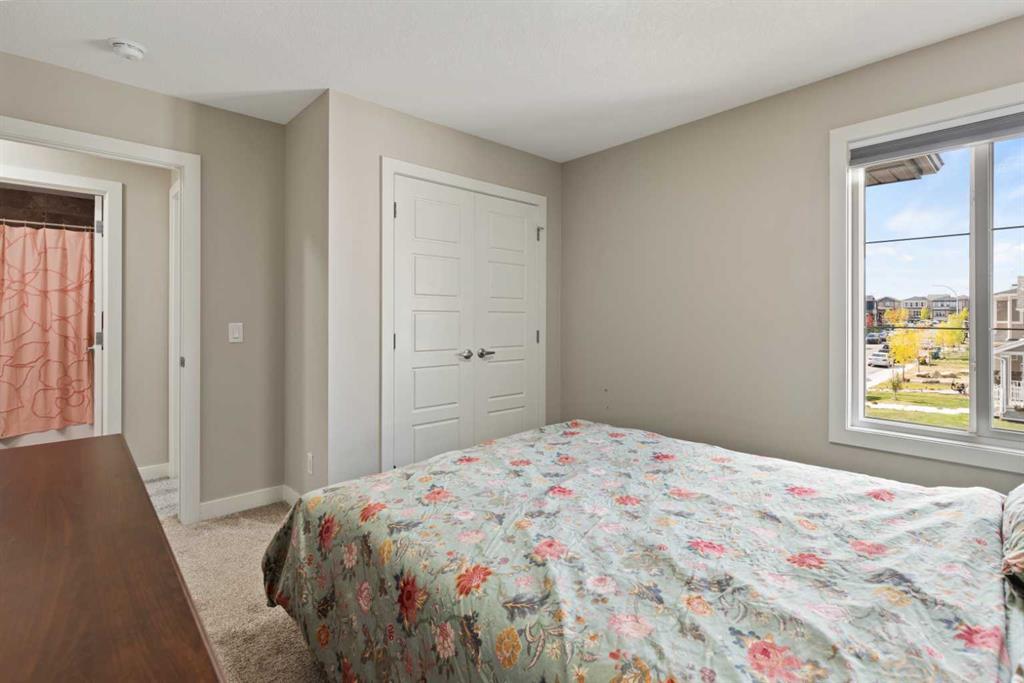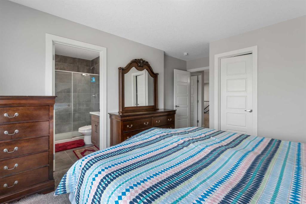 Welcome to this stunning LIKE-NEW WALK-OUT CARDEL BUILT Home with over 2,600+ sqft of living space backing onto beautiful POND views and PAVED BIKE TRAIL. Upon entrance the Open Concept main floor with 9ft ceilings throughout welcomes you with a modern fresh Living area, main floor bedroom with a Large walk-in-closet and a full bathroom, later hallway takes you to Big Bright family room with a centered fireplace with elegant tiles ready for cozying up during the cold winter, and flows into a captivating Open Plan luxurious Kitchen with all top of the line built-in stainless steel appliances including electric cooktop, large island with quartz countertops, ceilings high cabinetry, spice kitchen which also comes with a gas cooktop, large designated dining area with an adjacent door leading to a large deck for year-round entertainment with breath-taking unobstructed views. The upper level offers 4 LARGE BEDROOMS boasting an incredible master suite with a luxurious spa, secondary master suite, 2 more good sized bedrooms with a full bathroom, open and bright bonus room and laundry room completes the upper level. The Lower level has a convenient WALKOUT entrance in unfinished basement and is awaiting your personal & creative touches (future bathroom rough-in has been done). Large Double attached garage and is in close proximity to all the amenities you will ever need. You do not want to miss this opportunity. Kindly arrange your private viewing today with best realtors in Calgary. You will be glad you did! (id:22211)