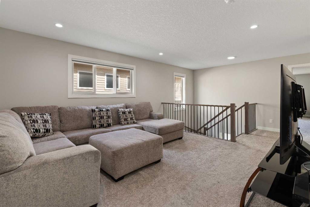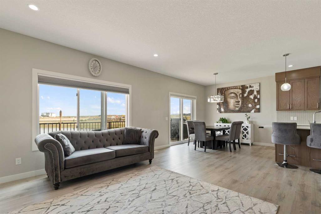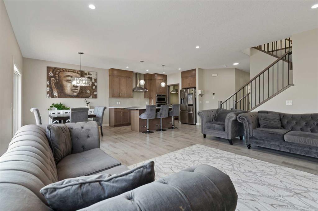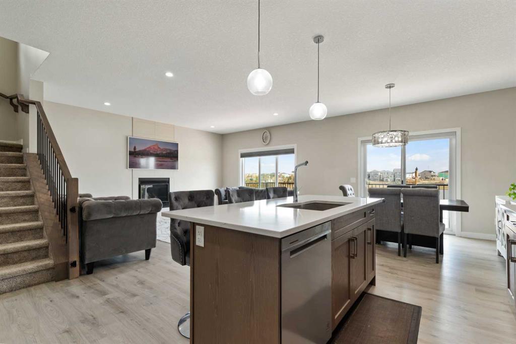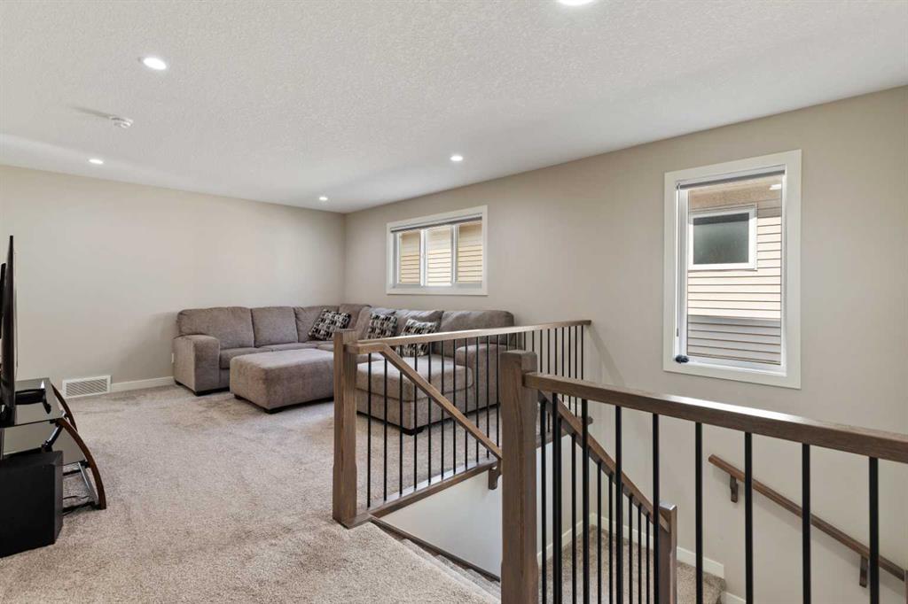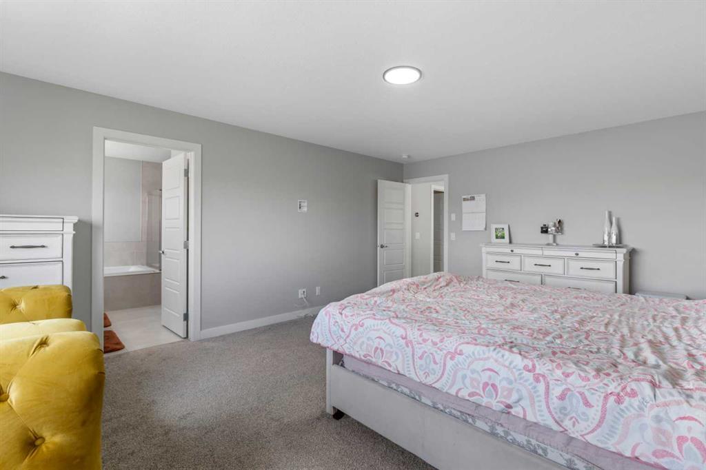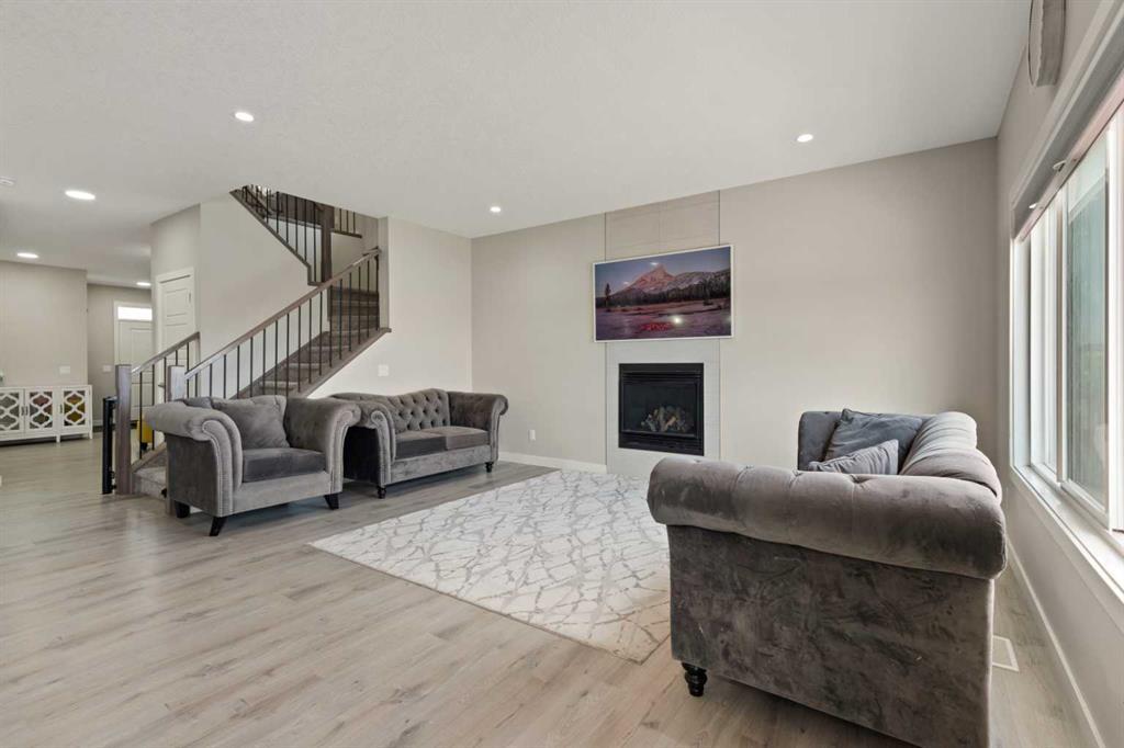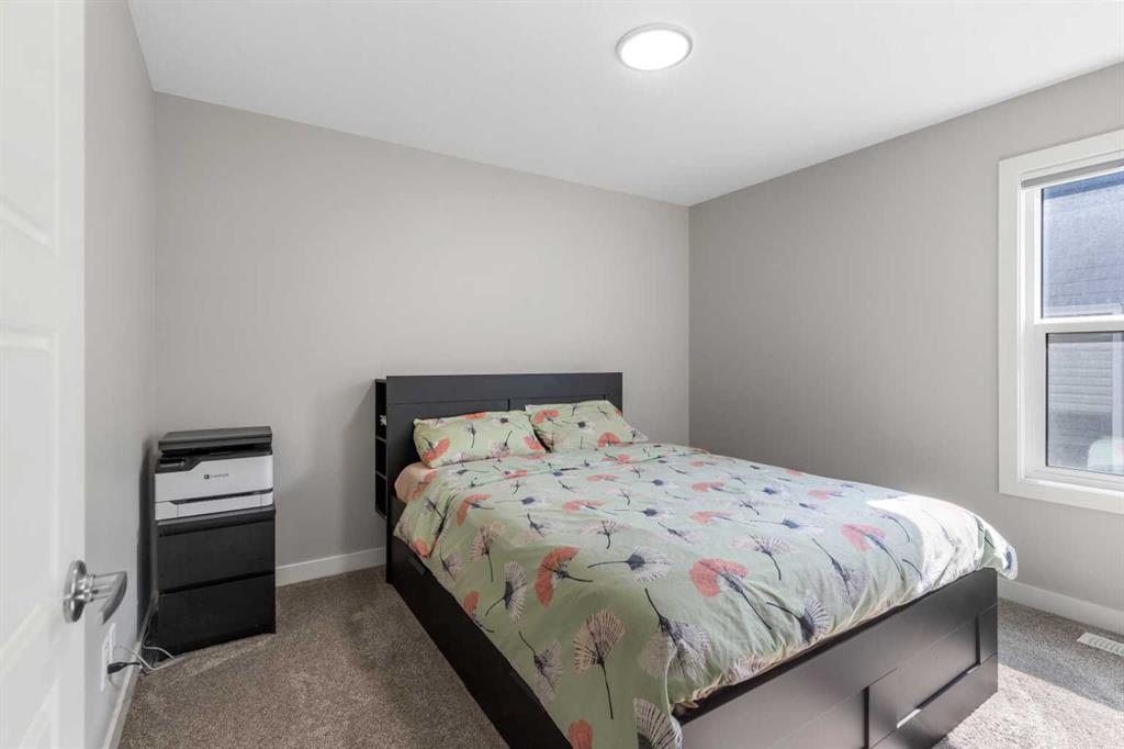 Welcome to this stunning LIKE-NEW WALK-OUT CARDEL BUILT Home with over 2,600+ sqft of living space backing onto beautiful POND views and PAVED BIKE TRAIL. Upon entrance the Open Concept main floor with 9ft ceilings throughout welcomes you with a modern fresh Living area, main floor bedroom with a Large walk-in-closet and a full bathroom, later hallway takes you to Big Bright family room with a centered fireplace with elegant tiles ready for cozying up during the cold winter, and flows into a captivating Open Plan luxurious Kitchen with all top of the line built-in stainless steel appliances including electric cooktop, large island with quartz countertops, ceilings high cabinetry, spice kitchen which also comes with a gas cooktop, large designated dining area with an adjacent door leading to a large deck for year-round entertainment with breath-taking unobstructed views. The upper level offers 4 LARGE BEDROOMS boasting an incredible master suite with a luxurious spa, secondary master suite, 2 more good sized bedrooms with a full bathroom, open and bright bonus room and laundry room completes the upper level. The Lower level has a convenient WALKOUT entrance in unfinished basement and is awaiting your personal & creative touches (future bathroom rough-in has been done). Large Double attached garage and is in close proximity to all the amenities you will ever need. You do not want to miss this opportunity. Kindly arrange your private viewing today with best realtors in Calgary. You will be glad you did! (id:22211)