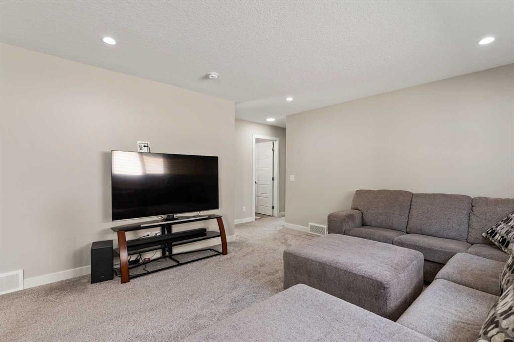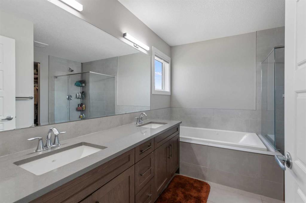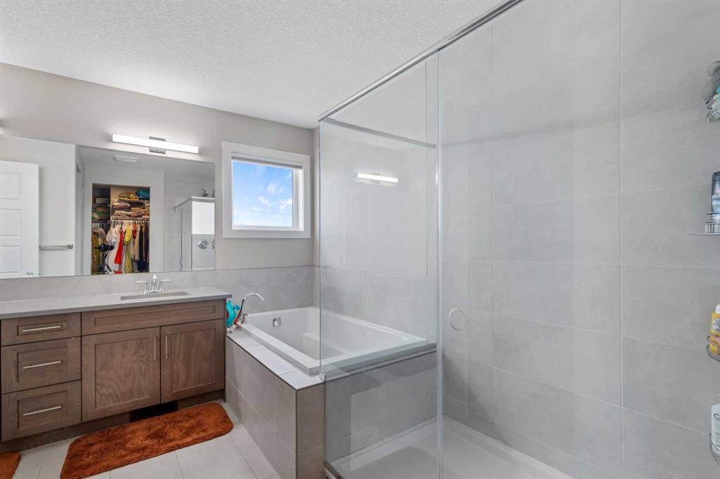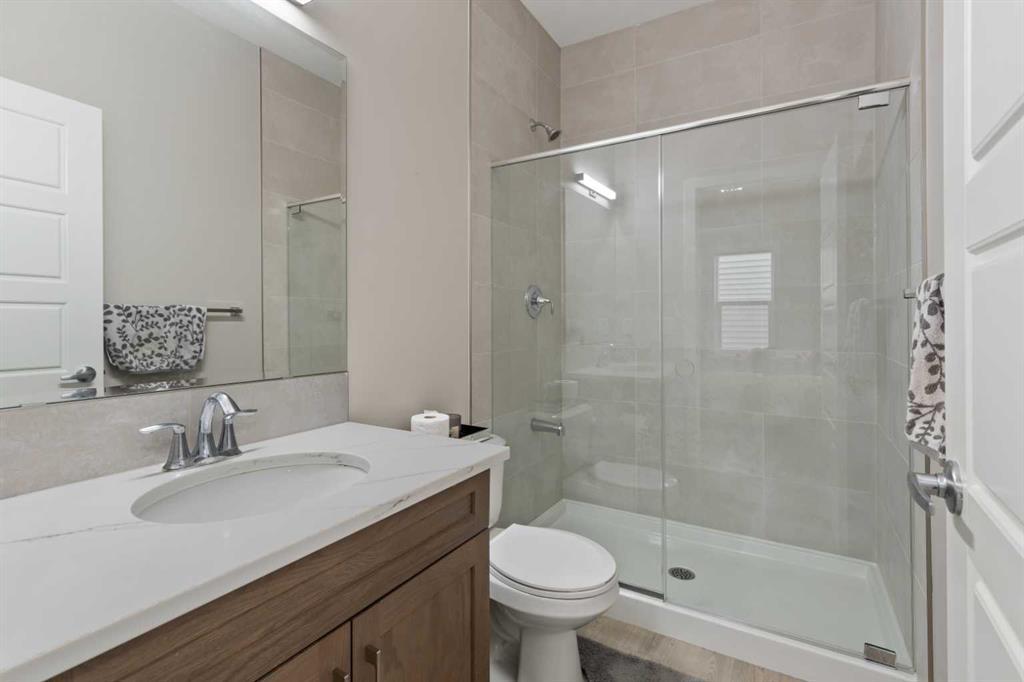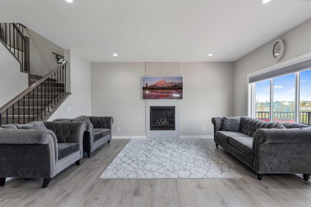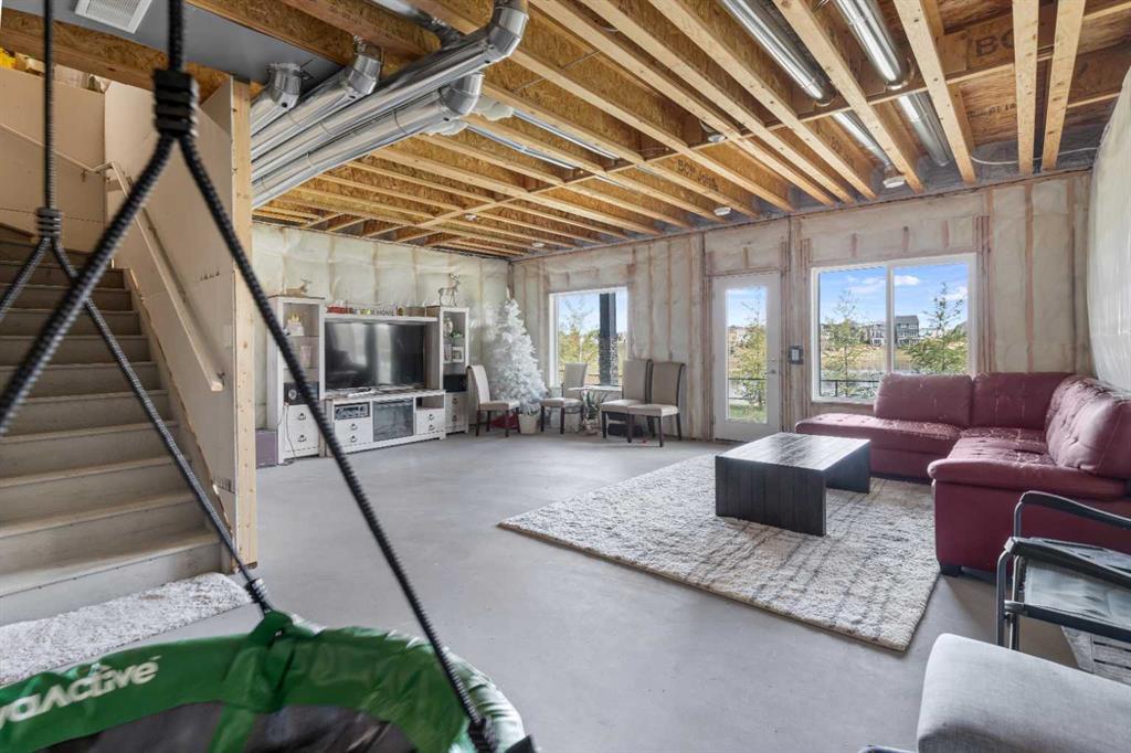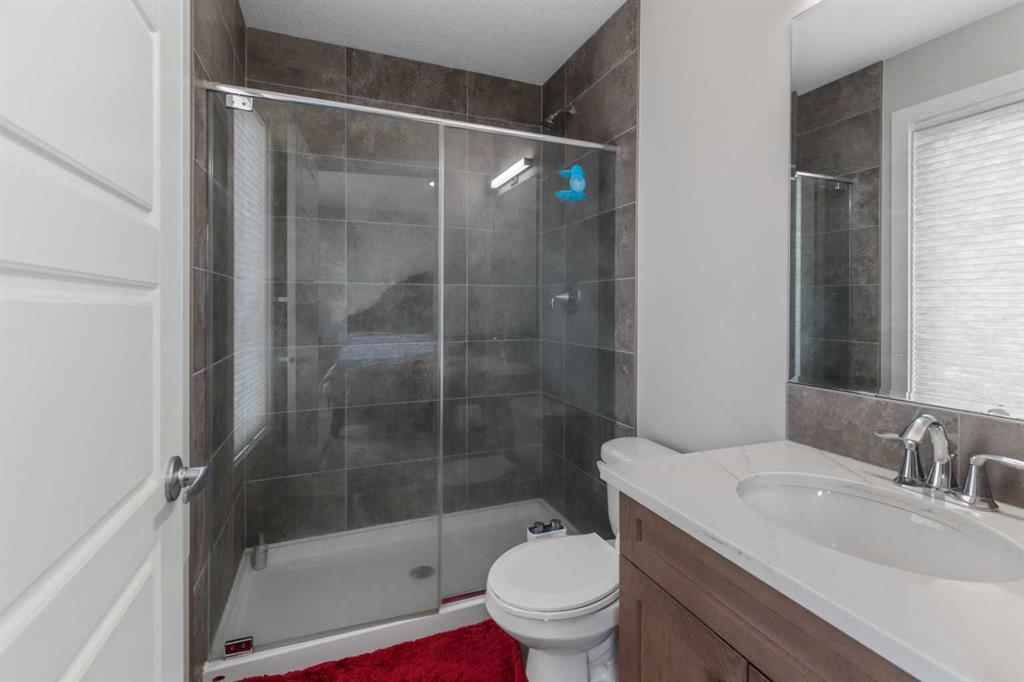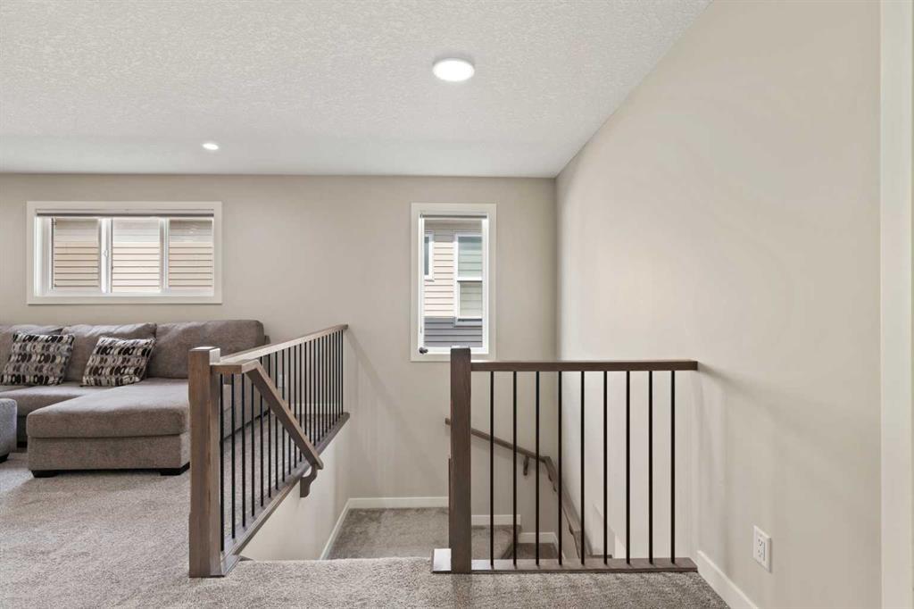 Welcome to this stunning LIKE-NEW WALK-OUT CARDEL BUILT Home with over 2,600+ sqft of living space backing onto beautiful POND views and PAVED BIKE TRAIL. Upon entrance the Open Concept main floor with 9ft ceilings throughout welcomes you with a modern fresh Living area, main floor bedroom with a Large walk-in-closet and a full bathroom, later hallway takes you to Big Bright family room with a centered fireplace with elegant tiles ready for cozying up during the cold winter, and flows into a captivating Open Plan luxurious Kitchen with all top of the line built-in stainless steel appliances including electric cooktop, large island with quartz countertops, ceilings high cabinetry, spice kitchen which also comes with a gas cooktop, large designated dining area with an adjacent door leading to a large deck for year-round entertainment with breath-taking unobstructed views. The upper level offers 4 LARGE BEDROOMS boasting an incredible master suite with a luxurious spa, secondary master suite, 2 more good sized bedrooms with a full bathroom, open and bright bonus room and laundry room completes the upper level. The Lower level has a convenient WALKOUT entrance in unfinished basement and is awaiting your personal & creative touches (future bathroom rough-in has been done). Large Double attached garage and is in close proximity to all the amenities you will ever need. You do not want to miss this opportunity. Kindly arrange your private viewing today with best realtors in Calgary. You will be glad you did! (id:22211)