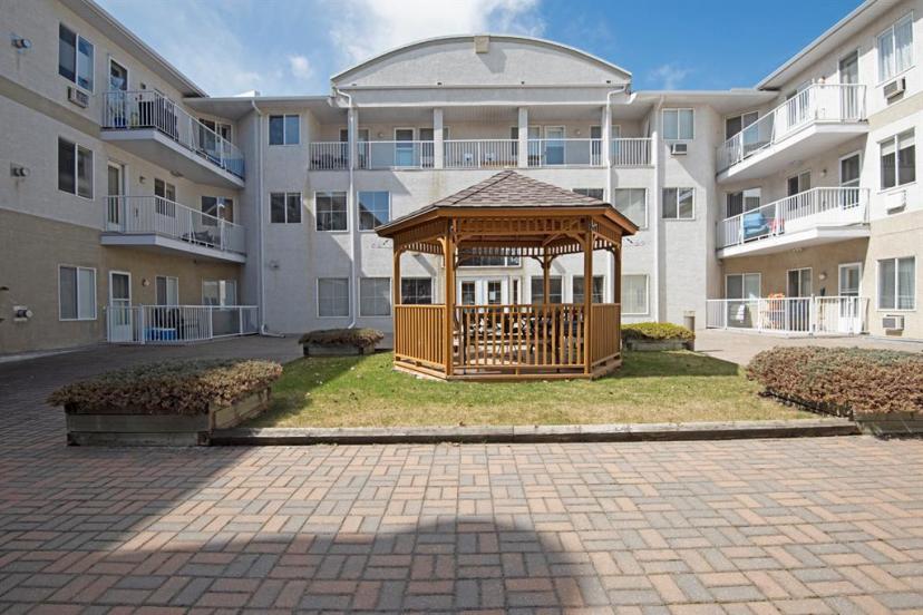 COME VIEW THE 3D TOUR & MORE! - Click on the Virtual Tour/Multimedia Button! Welcome to well maintained Glenmeadow Gardens, a splendid 55+ age restricted building with tremendous facilities and extremely well located for local shopping and with public transportation right outside the building! This updated 1,178 sf one (huge!) bedroom and den unit is the largest floorplan in the complex. As you enter, you'll find the kitchen on your left with soft closing cabinets, plenty of pan drawers and a stainless steel appliance package. There's plenty of food preparation space here. To the right of the entrance is the massive dining area with a chandelier light fixture. Laminate flooring runs through most of the unit including in the living room and spacious den that are ahead of you, beyond the dining area. The living room has a corner gas fireplace and both it and the den overlook the elegant courtyard with its communal gazebo. You can also step out to your large deck, with its gas BBQ outlet and enjoy the views from this quiet unit that is situated away from 51 Street. Along the passage, you'll find a mirrored coat closet and an adjacent storage/pantry unit, beyond which is a 3 pc bathroom, a laundry/storage room and the quite enormous primary bedroom, with its large walk-in closet and 4-pc en-suite bathroom. Being a second floor unit, you are very conveniently located for the main recreation facilities, which include exercise equipment, a pool table, shuffleboard, a library and comfortable seating. On the main level is a great social room with a huge kitchen to use for special events. From here, step out to the rear courtyard with its gazebo, patio and peaceful gardens. On the 3rd level is a huge west facing balcony to enjoy the views. Down in the heated parkade are several storage rooms, each with very generously proportioned storage cages. This wonderful development even has two guest suites for hire for when friends want to come and stay! Contact your favourite Realtor , book a showing and make it yours! (id:22211)