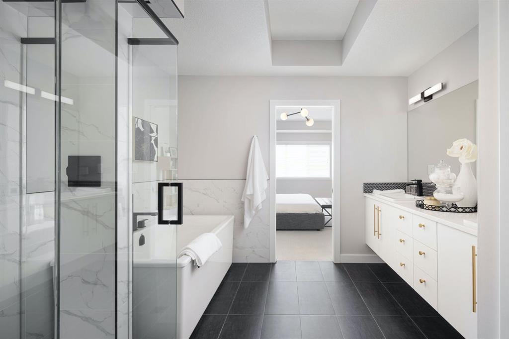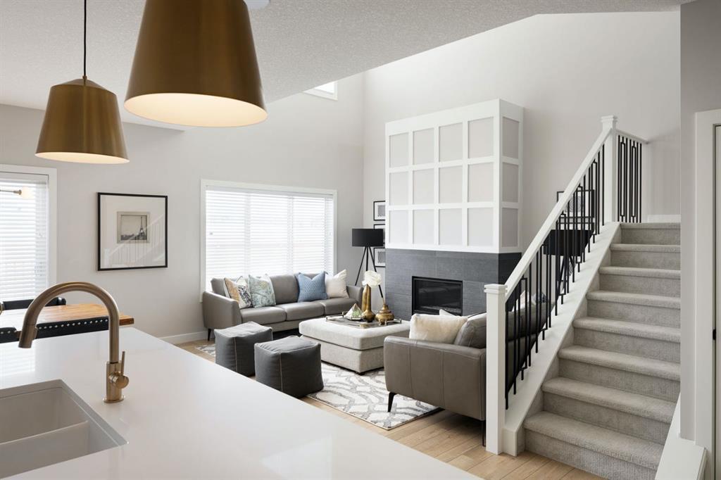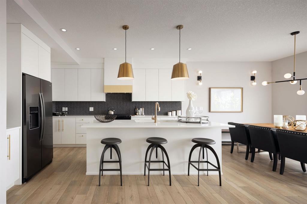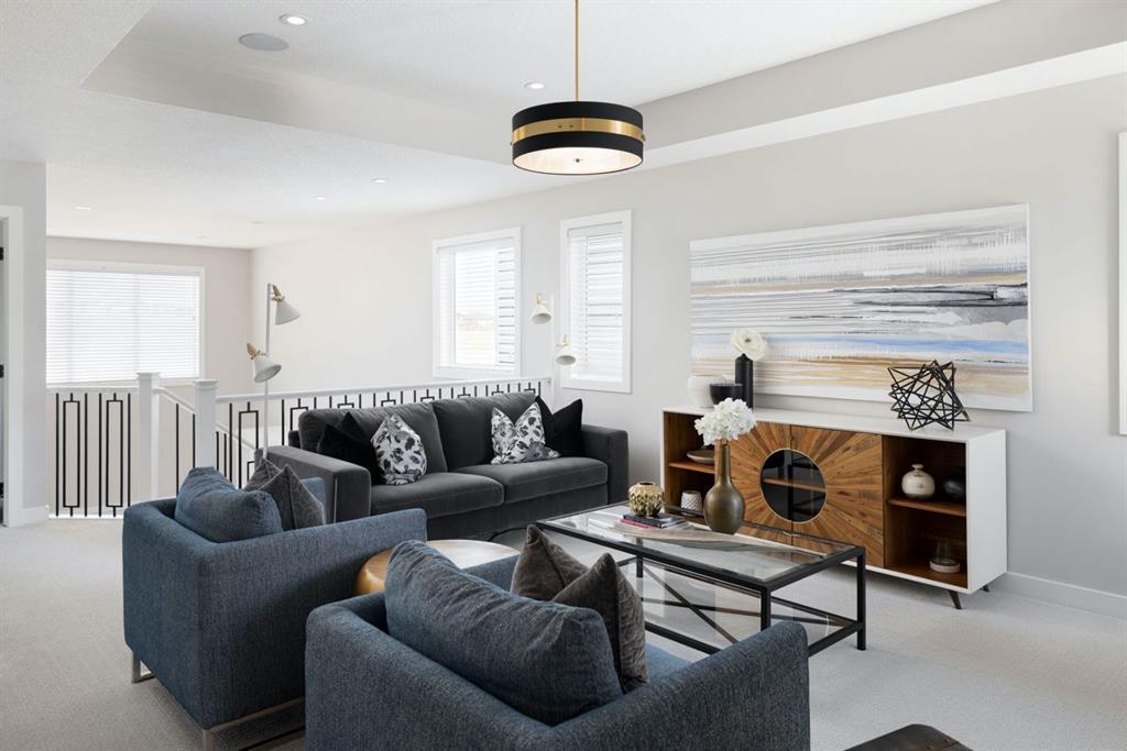 TRUMAN built home in the established community of Walden with easy access to Deerfoot, Stoney Trail, nearby Playgrounds, Pathways, Shopping and Schools. Step inside this 3 Bedroom Open Concept plan featuring a Bright Chef's Kitchen with Full Height Cabinetry, Soft Close Doors & Drawers, Eating Bar with Quartz Countertops, Stainless Steel Appliance package and Pantry opening to the Dining area and Great Room. The Main Floor features 9' Ceilings, LVP Flooring, Main Floor Den, 2 piece Bathroom, and Mudroom. Step upstairs to the Primary Suite with highlights such as a Tray Ceiling, 5 piece ensuite and Walk in Closet. The Upper Floor features a Central Bonus Room with Tray Ceiling, 2 additional Bedrooms, Full Bathroom and Laundry area. The unfinished Basement with Separate Side Entrance awaits your personal touch. This bright and airy TRUMAN home is currently Under Construction and will be completed this Fall! **Photo gallery of similar home** (id:22211)