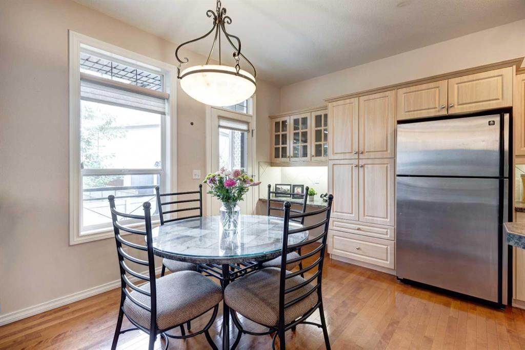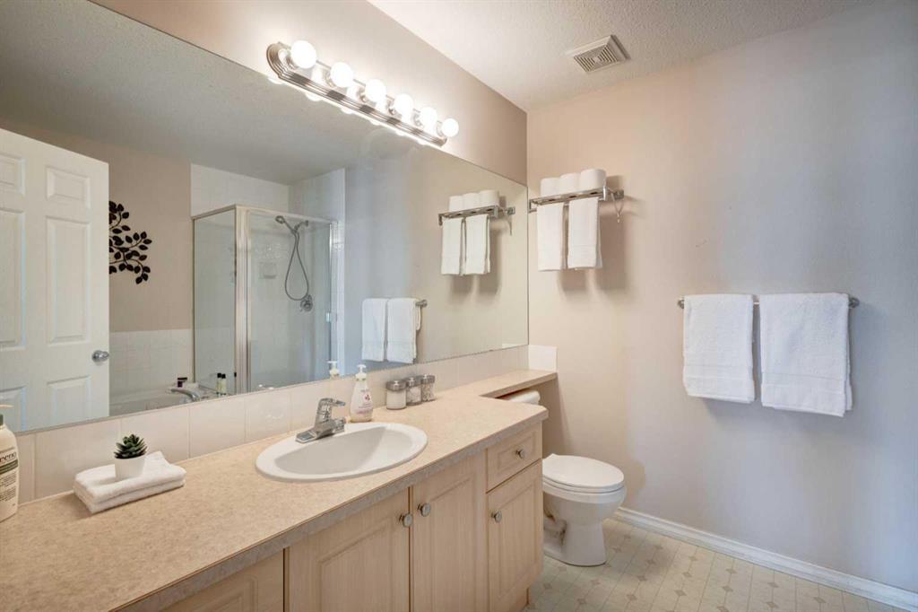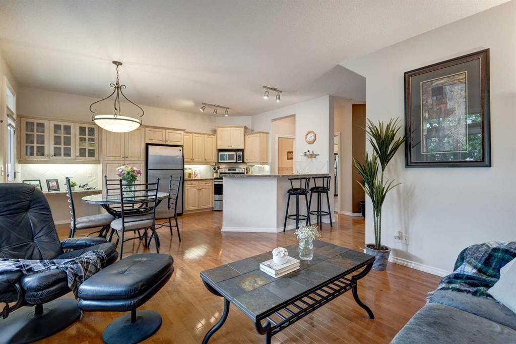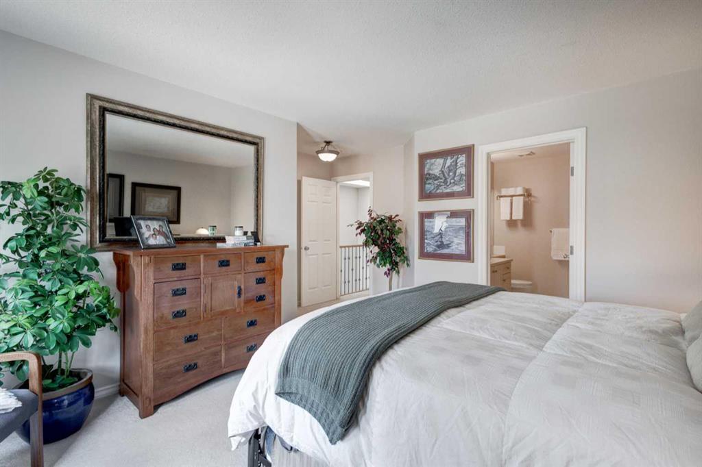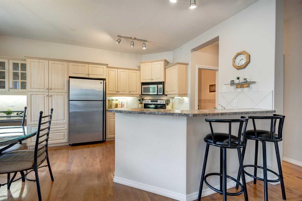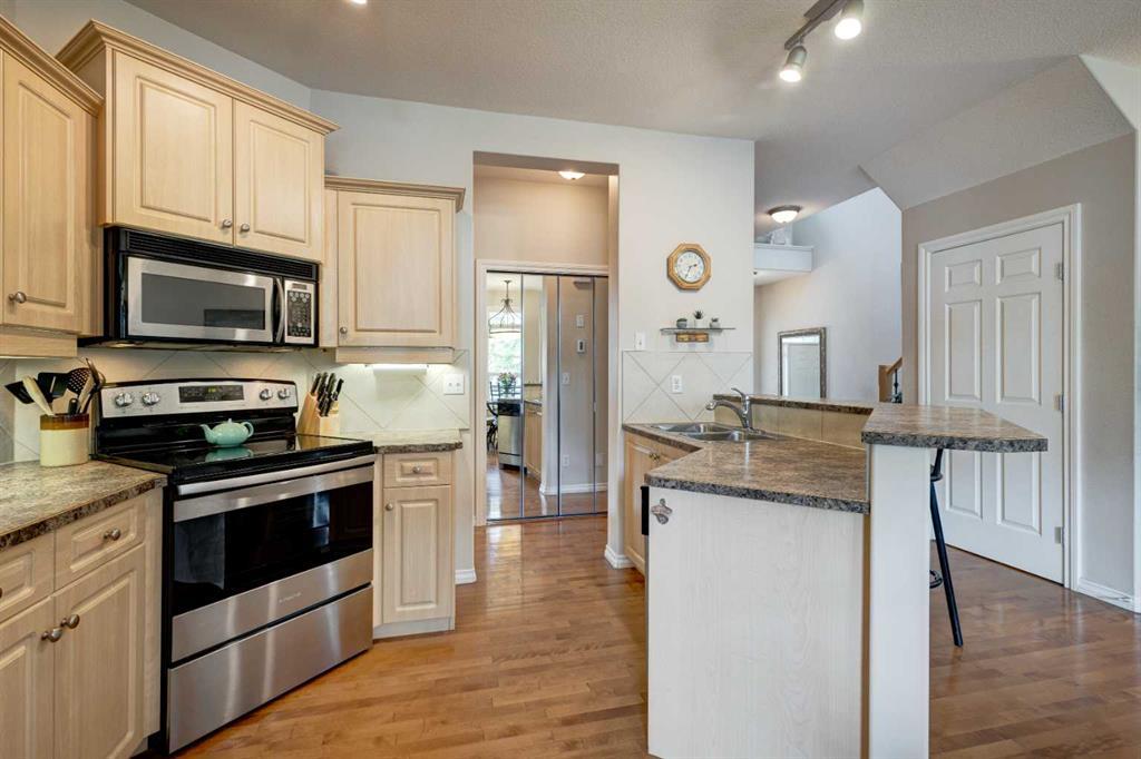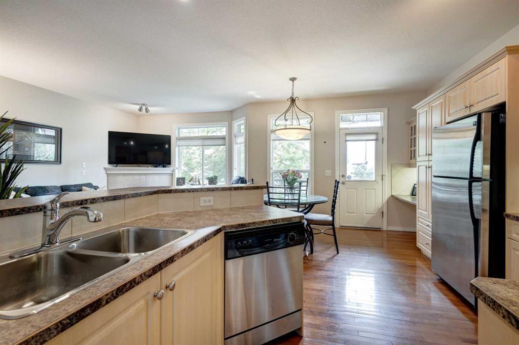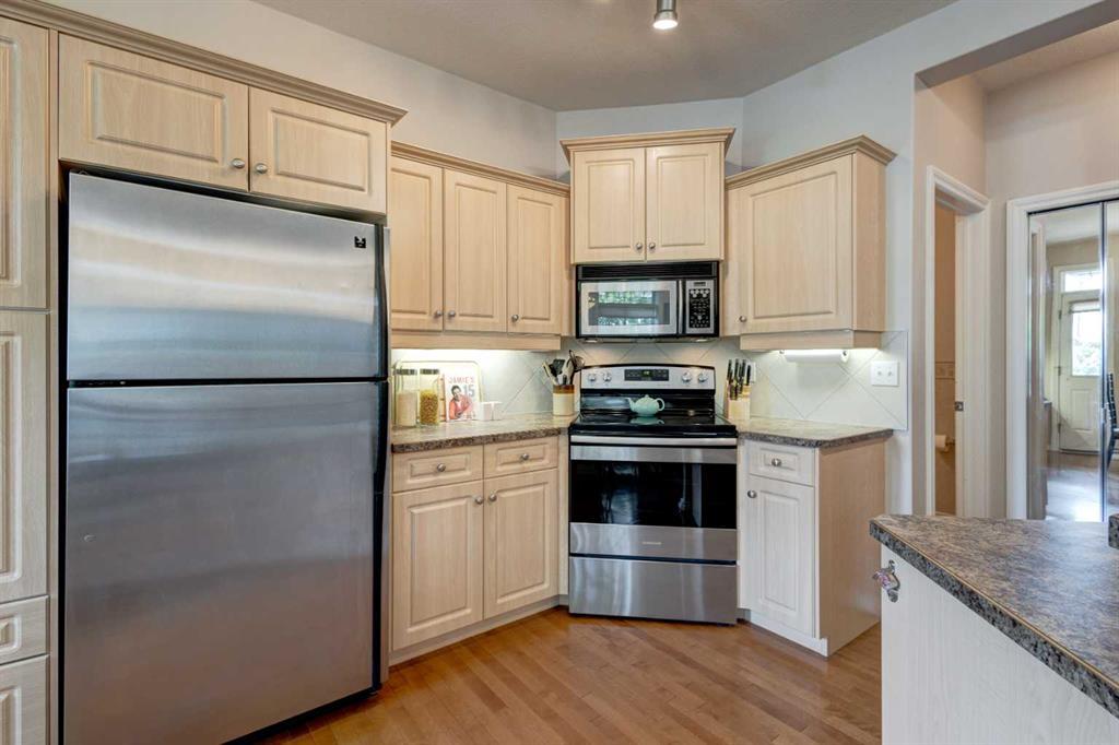 This Wentworth townhome has it all with 3 bedrooms, 3 & 1/2 bathrooms, a DOUBLE attached garage, a FINISHED BASEMENT and fabulous location. On the main level you will find an OPEN floor plan with HARDWOOD floors, a gas FIREPLACE, a breakfast bar, a dining area and STAINLESS STEEL appliances. There is a convenient 2 piece bathroom and entry to your SOUTH facing deck with a gas BBQ included. The upper level has a generous sized primary bedroom, complete with a WALK-IN closet and a 4 piece ensuite bathroom. There are also 2 more bedrooms and a 4 piece family bath with laundry facilities. The lower level is finished with an L-shaped family room featuring lots of built-in cabinetry, a gas fireplace and a large storage closet. This home is ideally located close to schools and all the shopping amenities of 85th Street and Aspen Landing. (id:22211)