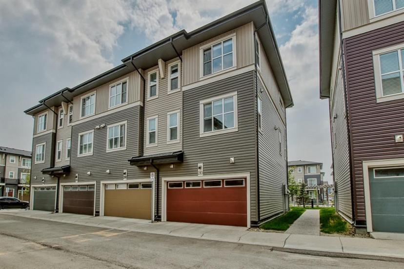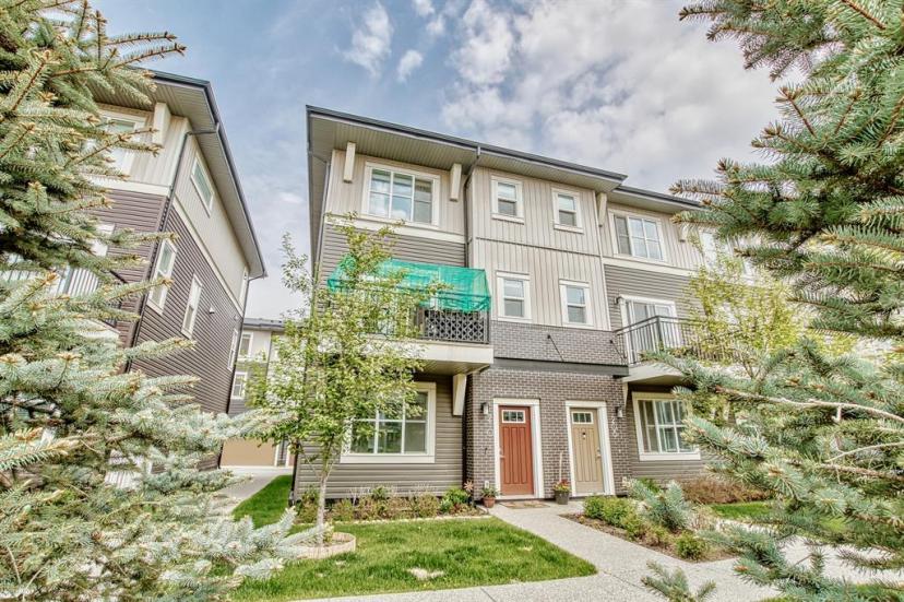 ~~ BACK to Market ~~ TAKE ADVANTAGE of this RARE OPPORTUNITY to own this MODERN and VERY CLEAN " CORNER TOWNHOME " built by Master Builder Truman Homes. With a total of almost 1,450 SQ FT., Comes with " 3 BEDROOMS ' + 2.5 BATHROOMS and a DEN that can turn into another EXTRA BEDROOM. This home deserves a viewing if you are in the market for COMFORTABLE LIVING ! Located in one of Calgary's NEW & DESIRABLE neighborhoods " CORNERSTONE " ! The main floor boasts a SPACIOUS front entrance with beautiful modern flooring, the Den and the HEATED DOUBLE CAR GARAGE ATTACHED with a built in shelving. The 2nd floor has a pleasant functional AESTHETIC SURROUNDED by BIG WINDOWS that gives an abundance of natural lighting and OPEN CONCEPT layout complimented by BEAUTIFUL FLOORINGS and 9' CEILINGS offering a feeling of SPACIOUSNESS. The Kitchen has everything you would expect in a home of this CALIBER, Offers: BRIGHT and MODERN CABINETS, QUARTZ COUNTERTOPS, NEW STAINLESS STEEL APPLIANCES PACKAGE, a Massive island that was designed with entertaining in mind. Adjacent is a GOOD SIZE DINING AREA + A Large Living Room with SLIDING PATIO DOOR that leads to an incredible SOUTH-FACING SPACIOUS balcony to enjoy your summer BBQs. Upstairs offers a large bright master bedroom ensuite that has tiles to the ceiling, easy for cleaning + a good sized walk in closet and a TRAY CEILING. The other 2 bedrooms share the 4 piece bath. Laundry is CONVENIENTLY LOCATED on the upper floor, so you don't need to carry your laundry up and down the stairs. Enjoy a relaxing stroll around the courtyard just outside your front door. Easy access to Stoney Trail and Deerfoot Trail. Close to the airport and Cross Iron Mall. This BEAUTY is truly unlike anything else you can find. BOOK your PRIVATE SHOWING NOW and BRING OFFERS, Before it's gone !!! (id:22211)