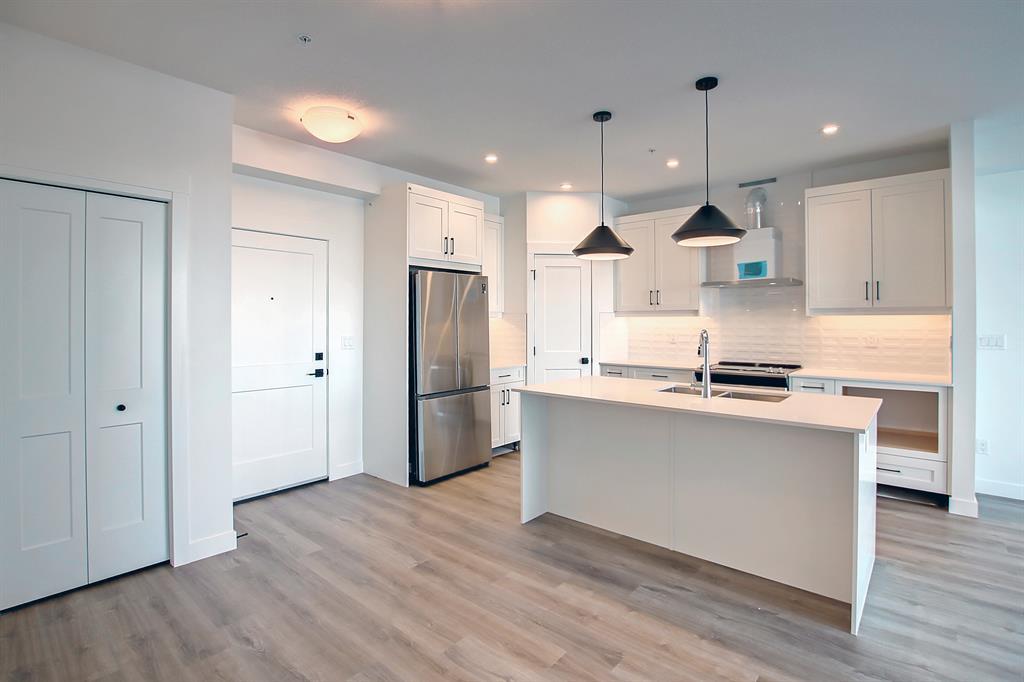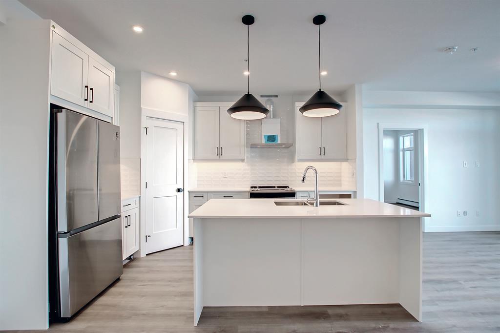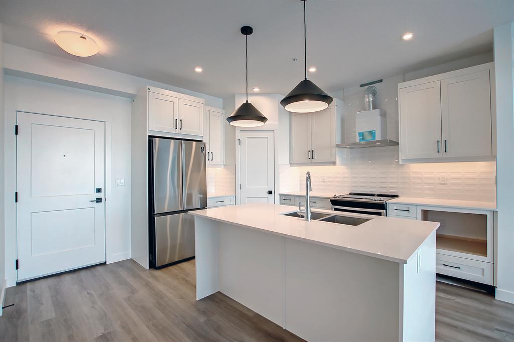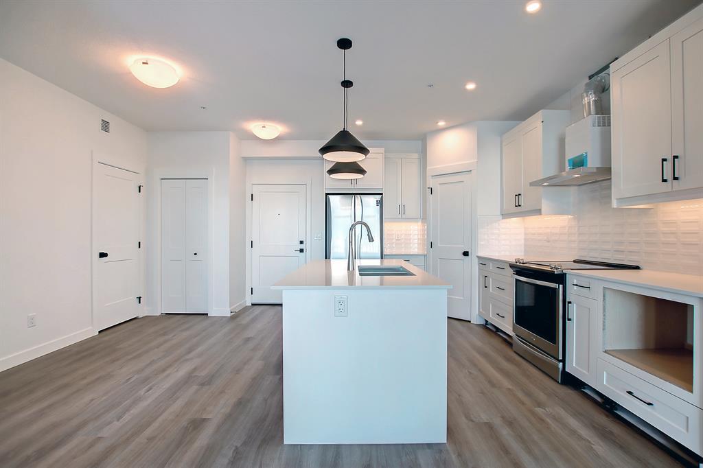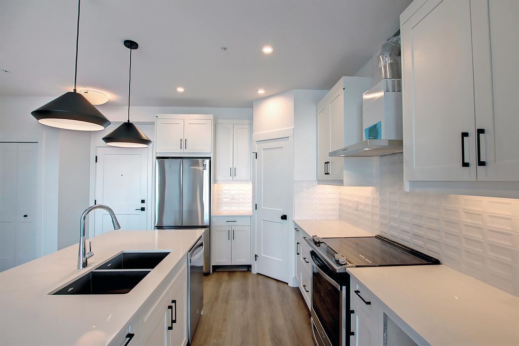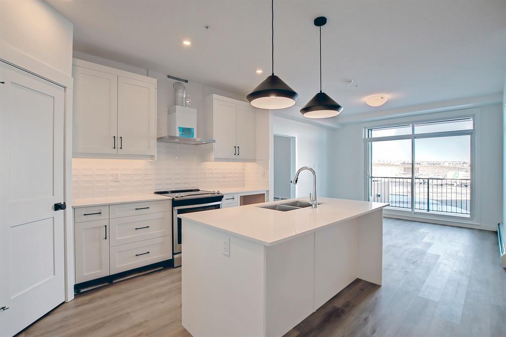 Logel Homes, Calgary's leading multi-family builder, proudly presents Sage Walk, its latest award-winning development. This second-floor corner condo offers a convenient and low-maintenance lifestyle with 2 bedrooms, 2 en-suite bathrooms, and an oversized balcony facing west. The suite overlooks an environmental reserve and is conveniently located within walking distance of shopping and restaurants.The unit measures 1020 sq. ft. according to builder's new home measurement standards. The kitchen features a large breakfast bar island, quartz countertops, and a full-height tile backsplash. The upgraded stainless steel appliance package includes a built-in microwave and wall oven, as well as with a built-in ice maker.The master ensuite includes a spacious walk-in shower with frameless glass doors, floor-to-ceiling tile surround, and his and her sinks. The home is equipped with air conditioning and Logel Home's award-winning make-up air system, ensuring a constant supply of fresh air throughout the suite.The living room offers ample natural light with extra windows and clear sightlines for easy interactions. The well-designed floor plan separates the bedrooms with their respective ensuites, allowing for privacy. The master bedroom features a walk-in closet, while the second bedroom has its own 4-piece ensuite bathroom.Additional amenities include in-suite laundry and titled underground parking. The complex provides visitor parking, green space, and bike storage.This exceptional home showcases Logel Homes' craftsmanship and is located in a sought-after neighborhood. Truly an exceptional home built by Calgary's #1 Multi Family Builder in a much sought-after NW neighborhood! Call today for more information. (id:22211)