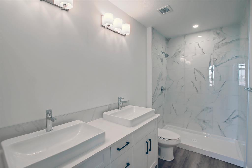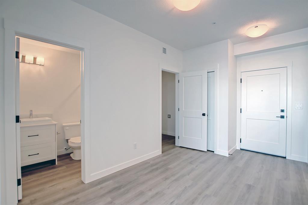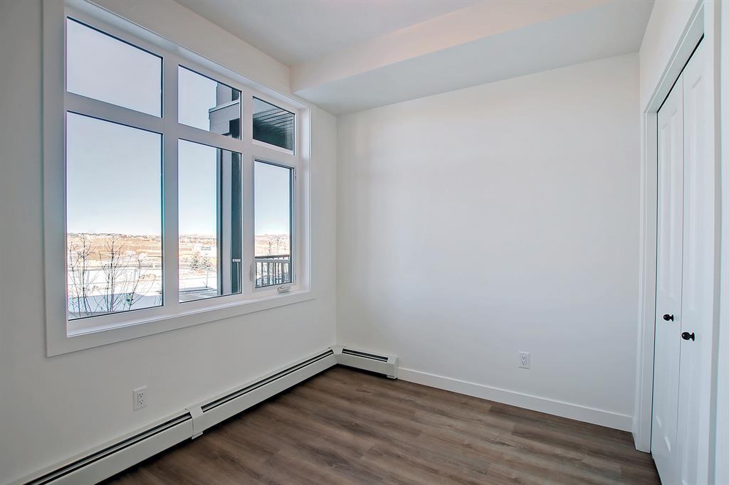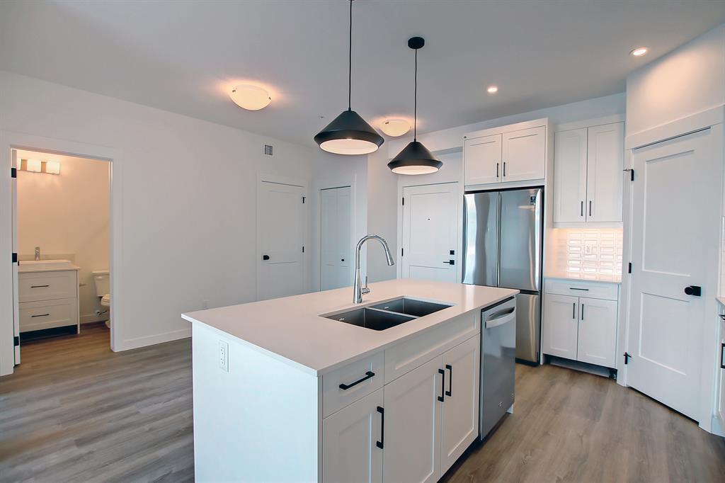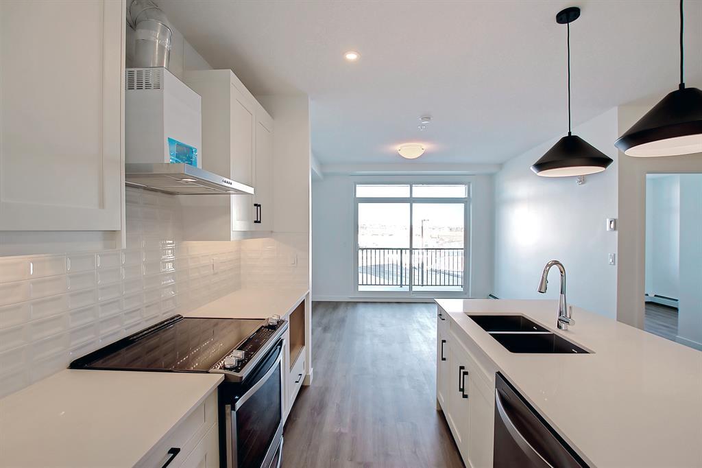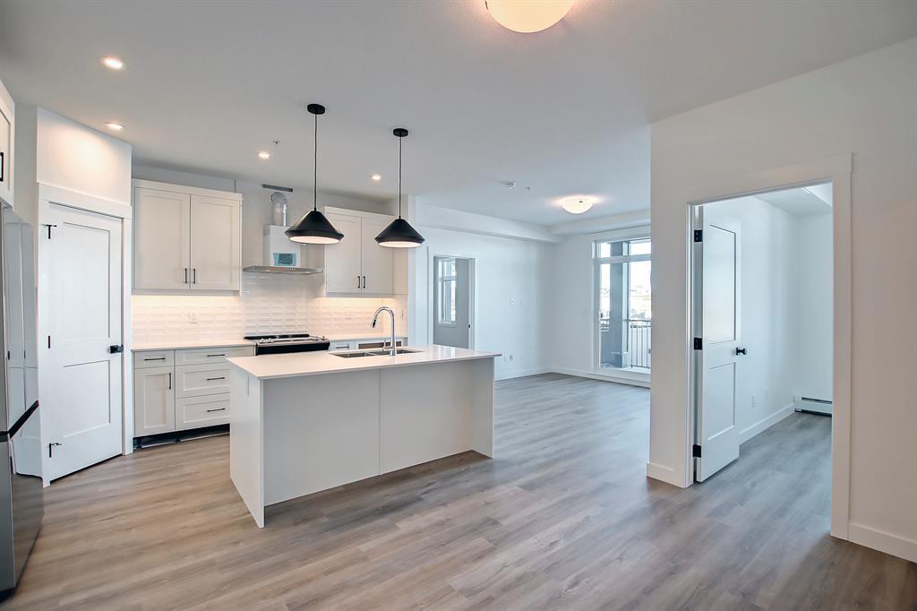 Logel Homes, Calgary's leading multi-family builder, proudly presents Sage Walk, its latest award-winning development. This second-floor corner condo offers a convenient and low-maintenance lifestyle with 2 bedrooms, 2 en-suite bathrooms, and an oversized balcony facing west. The suite overlooks an environmental reserve and is conveniently located within walking distance of shopping and restaurants.The unit measures 1020 sq. ft. according to builder's new home measurement standards. The kitchen features a large breakfast bar island, quartz countertops, and a full-height tile backsplash. The upgraded stainless steel appliance package includes a built-in microwave and wall oven, as well as with a built-in ice maker.The master ensuite includes a spacious walk-in shower with frameless glass doors, floor-to-ceiling tile surround, and his and her sinks. The home is equipped with air conditioning and Logel Home's award-winning make-up air system, ensuring a constant supply of fresh air throughout the suite.The living room offers ample natural light with extra windows and clear sightlines for easy interactions. The well-designed floor plan separates the bedrooms with their respective ensuites, allowing for privacy. The master bedroom features a walk-in closet, while the second bedroom has its own 4-piece ensuite bathroom.Additional amenities include in-suite laundry and titled underground parking. The complex provides visitor parking, green space, and bike storage.This exceptional home showcases Logel Homes' craftsmanship and is located in a sought-after neighborhood. Truly an exceptional home built by Calgary's #1 Multi Family Builder in a much sought-after NW neighborhood! Call today for more information. (id:22211)