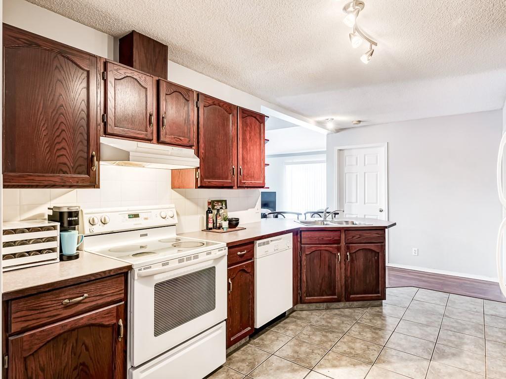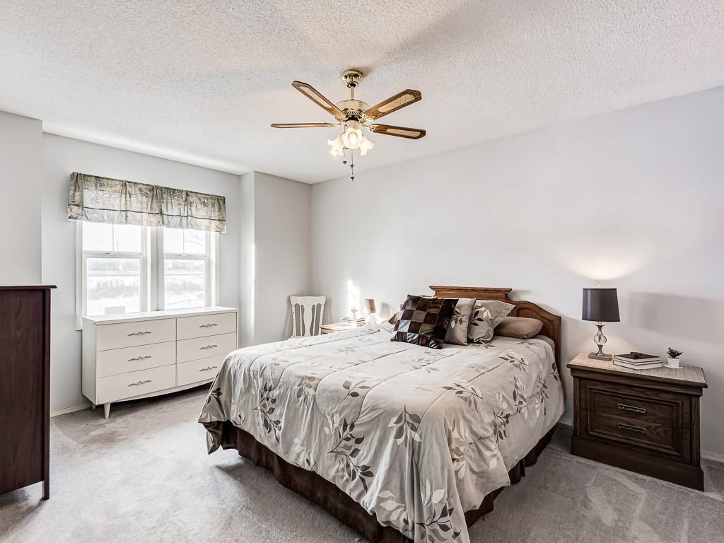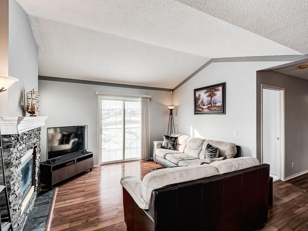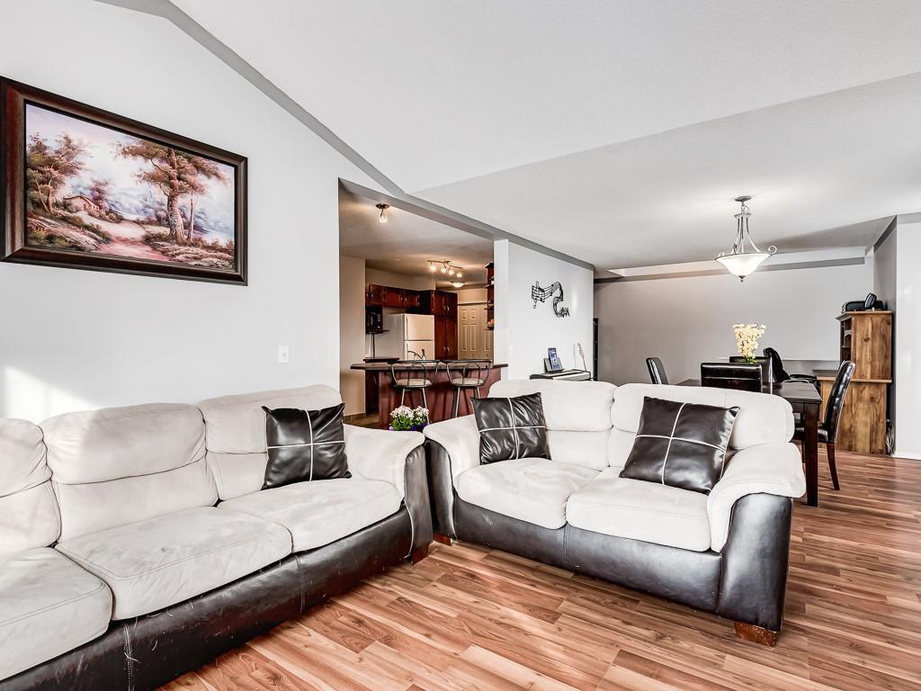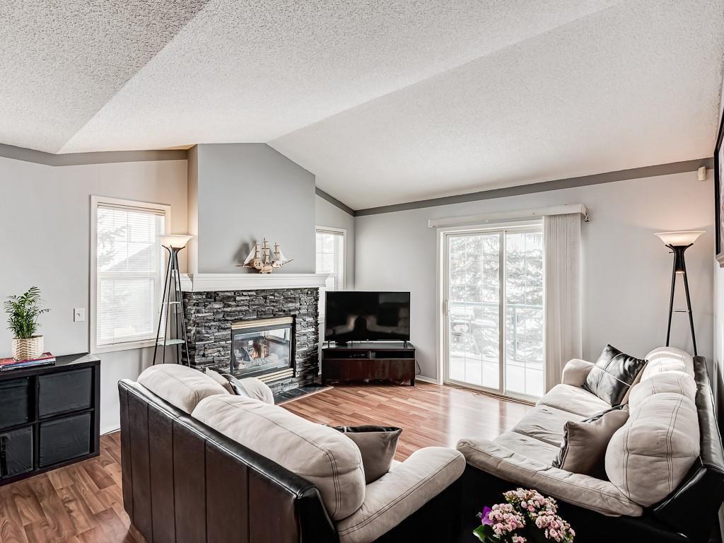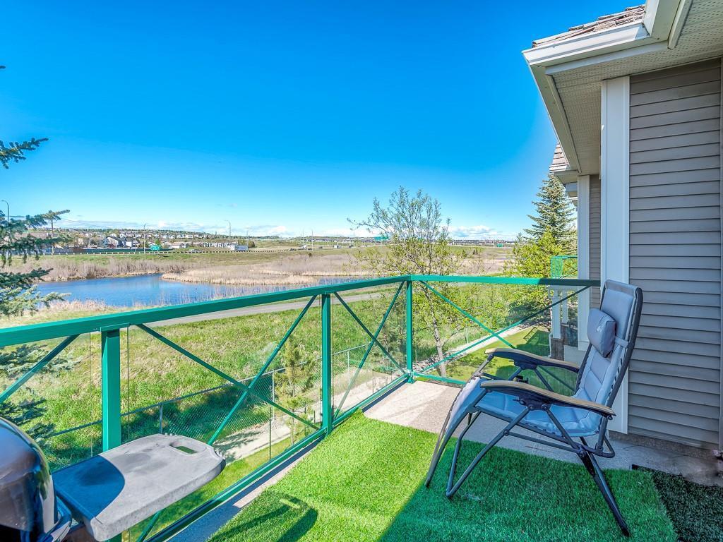 Fantastic location! Super quiet 2 bedroom & 2 full baths end unit in the desirable community of Hidden Valley. Bright open floor plan boasts a spacious dining room & sunny living room with vaulted ceilings & a cozy gas fireplace. Kitchen is open with lots of cabinet space & a raised eating bar. Private balcony is perfect for gas line BBQs or simply enjoying the gorgeous views. Large master bedroom with walk in closet and 4 piece ensuite. This spacious home has been lovingly maintained. Both bedrooms have newer carpet and underlay. Newer hot water tank. Attached oversized garage with extra space for storage or work bench. Excellent find close to Stoney Trail,shopping & backing onto environmental reserve, pathways & pond. (id:22211)