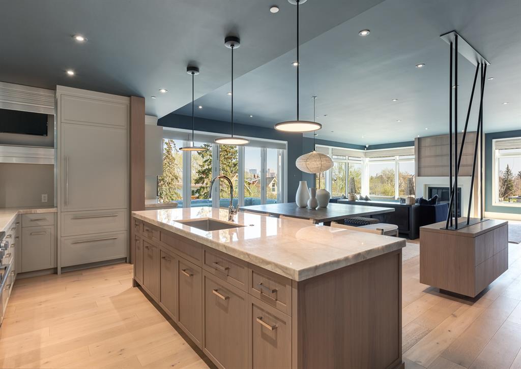 UNDER CONTRACT. One of Rockwood Custom Homes masterfully designed and curated LUXURY CONDOS in the exclusive Residences of King Edward. This boutique development encompasses only 18 opulent residences showcasing cutting edge design features, towering ceilings, multiple outdoor living room spaces and meticulous construction. Located on the second floor, this beautiful condo enjoys tree level vistas, unobstructed city views and is within walking distance to Marda Loop's vibrant amenities. Offering over 3400 SF of opulent living on one level, this impeccable home features three bedrooms, three full bathrooms, FOUR titled parking spaces, a large storage space, an Elan Smart Home automation system, a designer kitchen unlike any other, exceptional appliances, Nano wall sliding doors to the outdoor spaces, a richly appointed den, a butler's styled pantry, a gorgeous central fireplace, a six diamond primary suite with two gigantic walk-in closets, Art TV's and a spectacular spa-like ensuite. There is no other condo like this one in all of Calgary setting a new standard for true indulgent living! If you are looking to downsize into a condo from a large luxury home, you don't need to downsize at all. This one-level extraordinary residence allows one to "lock and leave" without sacrificing incredible living space. (id:22211)
