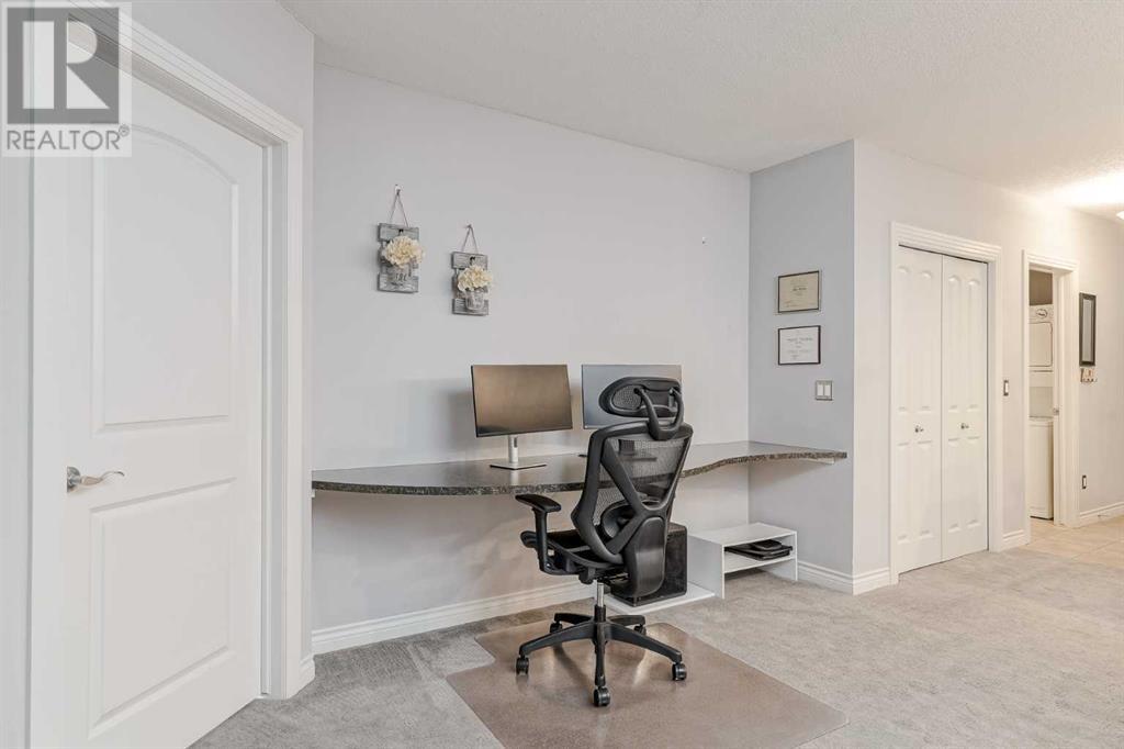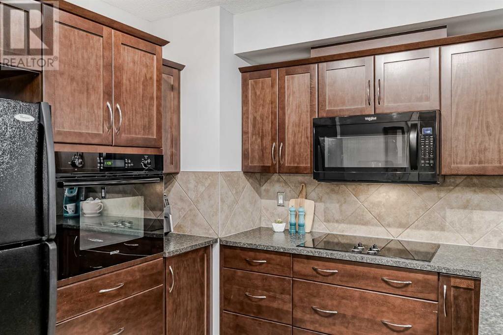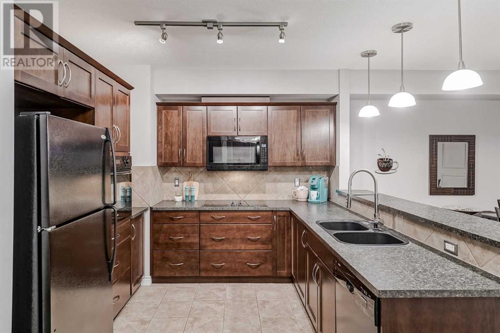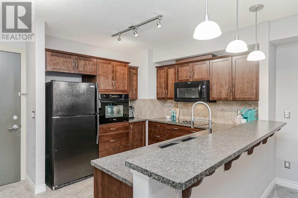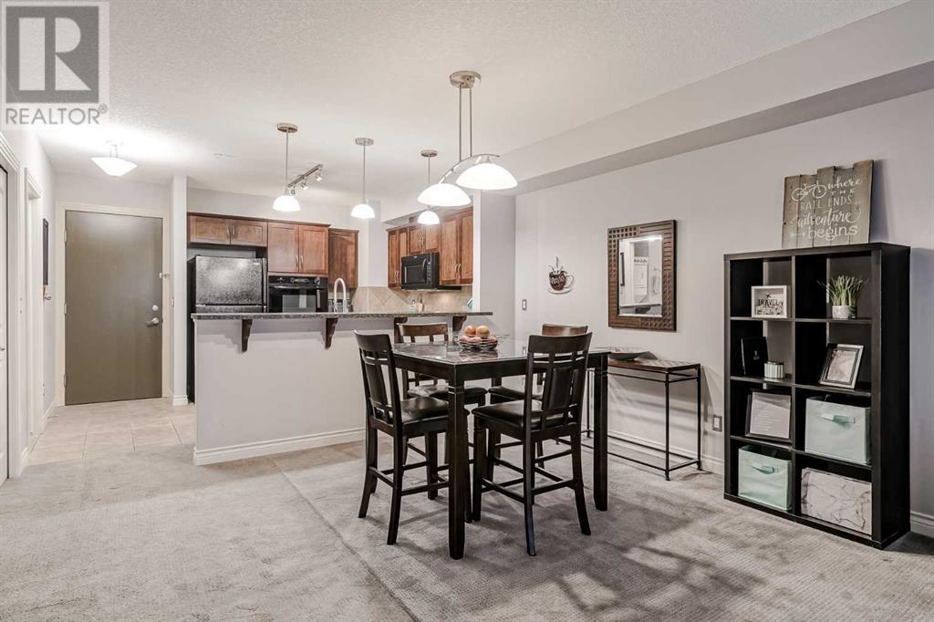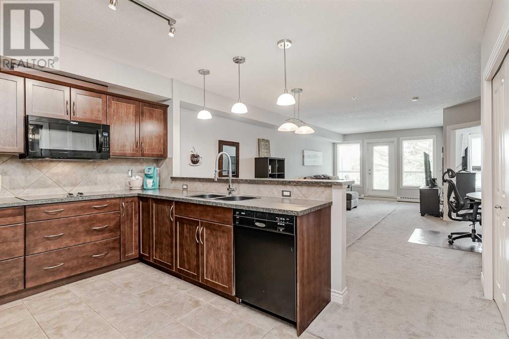 Rare opportunity to acquire a stunning 1 bedroom, 1 bath condominium ideally situated across from the esteemed University of Calgary. With OVER 800 SQ.FT of living space, this exquisite unit is located in a highly sought-after building within a well-established area, making it an ideal investment for university students or working professionals. This impeccably maintained condo boasts quality finishes and features an open-concept kitchen with beautiful maple cabinetry. The kitchen is equipped with a black appliance package including a BOSCH dishwasher, built-in oven, and electric cooktop. Additionally, a breakfast eating bar with pendant lighting compliments the spacious great room, complete with a BUILT-IN DESK/WORKSTATION. The bedroom offers ample space with a generous WALK-THROUGH CLOSET and a 4-piece ensuite bathroom featuring a convenient cheater door and added storage/linen closet. You'll love the large covered balcony with a glass railing that is very private and serene with greenery all around. For added security and comfort, the property includes a secure, titled, underground parking and storage unit, along with covered guest parking by the front door. Situated on a peaceful cul-de-sac with minimal traffic, the location is exceptionally quiet and desirable. Schedule your private viewing today and seize the chance to own this remarkable property. (id:22211)