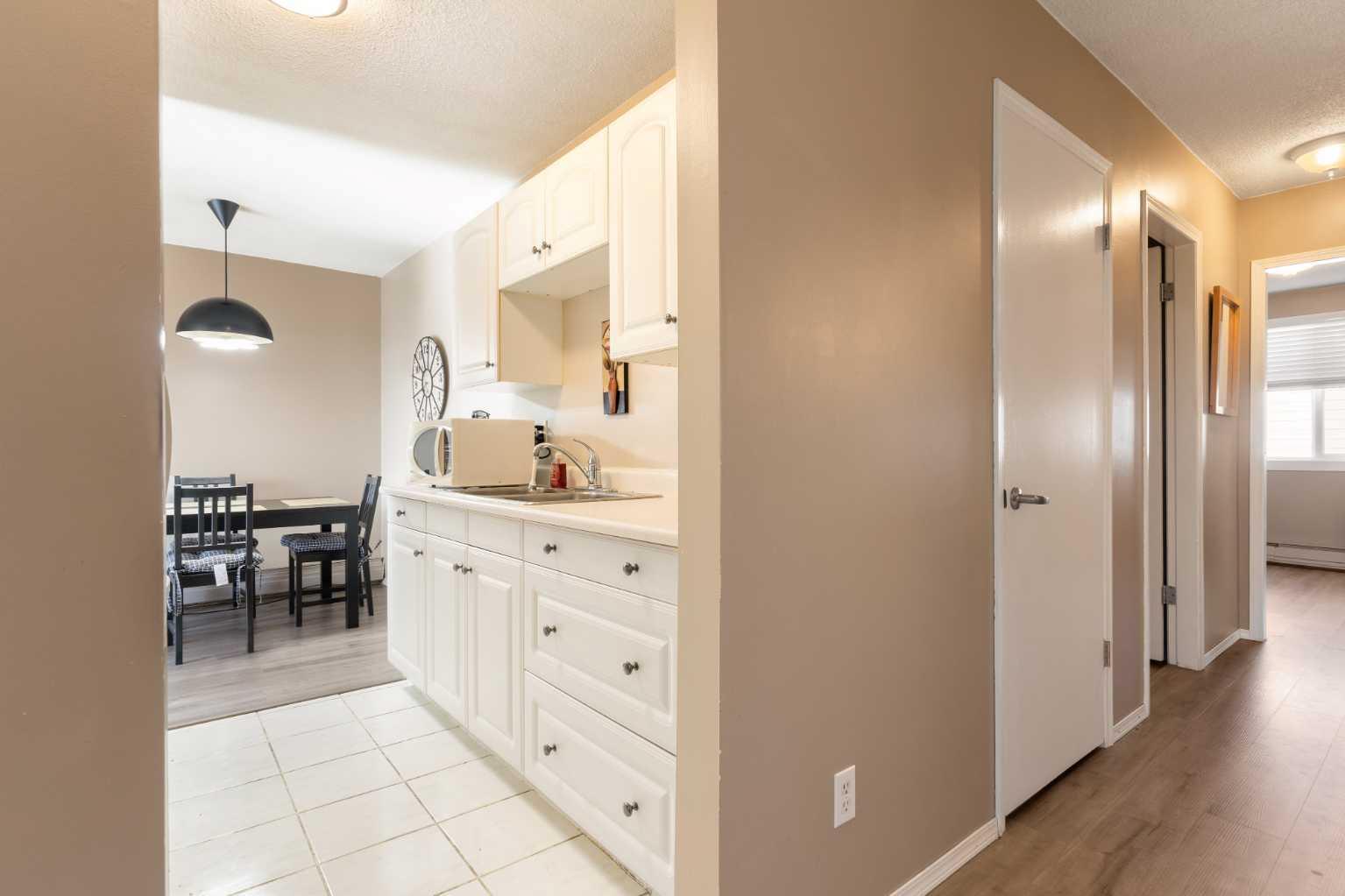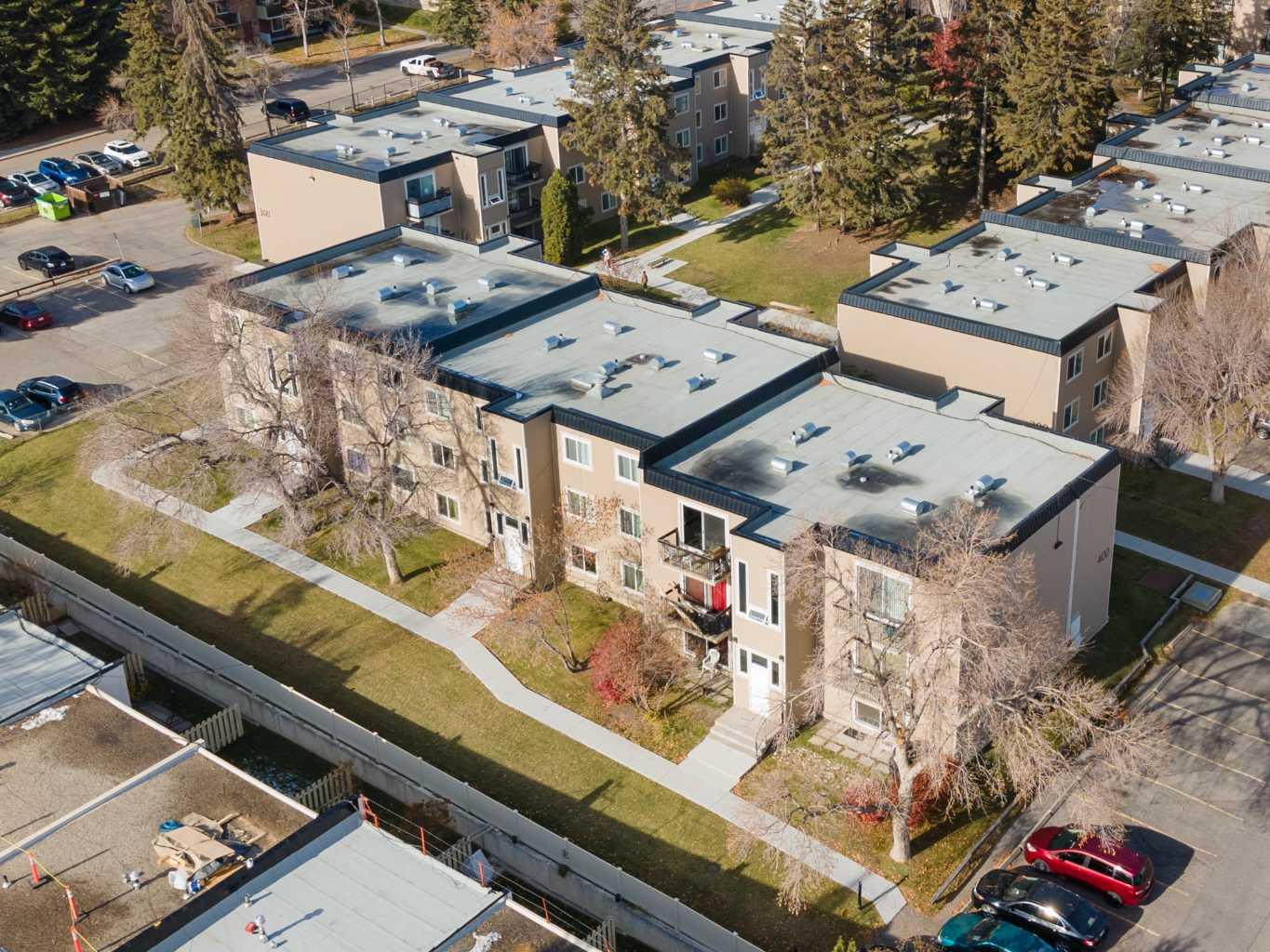 Unbeatable NEW PRICE on this Low-Rise Updated 2-Bedroom 2-Bathroom, 854 square foot Bungalow Apartment, in Village Green, Acadia - simply the BEST for affordable and access-friendly living - NO neighbours above, and tons of great updates in the building exteriors (see Reserve Fund Report)! View the 3D iGuide Tour in the media link, with detailed Floor Plans, and professional photos - this home is a stunner! The unique complex is small and select, each of the 4 Buildings back and face pathways and green spaces, BUT Building D (400) has the furthest most private location by Visitor Parking, the lowest number of apartments/residents (6 per floor), AND it overlooks the exterior green belt with a Southern Balcony exposure. The unique Building and Unit layouts have TWO entry/exit doors (perfect for lives with different time schedules) and all the homes span from front to back across the structures, so there are North windows in the 2 Bedrooms, AND South patio doors to the Balcony - one "shared wall" is actually just the bathrooms(s). Further, the Bedrooms are totally separated from the Kitchen, full sized Dining and full-width Living Room, by Walk-in Closets for the Primary, Ensuite for the Primary, and a huge Storage Room that COULD be used as a small Den or Study/Homework space. NEW Luxury Vinyl Flooring has been installed in the majority of the property, with Tile in the 4-Piece Main Bathroom, Foyer Entry, and 2 piece Ensuite Bathroom. The room spaces are so huge between the Primary Bedroom and the Living Room, that the plan allows for an open-concept Media, Reading-Library AND Office Desk area in either location. The Dining can give added room for a 6+ foot sidebar (upper and lower cabinets, extra counter and/or pantry - dealer's choice!). The second Bedroom is big enough for a Queen sleeping set or other hobby/TV/personal use. There are so many possible functions for every part of this flexible plan it is obviously suited to any lifestyle need. The location cannot be beaten, close to all accesses, amenities, right beside a bus route and minutes to the C-Train line - directly beside Heritage Drive, between MacLeod and Blackfoot Trails to get easily to all the other main routes to anywhere in Calgary - fast! This beautiful home is waiting for its new Owner(s) so don't hesitate to request a showing from your agent!