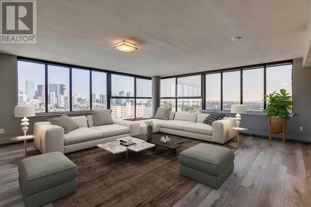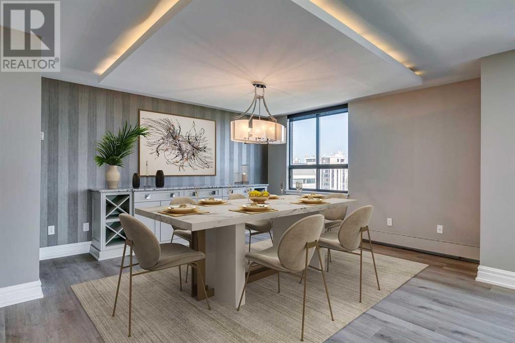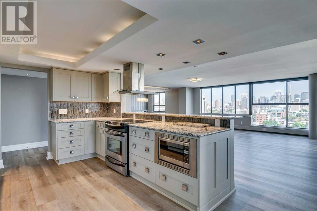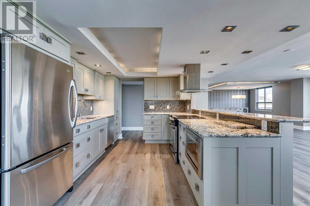 This luxury condo has a spectacular city view on the 12th floor of The RIVERSTONE .There is a SW mountain view from the second bedroom. The condo was renovated with luxury plank floors throughout this open floor plan with 2 bedrooms and 2 baths, plus an office space. Designed for entertaining with a large dining room and custom built -in hutch. In the kitchen there are ample cabinets with room to sit 4 chairs at your counter and a built-in desk for more work space. . Enjoy the NE views from your kitchen, dining and living room. The view from the primary bedroom also has a city view. The main living area is very bright with rap around windows. The primary bedroom and walk in closet both have built- in drawers which keeps you organized.The ensuite bath was updated with a walk-in shower and double sinks. The unit has a storage room and additional storage in the building.The concrete building was designed for a safe and an active life style with amenities that include 24 hour security, tennis courts, heated pool ,hot tubs, sauna, party room, outdoor patio lounge chairs for entertaining ,built in barbecue and a games room. Across from Elbow River bike and walking paths. Next door to popular 4th Street restaurants, , boutiques and grocery stores. Less than 5 min drive to the Saddle-dome and City Centre. (id:22211)