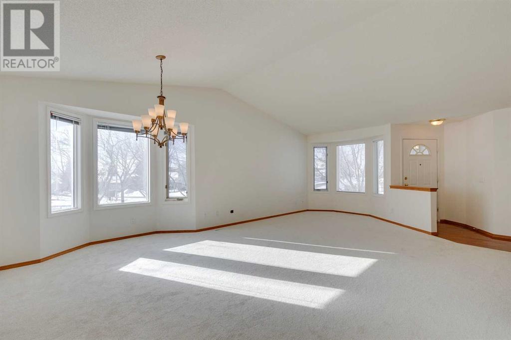 It doesn't get any better than this! Capitalizing on the best of both worlds, this villa style home provides you with the privacy of single family living while eliminating the need to shovel snow and cut grass! With over 2200 sq.ft of developed living space, this spacious bungalow sits on a great lot siding the greenspace/courtyard. As you walk into the home, you are greeted by the vaulted ceiling & plenty of windows plus brand-new carpet installed throughout most of the main floor. The living and dining area are well sized and a great place to entertain w/an abundance of natural light. Functional kitchen is off the back of the home w/eat-in dining space and a patio door leading out to a large deck. Master bedroom is very spacious and will easily accommodate all your furniture plus a walk-in closet and a 3-pc ensuite with walk-in shower makes life easy. 2nd bedroom on the main floor w/nice window is great for your guests or use as a den plus the 4-pc bathroom is just across the hall. Laundry is on the main floor so no need to worry about stairs. Fully finished basement w/huge rec room and a cozy gas fireplace is the perfect spot to relax. 3rd bedroom, 3rd full bathroom and huge storage space finishes off the space. There is a wonderful sense of community here w/great neighbours. Location can't be beat! Minutes away to shopping, restaurants, YMCA and the Crowfoot library keep all your amenities close by. THIS IS NOT A CONDO! $144/mth HOA fee covers snow removal and lawn care. No age restrictions (id:22211)