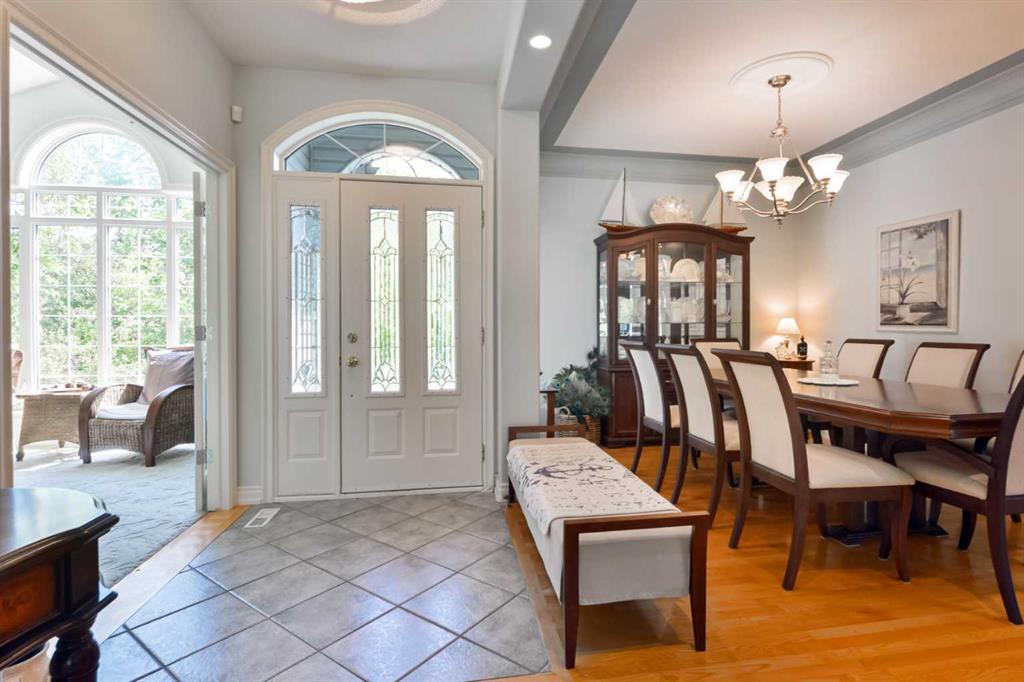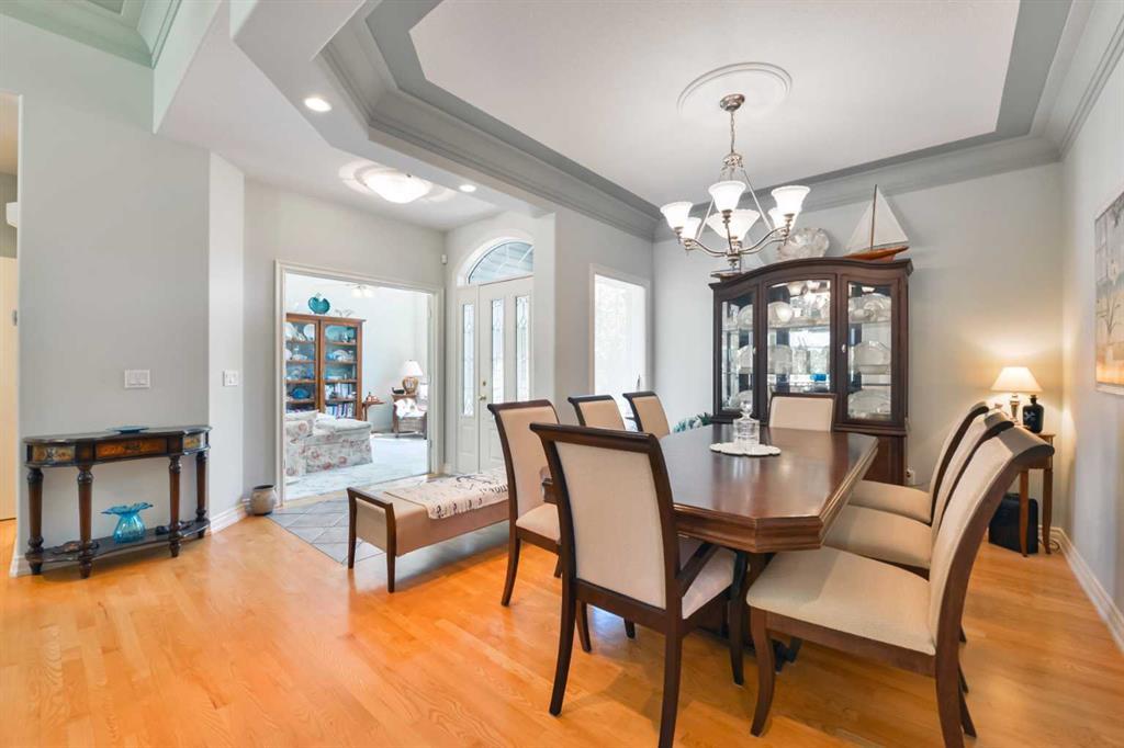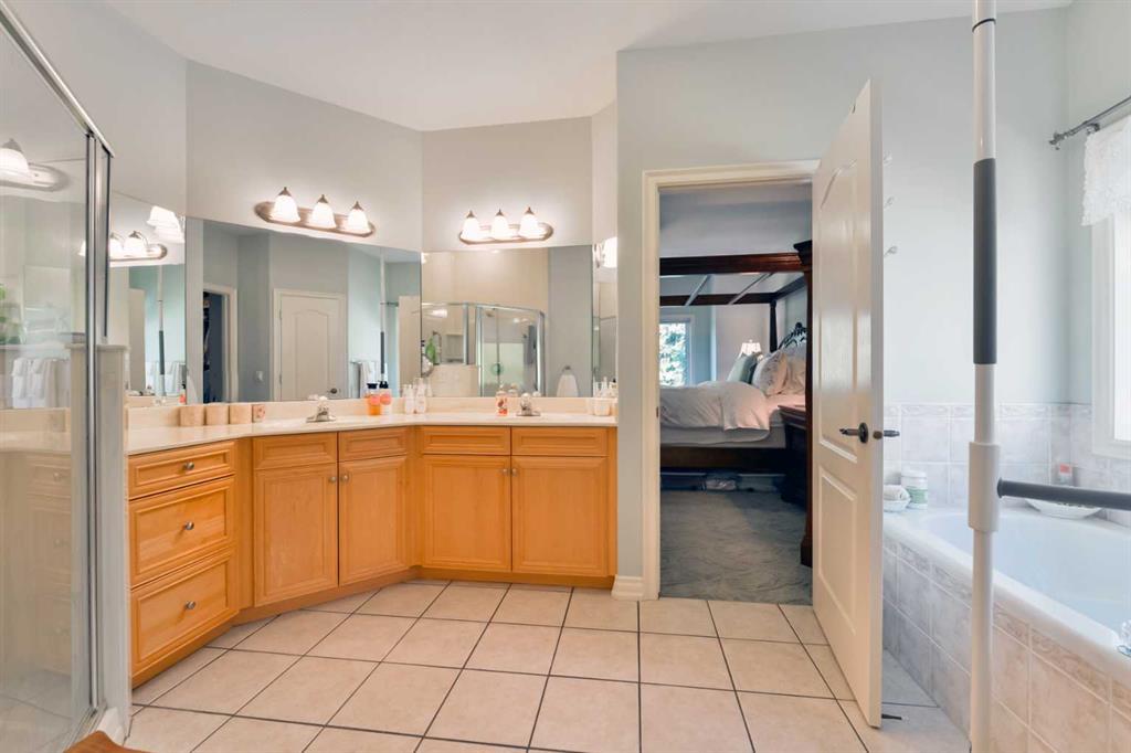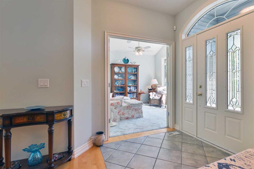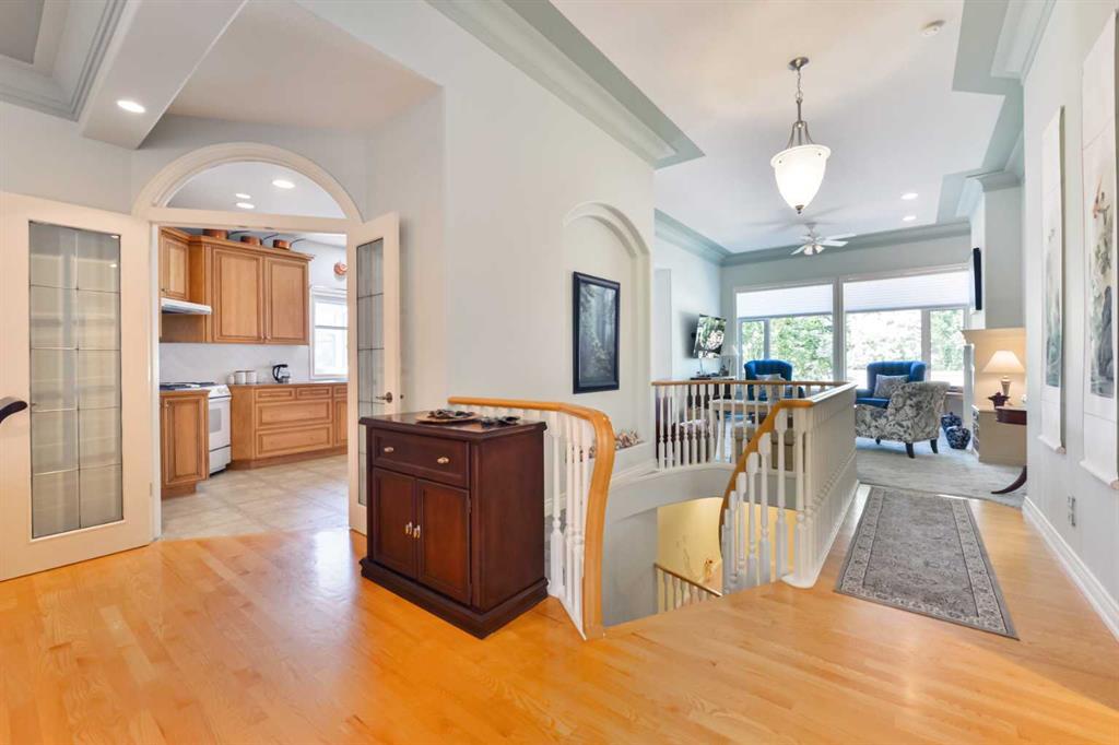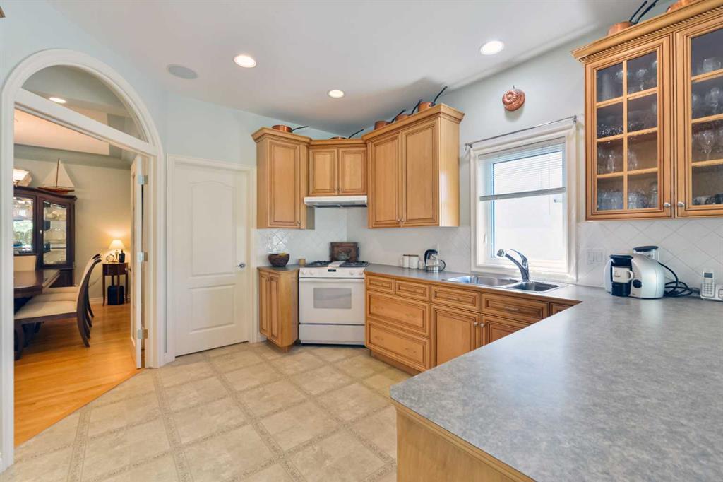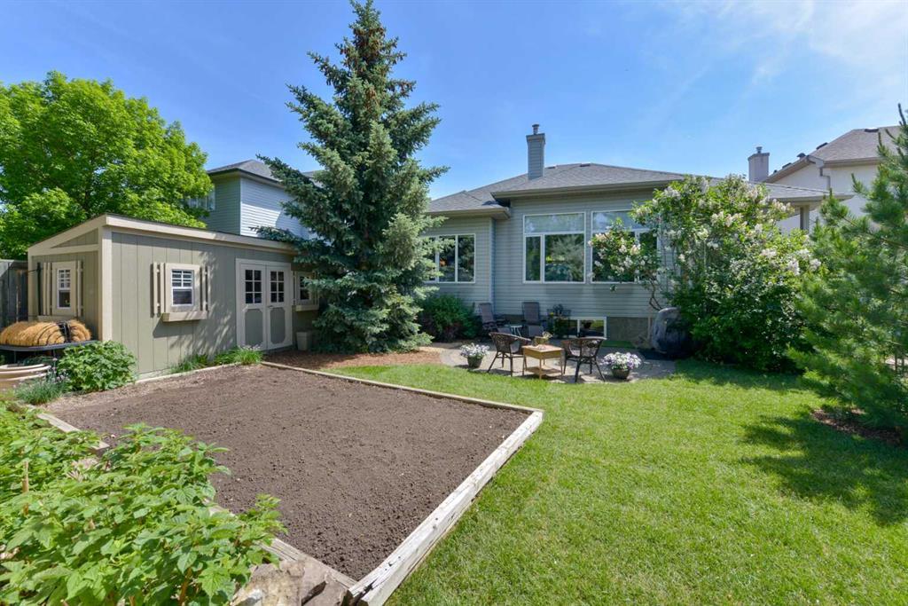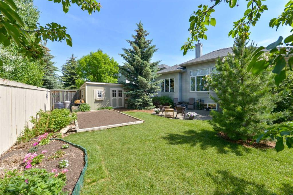 This exceptional over 1,600sq ft custom-built bungalow in the highly desirable Simcoe Estates area of Signal Hill welcomes you to a light and bright, open concept home for entertaining as well as providing fabulous outdoor living. The spacious tiled front entry transitions to beautiful hardwood flooring in the front hall and adjacent formal dining room with an elegant, coved ceiling. Off the foyer, French doors lead to a spacious den/office featuring a vaulted ceiling and extra-large south facing window, perfect for morning coffee. The large living room with gas fireplace and 11-foot ceiling is flooded with natural light throughout the day and overlooks the beautifully landscaped backyard. The huge kitchen with custom maple cabinetry, updated backsplash, and large breakfast nook leads to the outdoor covered deck, perfect for barbecuing. A large primary bedroom overlooks the backyard and features a spa inspired ensuite with heated tile flooring, double sinks, soaker tub and separate shower leading to a huge walk-in-closet. A discreet powder room and full laundry room off the attached double car garage completes the main floor. A custom curved stairway takes you to the partially developed lower level which offers in-floor heating, 9 foot ceilings, a huge recreation room with an additional gas fireplace, a sizeable bedroom with built in closets, full bathroom, and a massive storage room. The storage room is complete with a 3-person infra-red sauna and offers loads of storage and additional shelving. The private stunning backyard features a fabulous stone patio and a massive two-sided garden/storage shed with sky lights. Located just minutes from local shops, restaurants, schools, Westside Recreation Centre as well as numerous highly regarded public and private schools, this home is exceptional value. (id:22211)