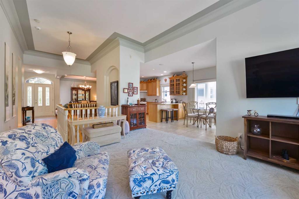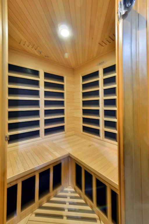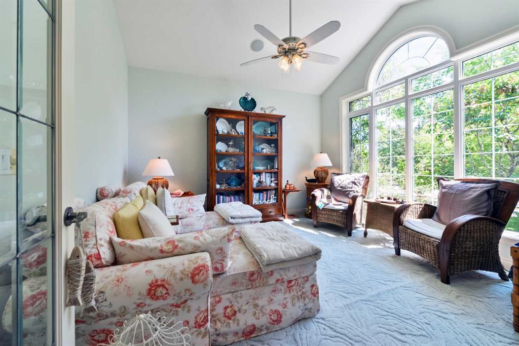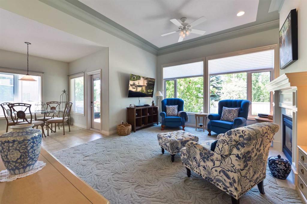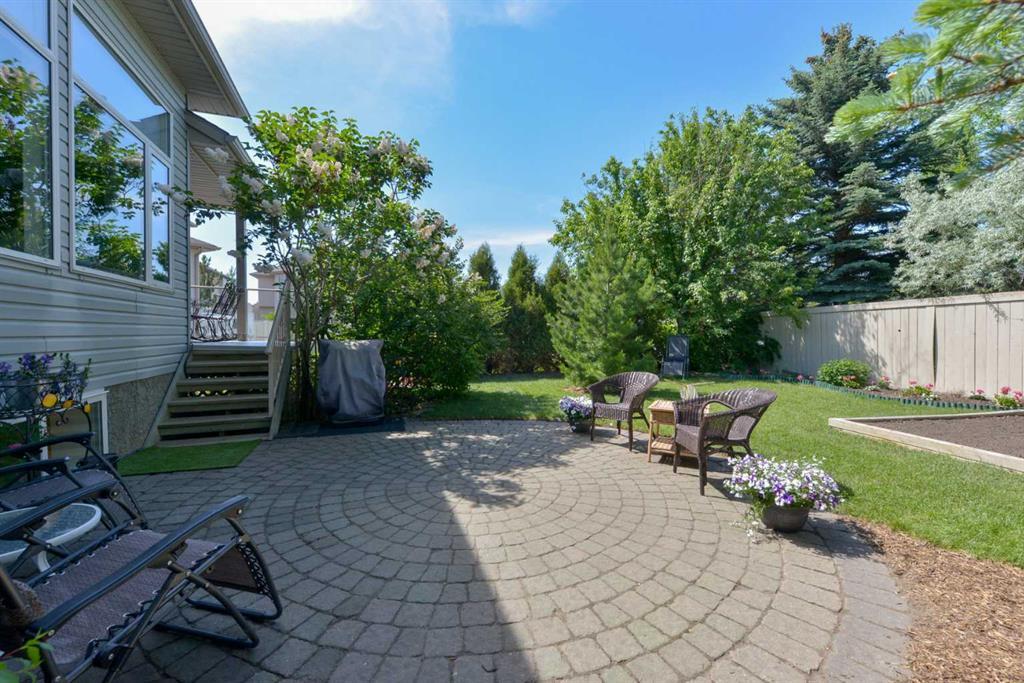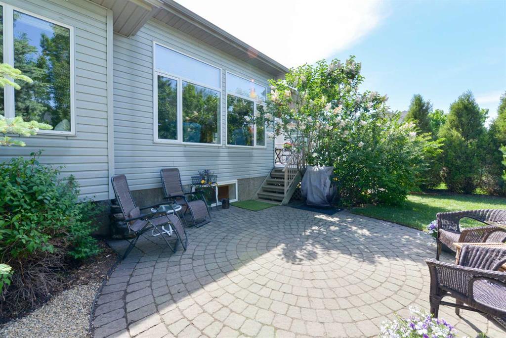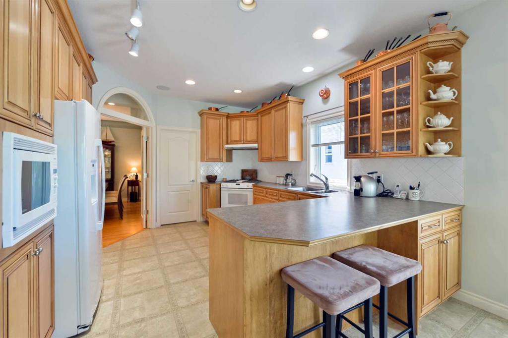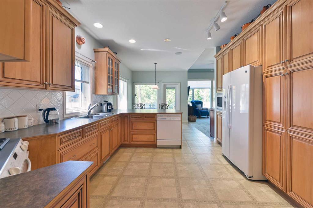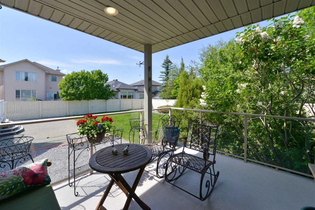 This exceptional over 1,600sq ft custom-built bungalow in the highly desirable Simcoe Estates area of Signal Hill welcomes you to a light and bright, open concept home for entertaining as well as providing fabulous outdoor living. The spacious tiled front entry transitions to beautiful hardwood flooring in the front hall and adjacent formal dining room with an elegant, coved ceiling. Off the foyer, French doors lead to a spacious den/office featuring a vaulted ceiling and extra-large south facing window, perfect for morning coffee. The large living room with gas fireplace and 11-foot ceiling is flooded with natural light throughout the day and overlooks the beautifully landscaped backyard. The huge kitchen with custom maple cabinetry, updated backsplash, and large breakfast nook leads to the outdoor covered deck, perfect for barbecuing. A large primary bedroom overlooks the backyard and features a spa inspired ensuite with heated tile flooring, double sinks, soaker tub and separate shower leading to a huge walk-in-closet. A discreet powder room and full laundry room off the attached double car garage completes the main floor. A custom curved stairway takes you to the partially developed lower level which offers in-floor heating, 9 foot ceilings, a huge recreation room with an additional gas fireplace, a sizeable bedroom with built in closets, full bathroom, and a massive storage room. The storage room is complete with a 3-person infra-red sauna and offers loads of storage and additional shelving. The private stunning backyard features a fabulous stone patio and a massive two-sided garden/storage shed with sky lights. Located just minutes from local shops, restaurants, schools, Westside Recreation Centre as well as numerous highly regarded public and private schools, this home is exceptional value. (id:22211)
