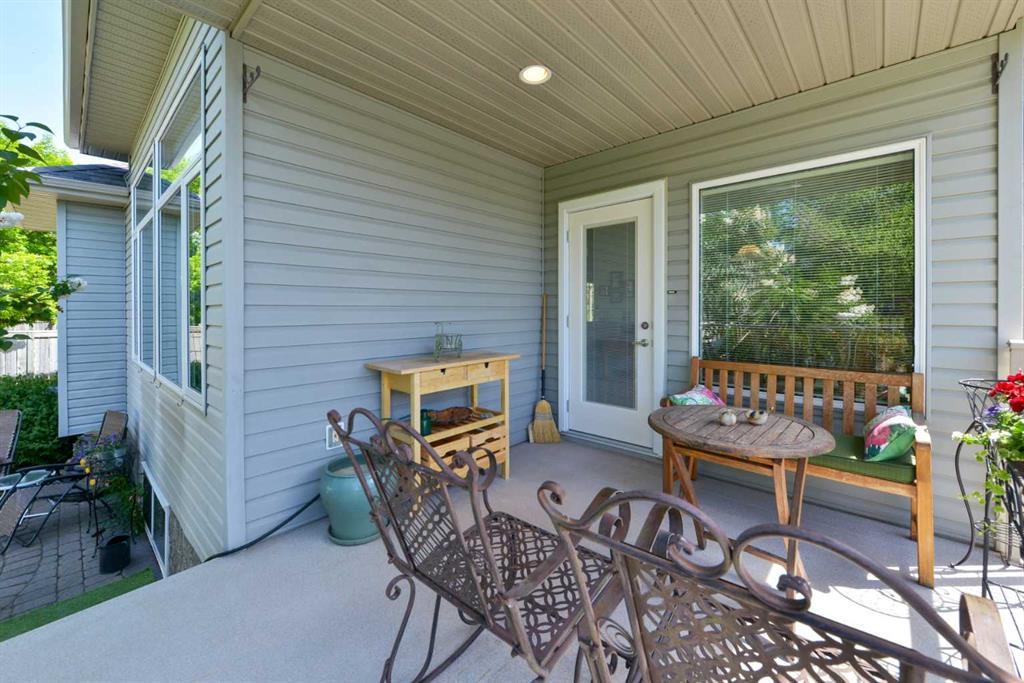 This exceptional over 1,600sq ft custom-built bungalow in the highly desirable Simcoe Estates area of Signal Hill welcomes you to a light and bright, open concept home for entertaining as well as providing fabulous outdoor living. The spacious tiled front entry transitions to beautiful hardwood flooring in the front hall and adjacent formal dining room with an elegant, coved ceiling. Off the foyer, French doors lead to a spacious den/office featuring a vaulted ceiling and extra-large south facing window, perfect for morning coffee. The large living room with gas fireplace and 11-foot ceiling is flooded with natural light throughout the day and overlooks the beautifully landscaped backyard. The huge kitchen with custom maple cabinetry, updated backsplash, and large breakfast nook leads to the outdoor covered deck, perfect for barbecuing. A large primary bedroom overlooks the backyard and features a spa inspired ensuite with heated tile flooring, double sinks, soaker tub and separate shower leading to a huge walk-in-closet. A discreet powder room and full laundry room off the attached double car garage completes the main floor. A custom curved stairway takes you to the partially developed lower level which offers in-floor heating, 9 foot ceilings, a huge recreation room with an additional gas fireplace, a sizeable bedroom with built in closets, full bathroom, and a massive storage room. The storage room is complete with a 3-person infra-red sauna and offers loads of storage and additional shelving. The private stunning backyard features a fabulous stone patio and a massive two-sided garden/storage shed with sky lights. Located just minutes from local shops, restaurants, schools, Westside Recreation Centre as well as numerous highly regarded public and private schools, this home is exceptional value. (id:22211)