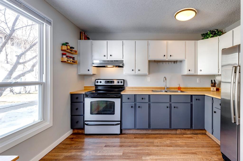 Welcome to Tamarack Village! This bright 3 bed, 1.5 bath townhome is not to be missed. Bring your pets and your kids as this will make a great family home or investment. You will love the NEWER VINYL PLANK through the main floor and PLUSH CARPET UPSTAIRS. The living room offers a COZY WOOD BURNING FIREPLACE with WETT inspection a couple years ago. Painted cabinets and STAINLESS STEEL APPLIANCES in the bright kitchen and a 2-pc powder room wrap up the main floor. Upstairs you will find 3 good sized bedrooms and a 4-pc bathroom. The unfinished BASEMENT serves as great storage or great potential to increase your living space. And don’t forget about the PRIVATE FENCED YARD with a GARDEN already planted! Tamarack is PET FRIENDLY and the fees include water/sewer. Don't miss this one! (id:22211)