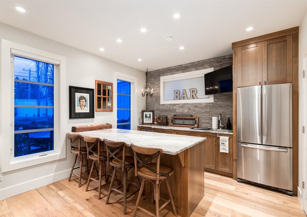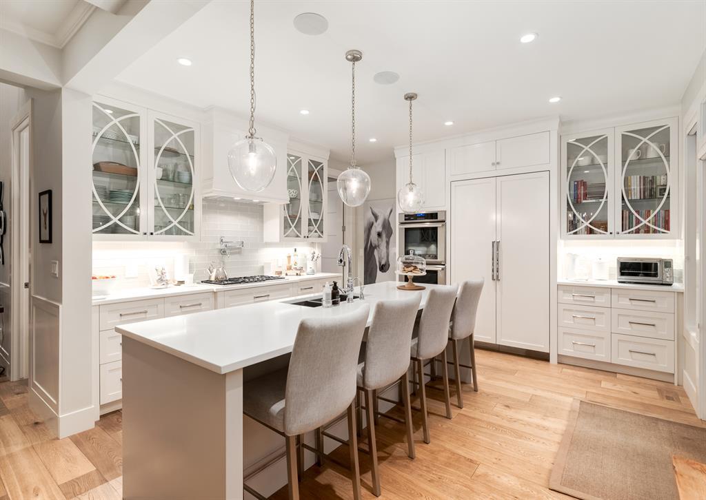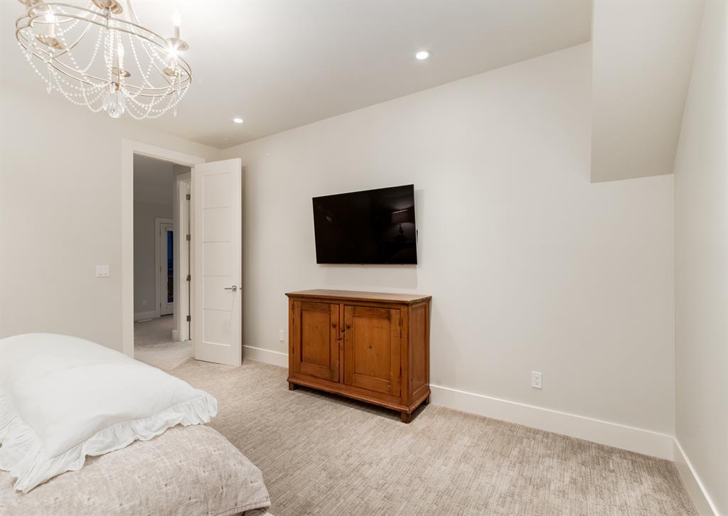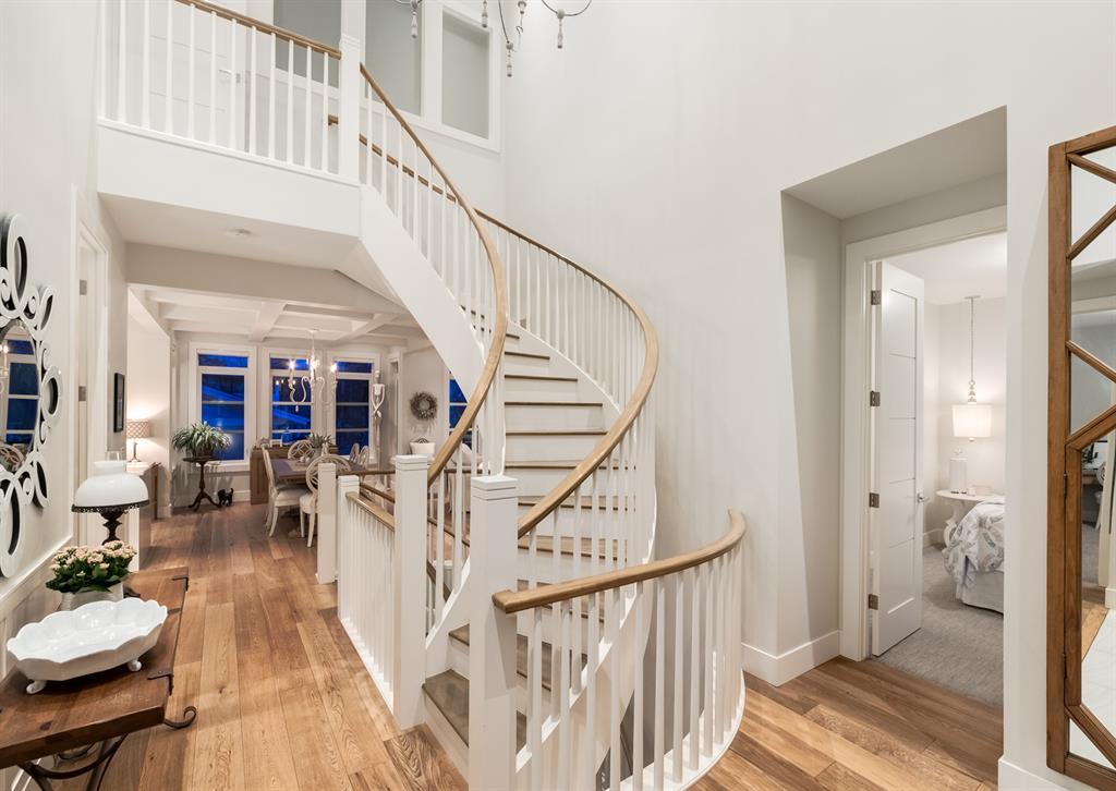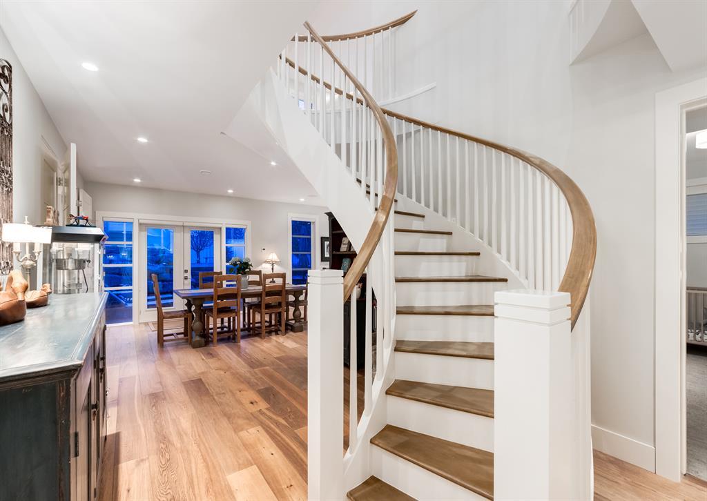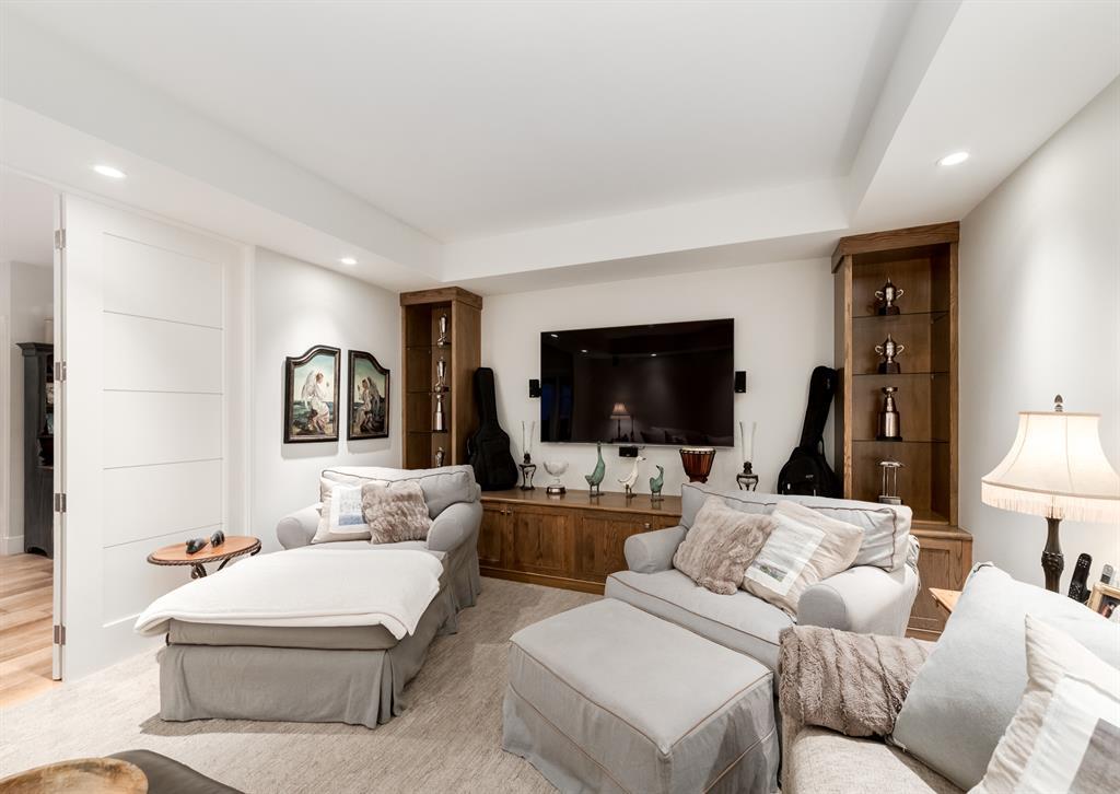OPEN HOUSE: Sun. June 25th, 2-4 pm. Additional price reduction - $50K! Unparalleled quality throughout this timeless, custom home. This exceptional 5 bed/3 1/2 bath home boasts nearly 4000 sq ft of LUXURY at every turn. Enter the stately double-doors and you are met with a grand sweeping spiral staircase. Just off the foyer, there are 2 bedrooms located on either side. One is currently used as an office and the other has a four-piece ensuite and walk-in closet. A CHEF'S KITCHEN features creamy, custom cabinetry with glass-inserts, a suite of Thermadore appliances including double wall ovens, oversized double-door refridgerator, 5-burner gas cooktop, and dishwasher. There is also a microwave, garburator, instant hot water, filtered water system, and pot filler over the cooktop. Quartz counters, glass pendant lights over the island, and a large walk-in pantry with ample cabinets, shelving and large stand-up freezer complete this fabulous kitchen. The open and spacious Dining Area awaits both large and small, formal, informal and holiday gatherings! The large Great Room with gas fireplace has loads of windows keeping the space light, bright and inviting. There is also a beautiful 1/2 bath tucked away on this main floor for family and guests. Winding up the staircase to the second floor is the OWNERS’ RETREAT. The entire floor has been dedicated to the primary bedroom, a spacious sitting area with gas fireplace, a private balcony, and a GRAND ensuite! This MASSIVE, SPA-INSPIRED area features an elegant, stand-alone tub, dual sinks, an over-sized steam shower, and heated floor tiles and a DREAMY walk-in closet with central folding island and a full-sized stacking front-loading W/D! There is also another walk-in closet to complete this space. In the lower level there is a large bar area complete with a long, sit-up granite-topped counter, full fridge, sink and mounted TV. This level also has a private theatre room with mounted, Samsung Smart TV and Bose speakers to enj oy your favourite movies. In addition, this lower level offers two more bedrooms with walk-in closets, an ample-sized three-piece bathroom with tiled shower, and another front-loading washer and dryer set. There is still enough room on this level to add gym equipment, games table or other items to complete the space. Outside you'll enjoy the walkout area to the lower level patio, meticulous landscaped with sandstone boulders, exposed aggregate patios and a flat grassy area for your kids and pets to enjoy. There is also a multi-level back deck off the kitchen which is also spacious and leads to another sitting area where a built-in fireplace awaits those long summer evenings. One of BIGGEST SURPRISES you will find on this property is the owner-proclaimed “MANCAVE” located under the double, oversized heated garage. This extra 560 square feet, located away from the main house, was designed for FUN & GAMES! A separate feature sheet has been included in the supplements to cover the remaining details. (id:22211)