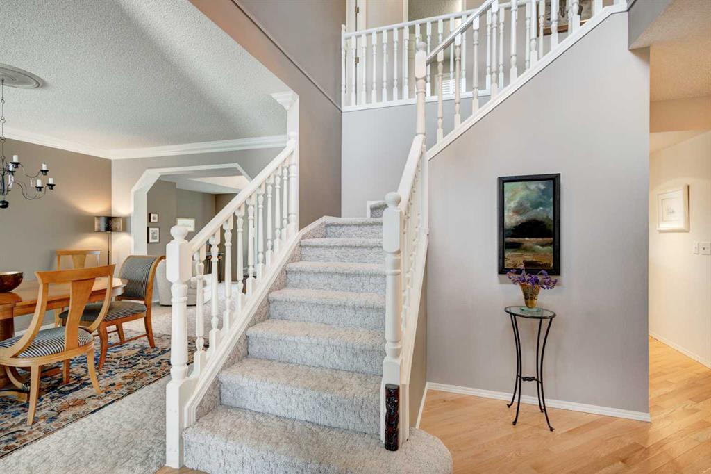 Introducing a rare gem in Diamond Cove! This stunning two-story home is nestled in a highly-sought after location.With nearly 3,200 square feet of developed living space, this home boasts 4 bedrooms and 3.5 baths, including a fully developed basement. The main floor welcomes you with a spacious foyer that opens to a formal family & dining area.The kitchen features lighter cabinets, granite countertops , corner pantry, and offers ample storage and counter space and opens to the eating nook, overlooking the SOUTH facing backyard that basks in abundant sunlight. The large cozy family room adorned with a fireplace, mantel, and built-ins. Mudroom with laundry facilities, and a convenient half bath complete the main floor.Upstairs, you'll find a grand master bedroom featuring a stunning 4-piece ensuite bathroom with heated floors, a New steam shower, and a walk-in closet with custom built-ins , which was converted from a bedroom. The upper floor also hosts 2 additional bedrooms and full bath, providing comfort and space for the whole family.The fully finished basement is a delightful surprise, offering a bar, recreation room, gym area, another bedroom, and a 4-piece bathroom, providing endless possibilities for entertainment and relaxation. Recent upgrades includes a new high efficiency furnace(2022),Windows were replaced in 2011, Roof 2013, Composite Deck 2013, ensuring peace of mind for years to come. The south-facing backyard is a serene retreat, showcasing a pergola, mature landscaping with vibrant flowers and perennials, and even a pond with seasonal fish. The spacious stone patio offers versatility for your outdoor activities and gatherings. Situated in a cul-de-sac on an exceptionally large lot, properties like this are truly rare to find. Meticulously maintained and beautifully kept, this home is a must-see. Diamond Cove is a small destination neighborhood with limited access, making it a perfect haven to raise a family. With quick access to Bow Bottom Trai l, Deerfoot Trail, and Anderson Road, ensuring convenience to malls, schools, and golf courses are minutes away. Don't miss out on this extraordinary opportunity to own a piece of Diamond Cove's charm. Schedule a showing today! (id:22211)