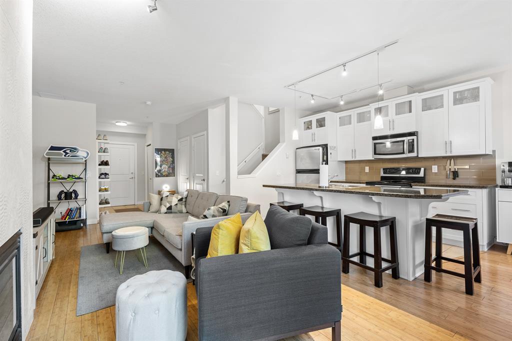 Experience urban living at its finest with this stunning multi-level condo located in the heart of Mission! Boasting two titled underground parking spots, this unit offers over 1200 sq ft of living space across two floors. Conveniently situated on the ground floor, you can access this unit through the front lobby or your private front patio. The open concept layout on the main level features a spacious living room with natural light pouring in from the south-facing windows. The chic kitchen is complete with white cabinetry, granite countertops, stainless steel appliances, a large island, and an adjacent dining area. From the living room, step out onto your own private patio, which can also be accessed from the street, creating the perfect space for outdoor entertaining, summer BBQs, and enjoying the warm weather. Venture upstairs to find two generously sized bedrooms, including the primary bedroom, which is complete with an updated 3-piece ensuite. A rec/flex room and full 4-piece bathroom completes the upper level. Located in the trendy Mission community, you will have easy access to some of Calgary's finest shops and restaurants. Just steps away from Bow River Paths, parks, playgrounds, schools, and public transportation, you will fall in love with all this community has to offer. Don't miss out on the opportunity to make this beautiful property your own! Book your private viewing today and experience the ultimate urban lifestyle in Calgary's most sought-after neighborhood. (id:22211)